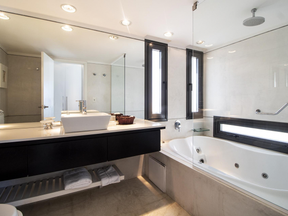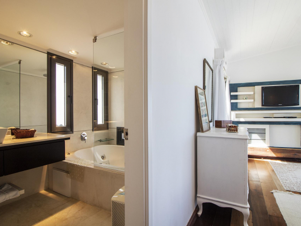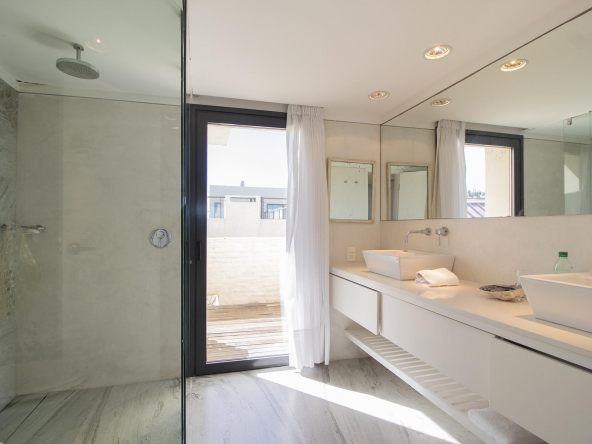 Spacious living room, dining room and modern super equipped kitchen, toilet, 3 bedrooms en suite, all with excellent ocean and lighthouse views.