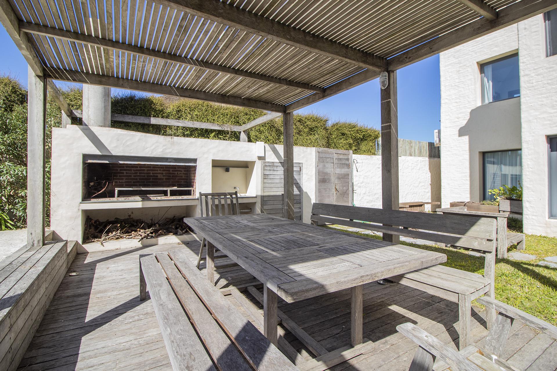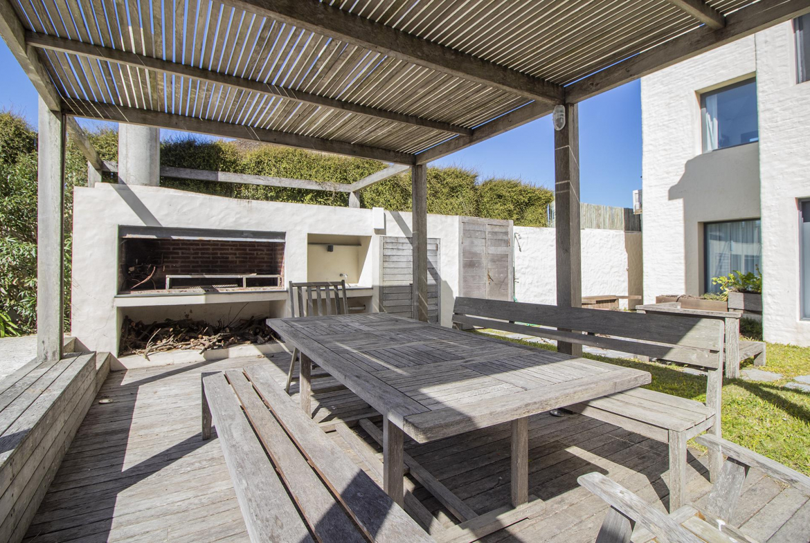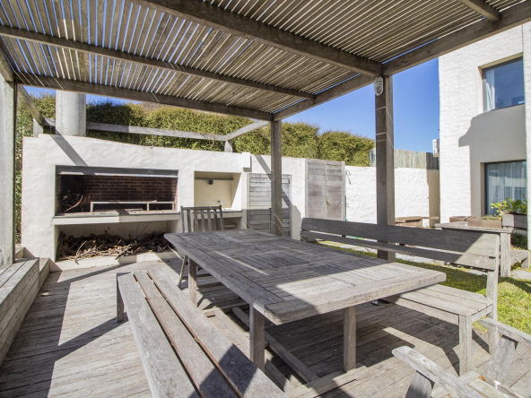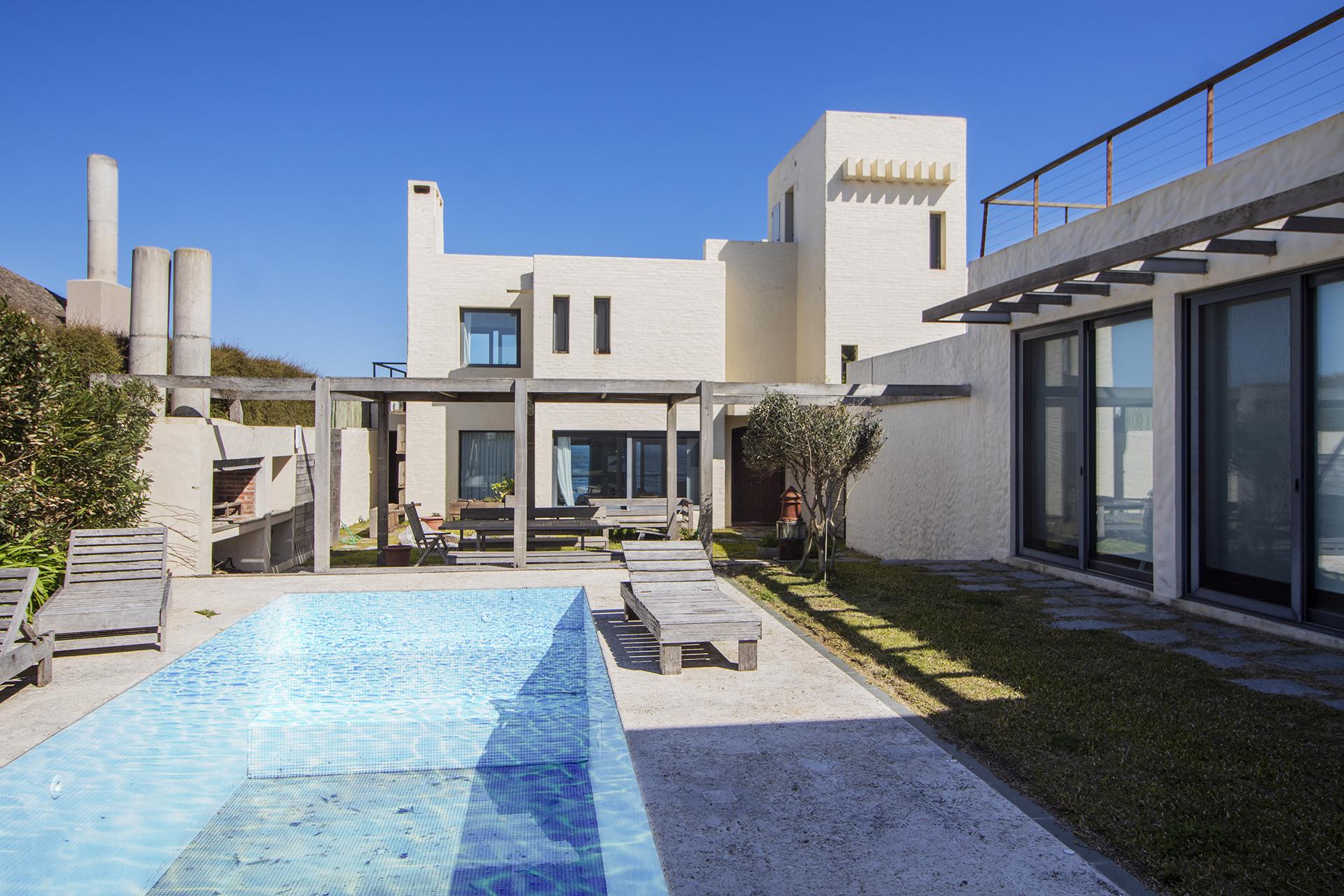Terraza con acceso directo a la playa,piscina, deck y parrilero exterior. Se le agrega parrillero cerrado,anexado a otro comedor y living funcional como playroom mas 2 dormitorios en semi suite para huéspedes