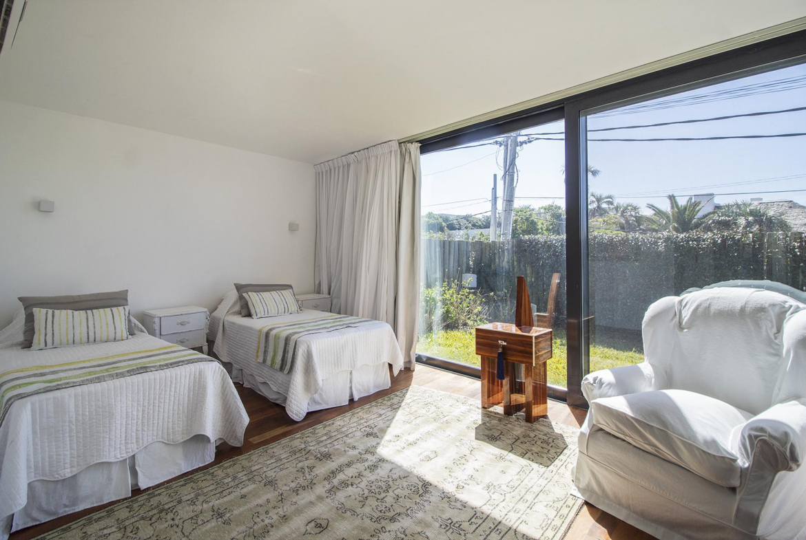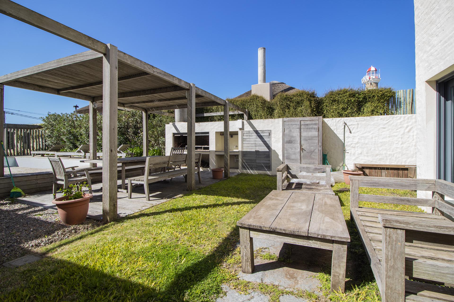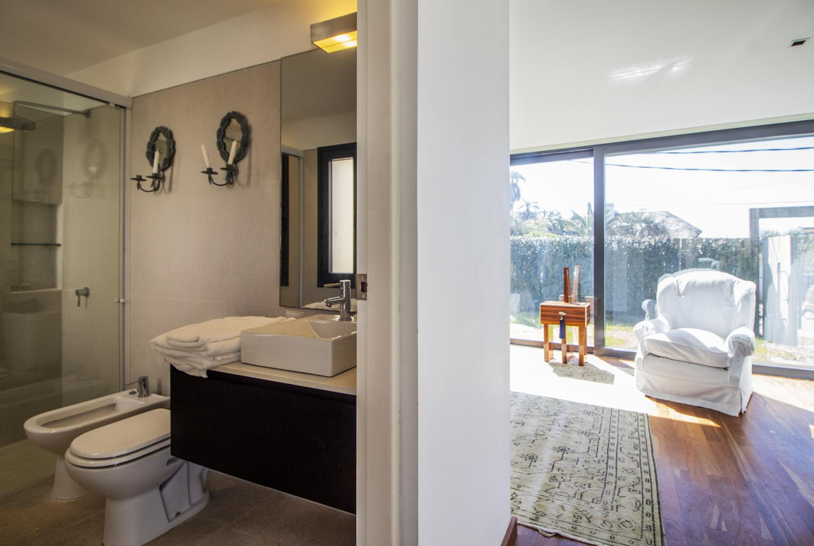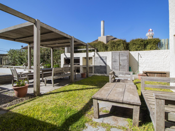 Terraza con acceso directo a la playa,piscina, deck y parrilero exterior. Se le agrega parrillero cerrado,anexado a otro comedor y living funcional como playroom mas 2 dormitorios en semi suite para huéspedes