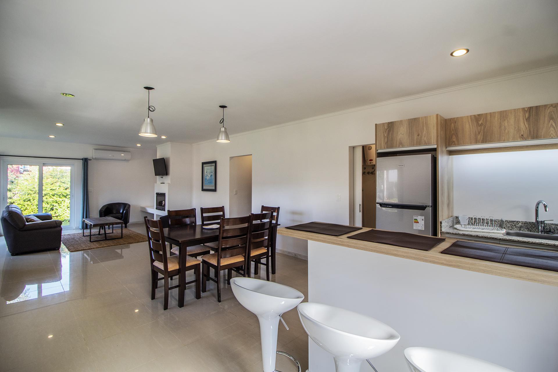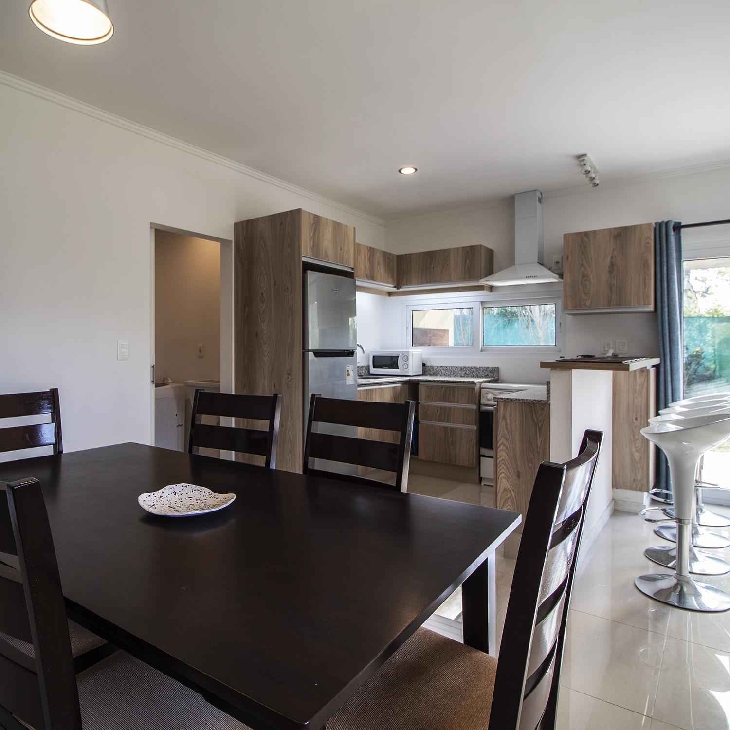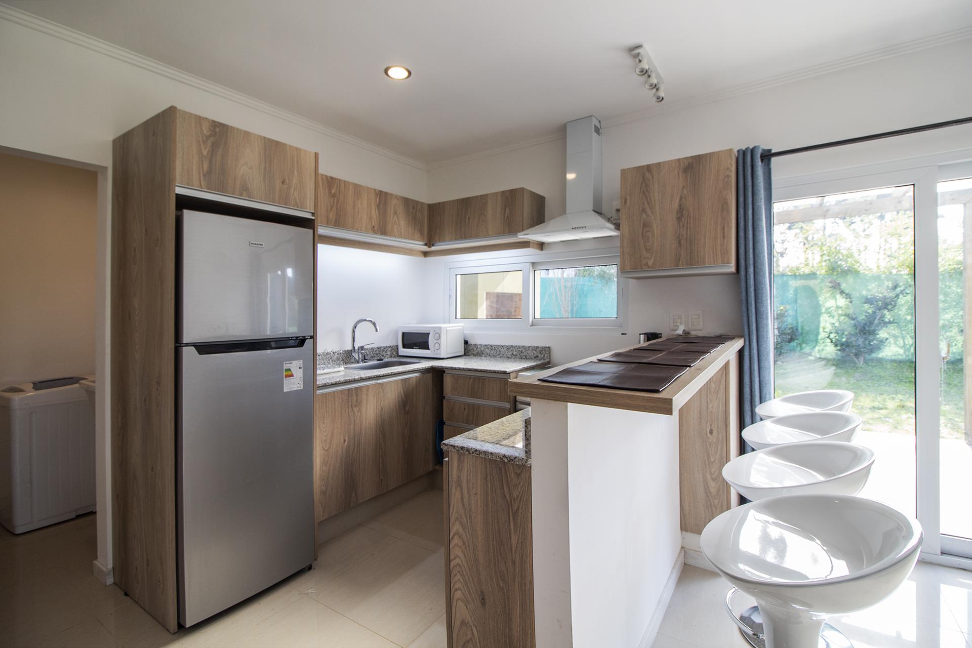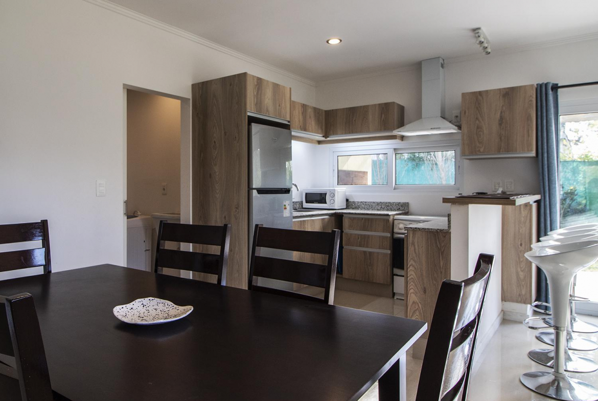 Cocina y living comedor integrado, amplios espacios, luminoso, ambiente cozy. Fácil acceso al jardín desde su cocina donde se encuentra el parrillero techado y amplio deck donde podrá disfrutar de la naturaleza del entorno.