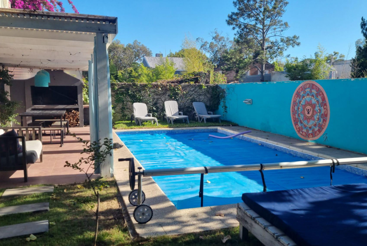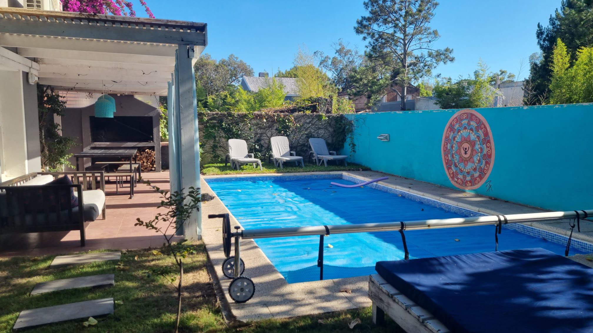 Galería cubierta con juego de living y mesa de asado. Parrilla en piedra. Jardín y piscina de 3.5 x 9 mts.