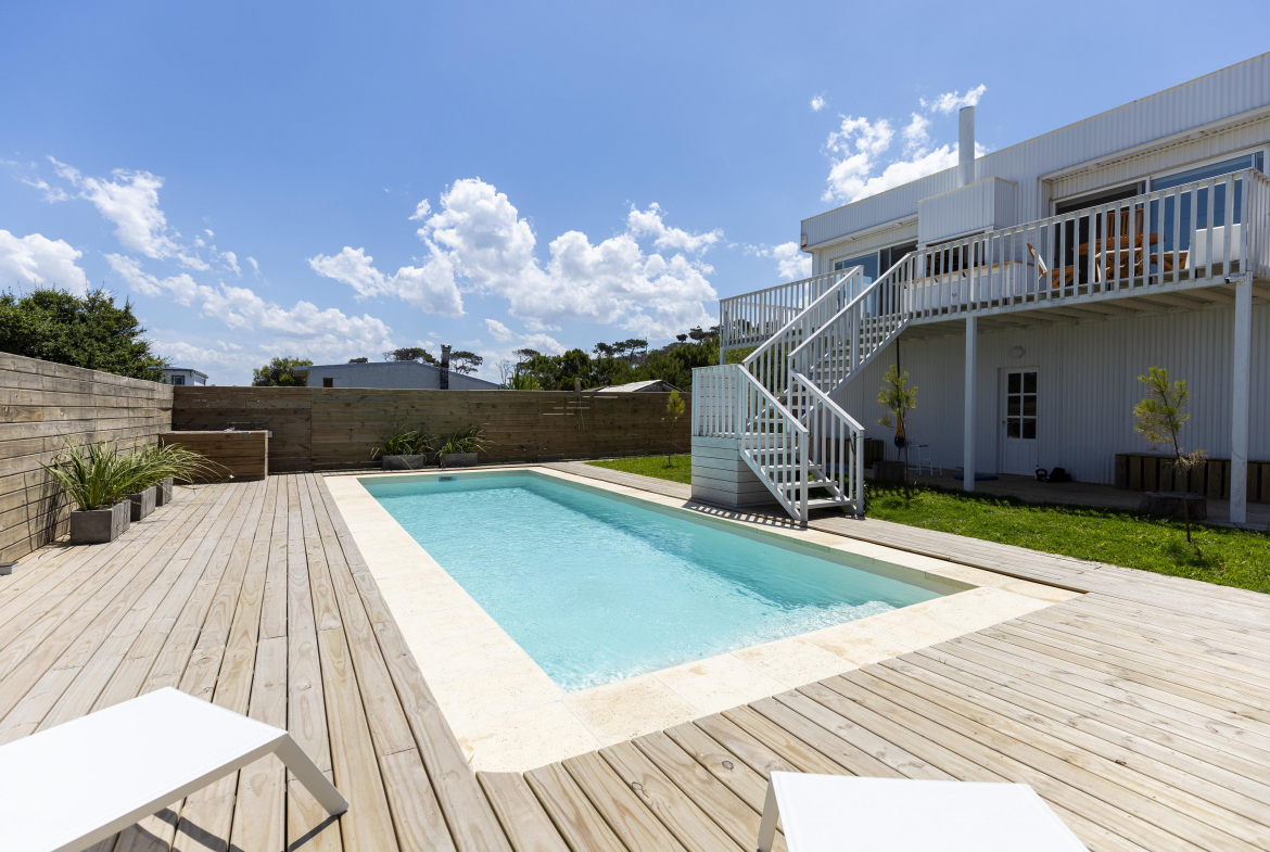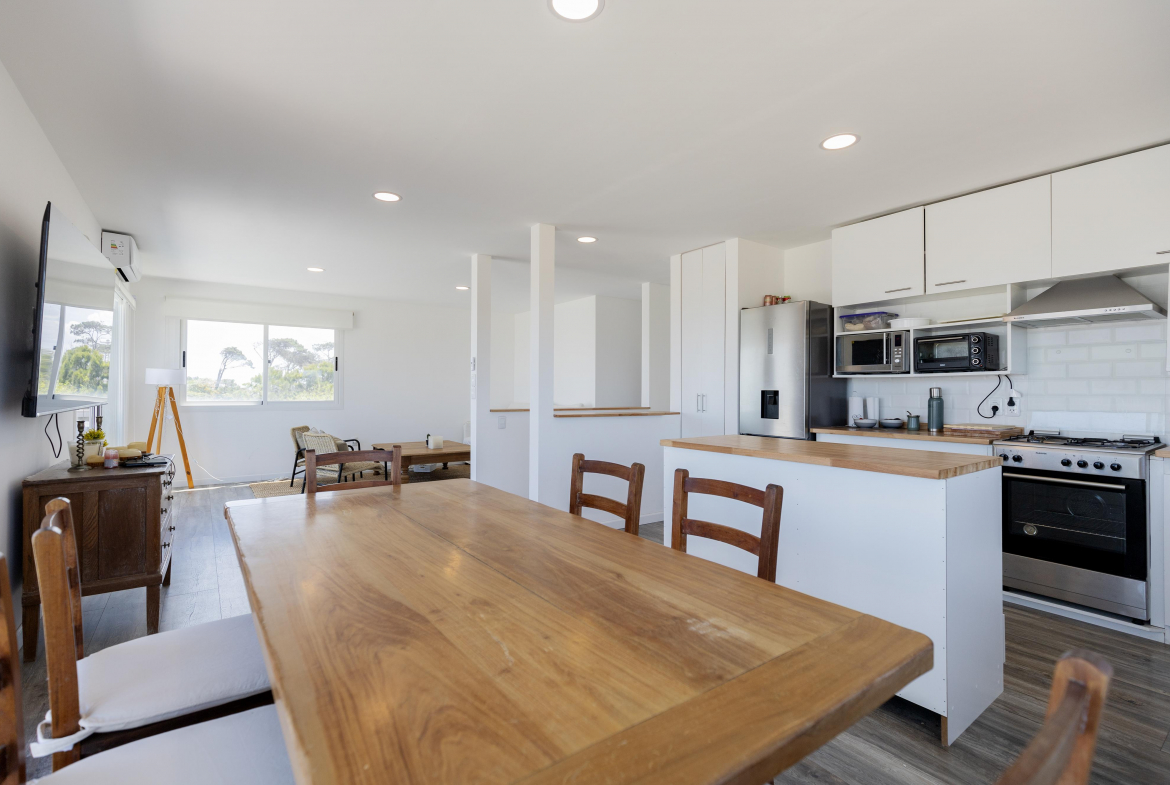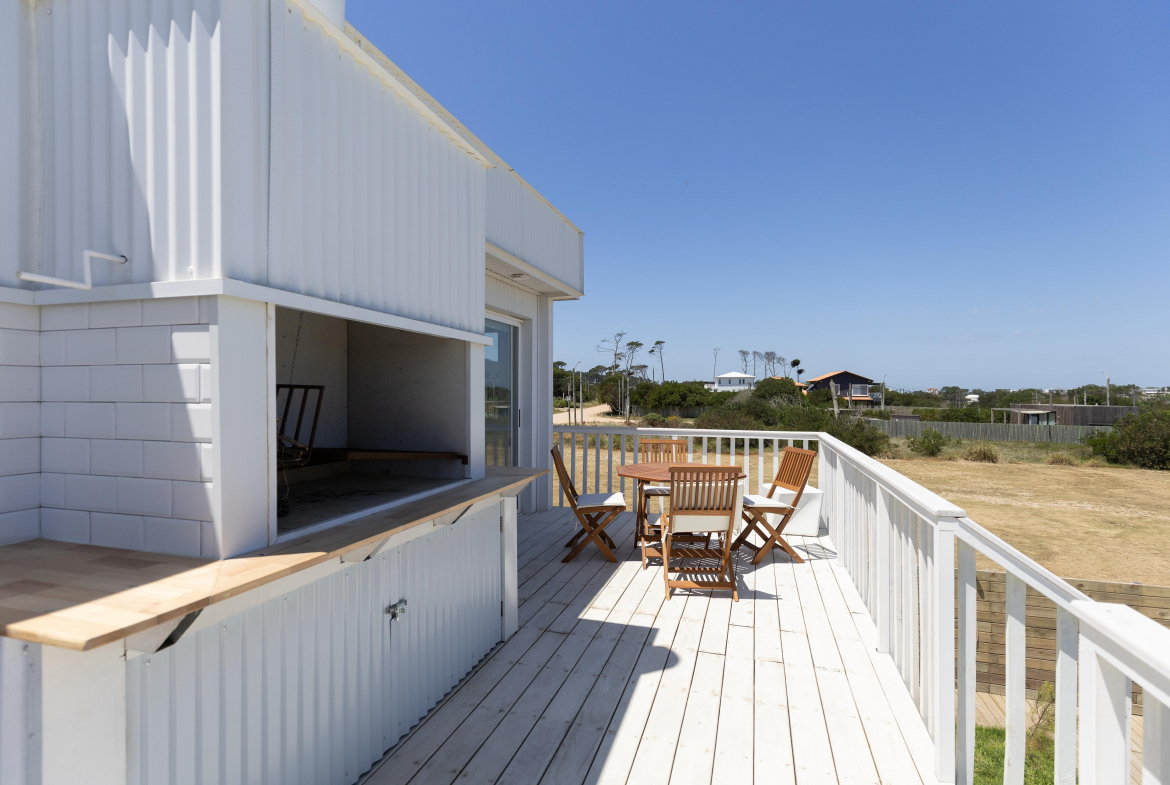 Excelente propiedad de dos plantas en el Balneario La Juanita con increibles vistas al oceano y a la playa mansa de Jose Ignacio. Cuenta con 4 dormitorios con ingresos independientes, balcon panoramico y piscina y parrillero con galeria.