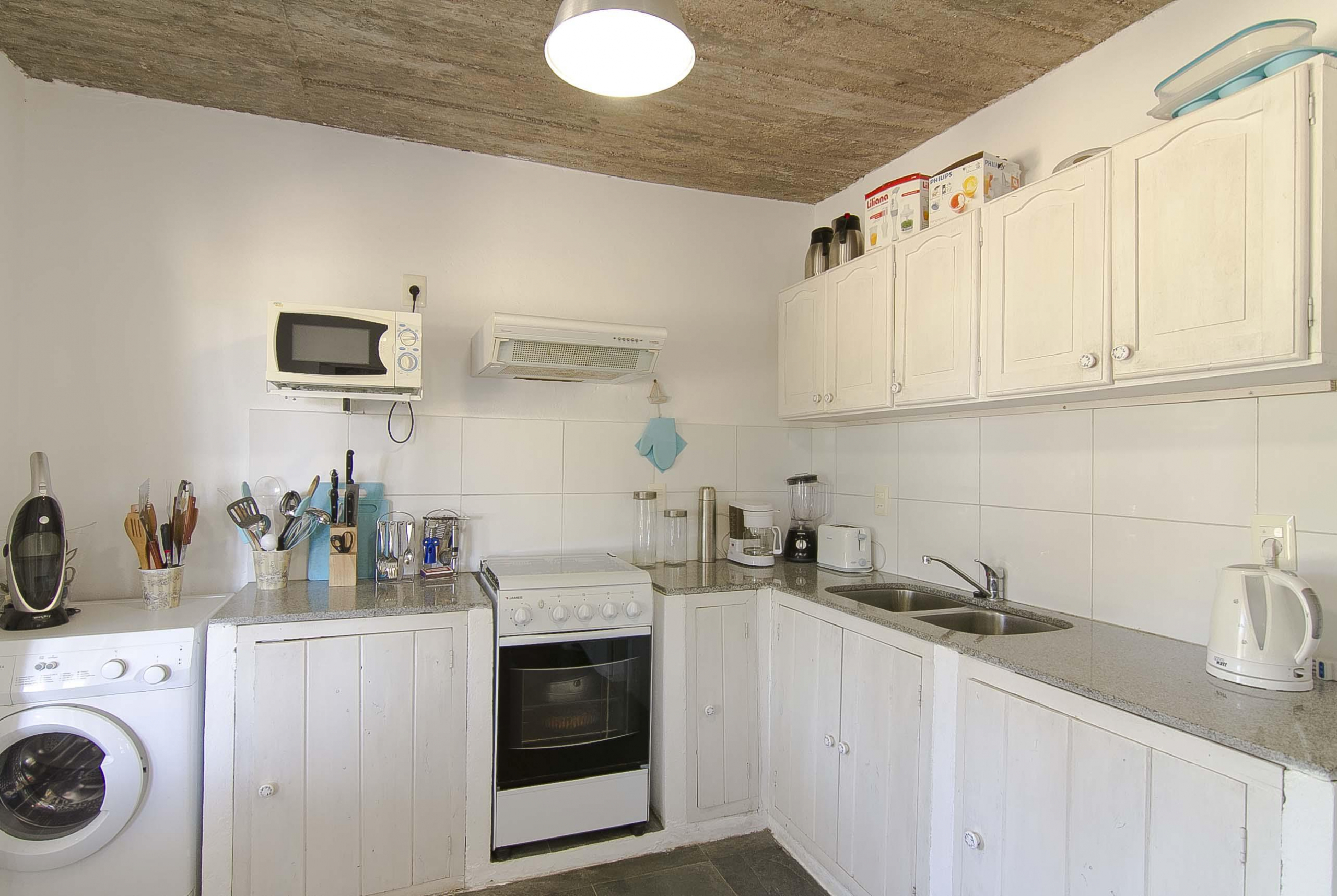 En planta baja, living, comedor y cocina completa bien equipada, un dormitorio y un baño.