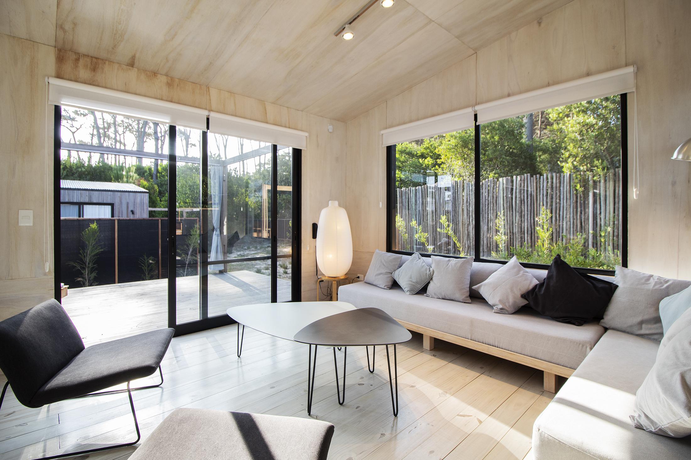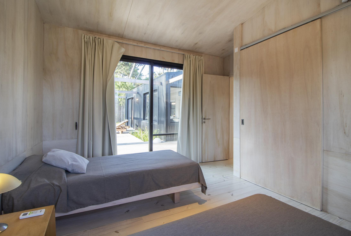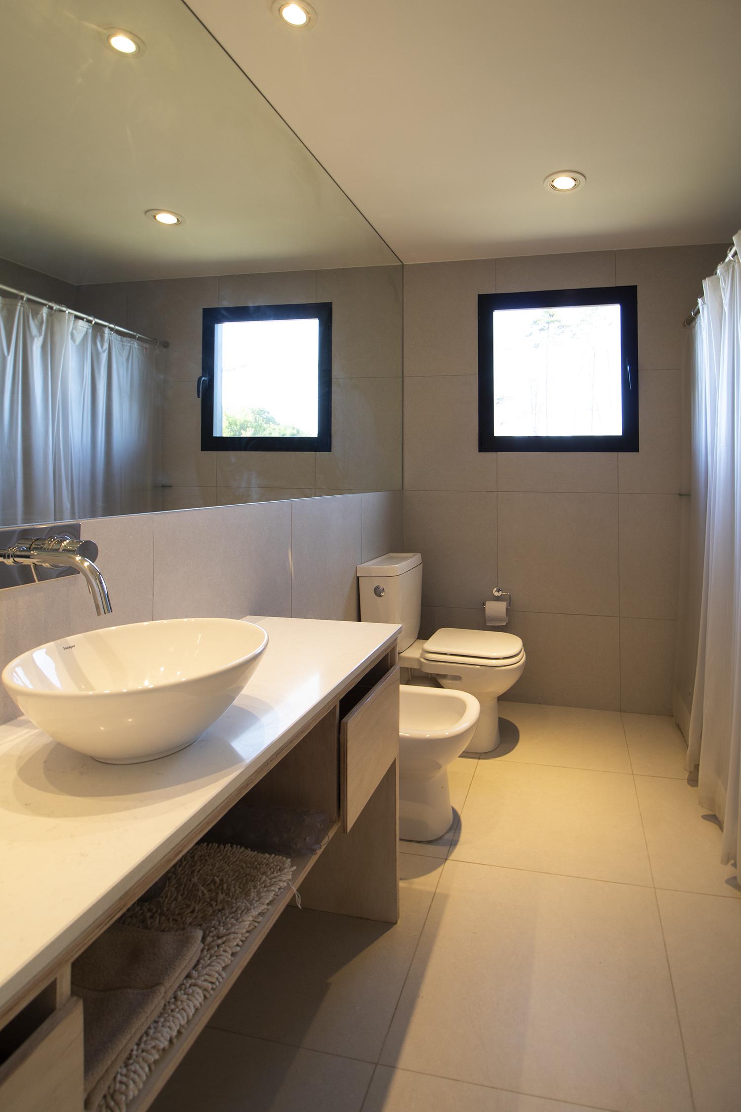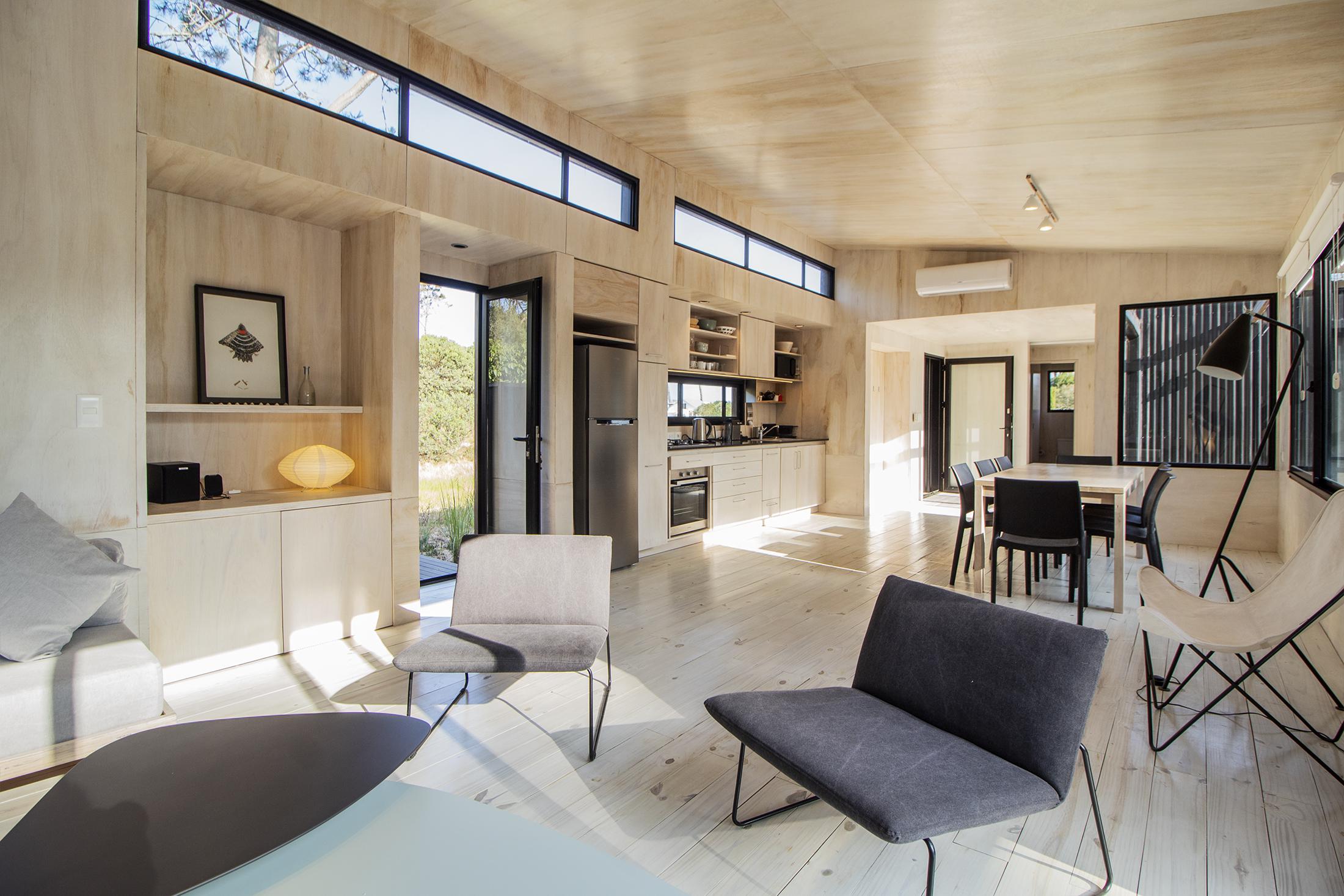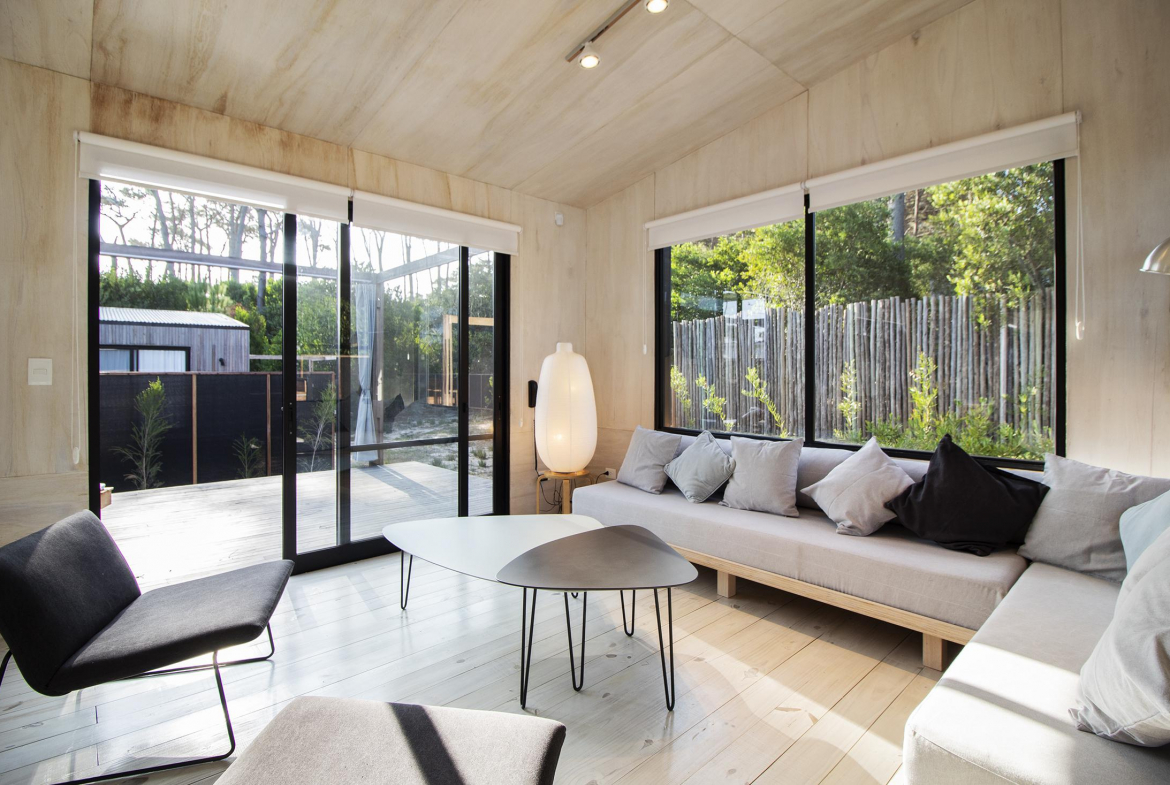 Dos dormitorios comodos con dos baños, living comedor integrado, con amplios ventanales que conectan el deck con los espacios de uso comun.