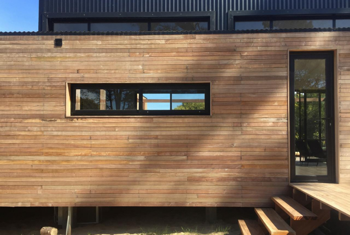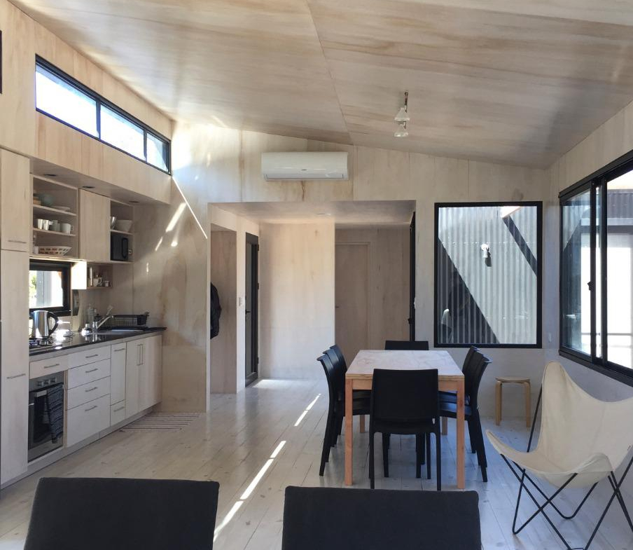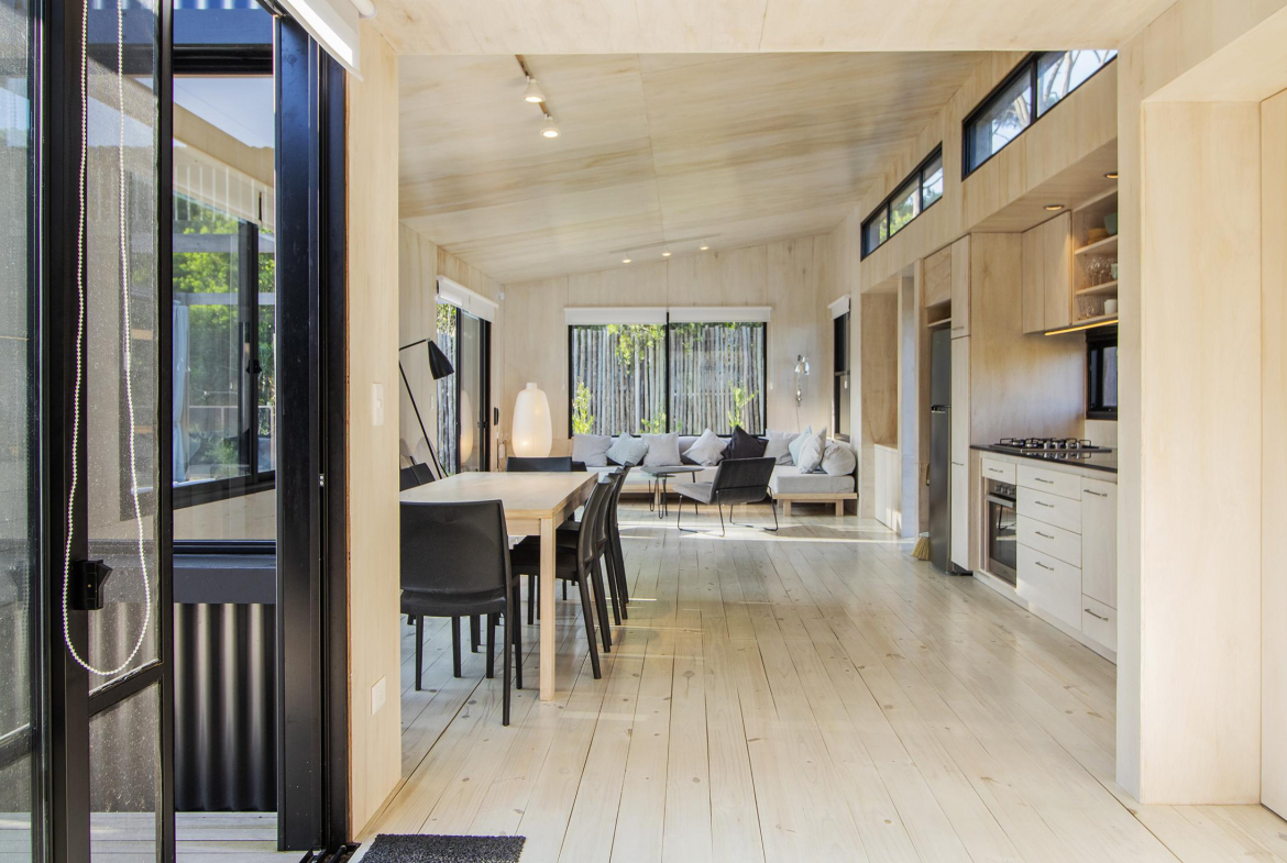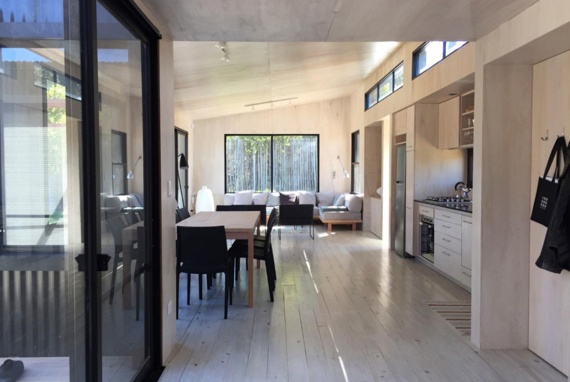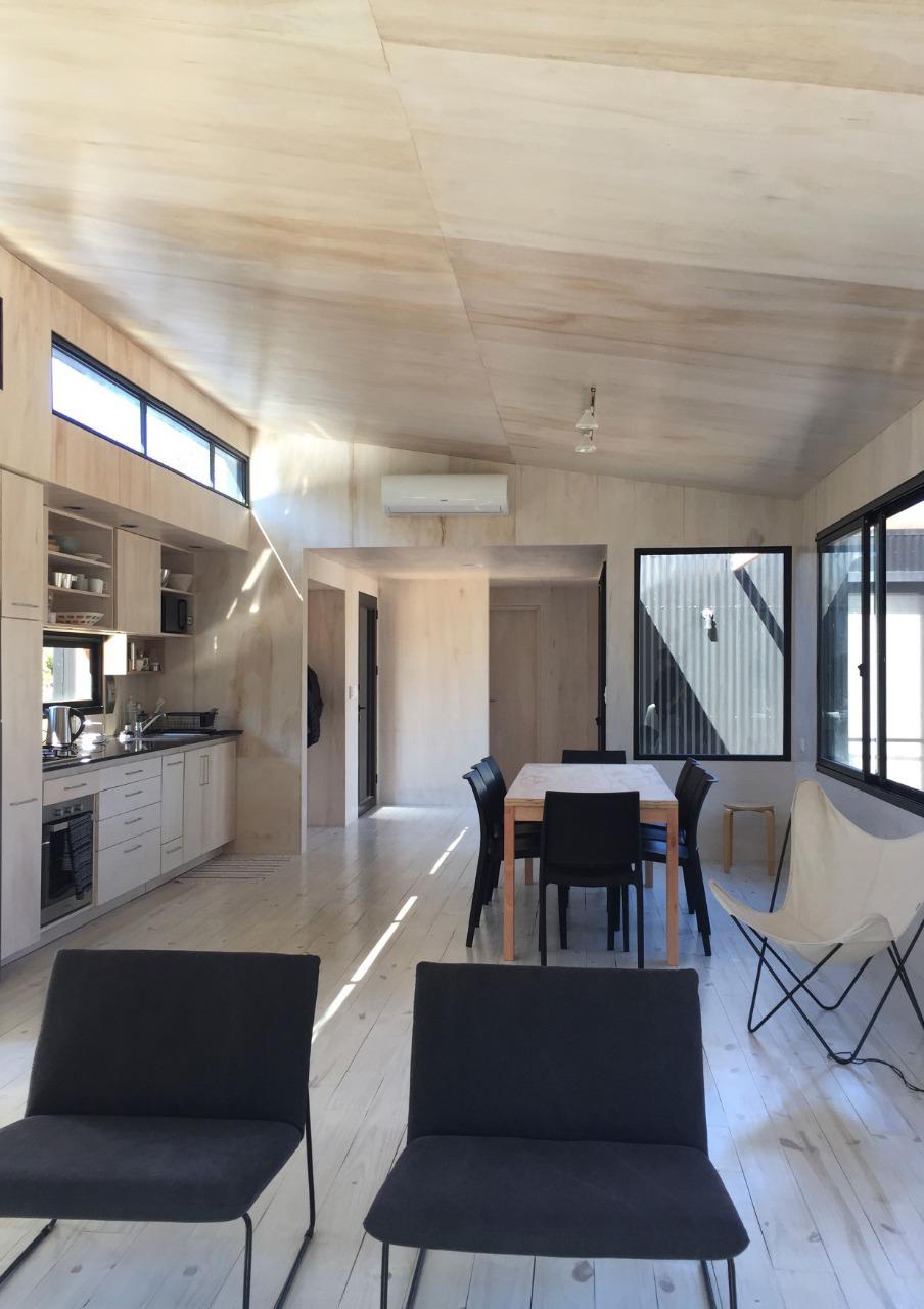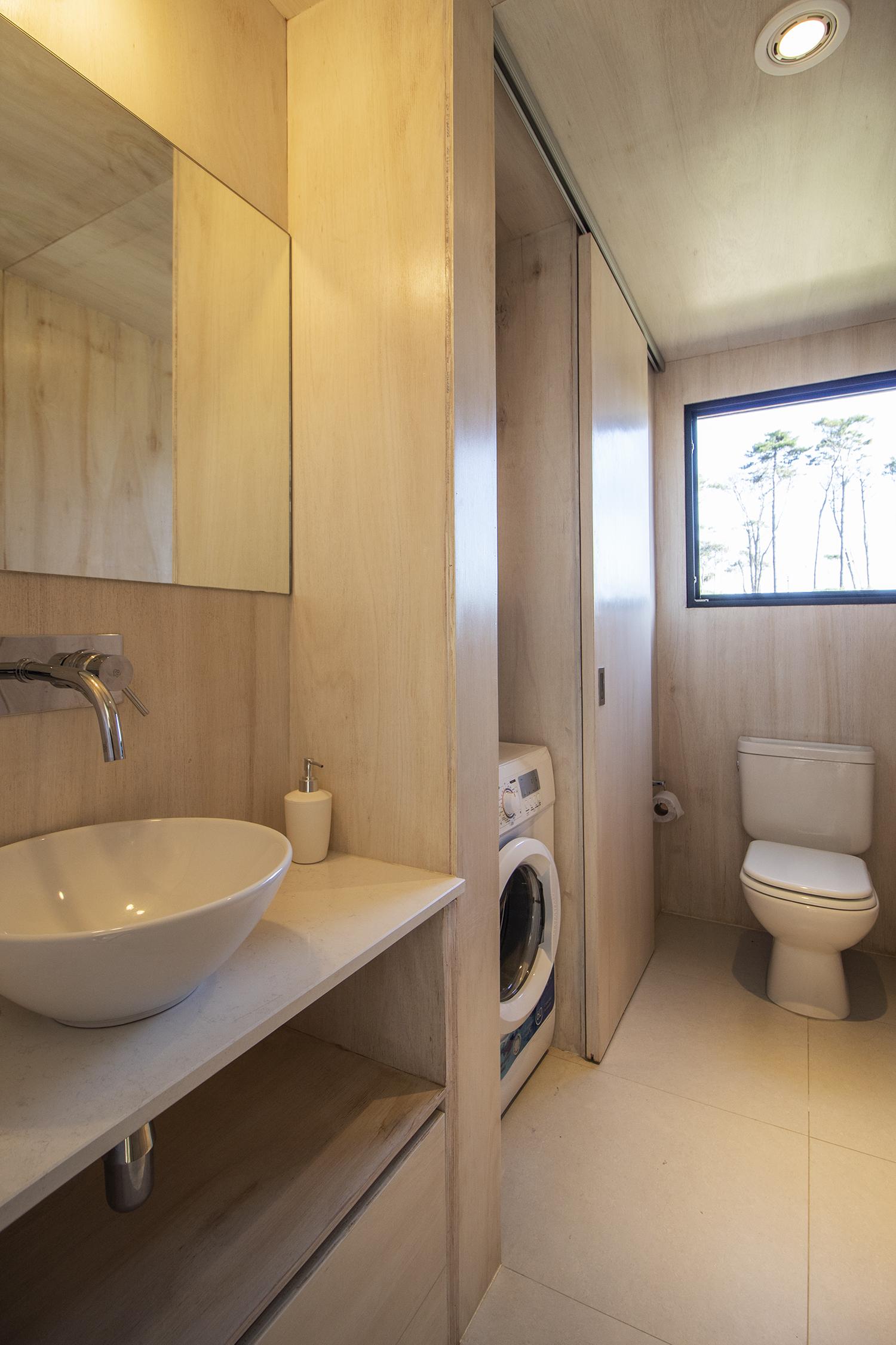 Dos dormitorios comodos con dos baños, living comedor integrado, con amplios ventanales que conectan el deck con los espacios de uso comun.