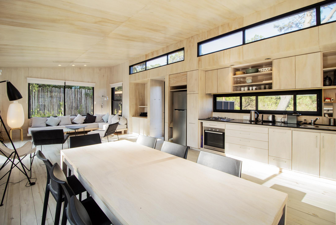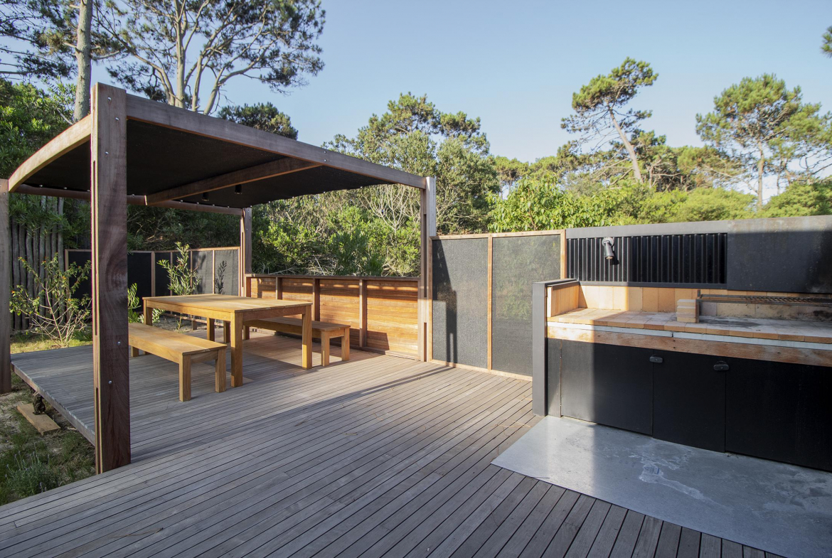 Desarrollada toda en una planta, rodeada de comodos rincones y decks donde descansar en la tranquilidad de la Juanita.