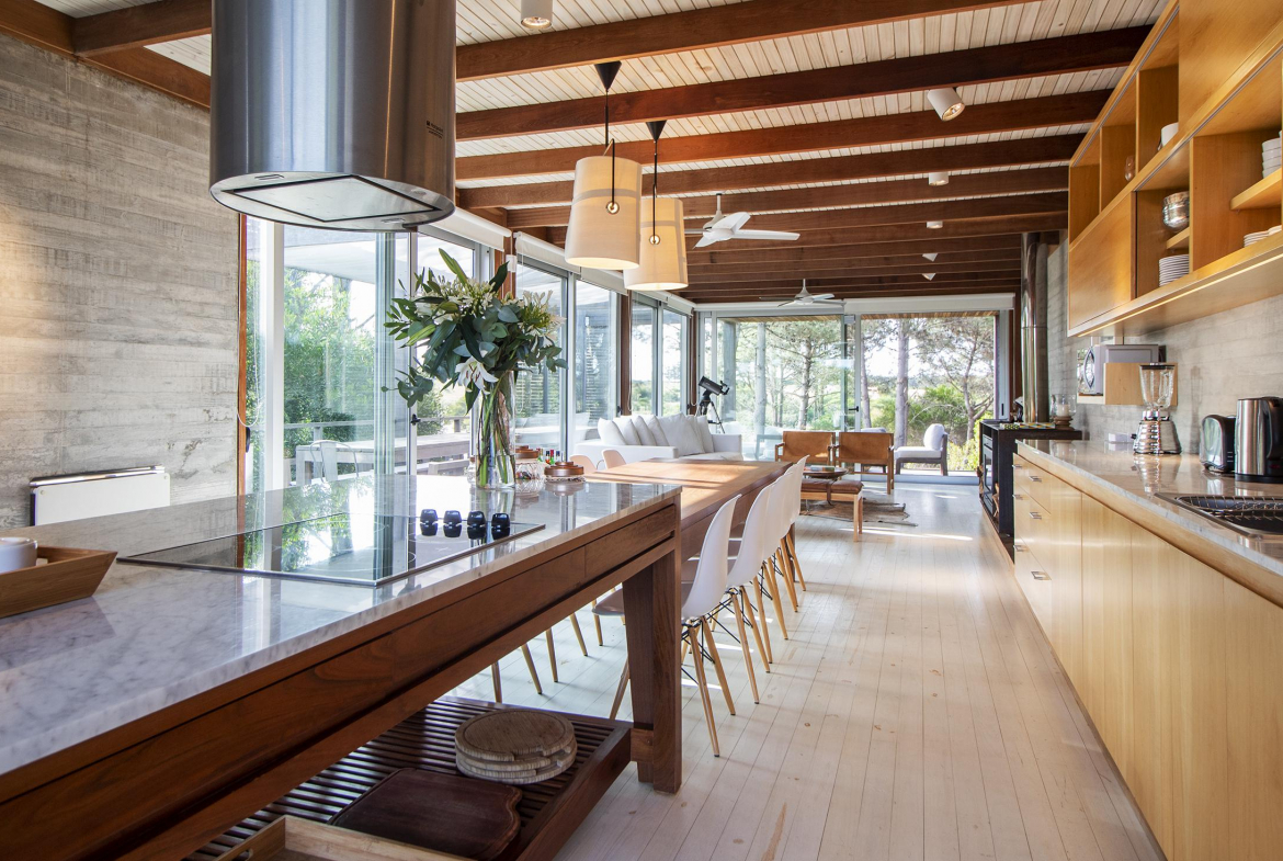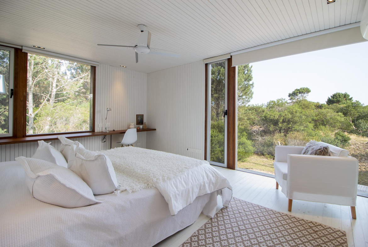 En baja temporada, la casa queda disponible en alquiler con 4 dormitorios y 4 baños.