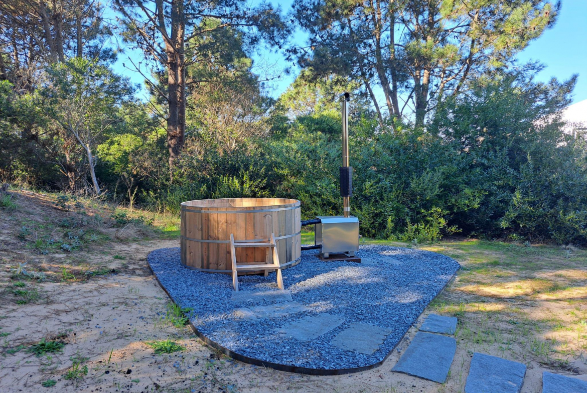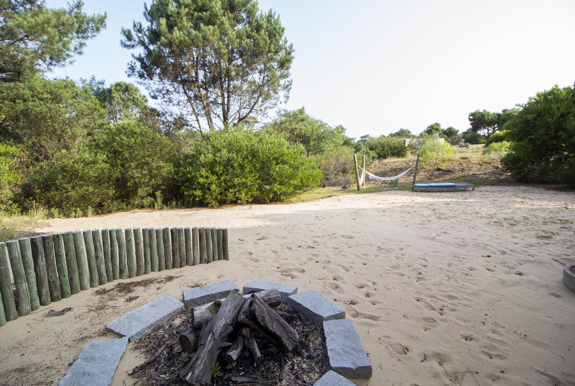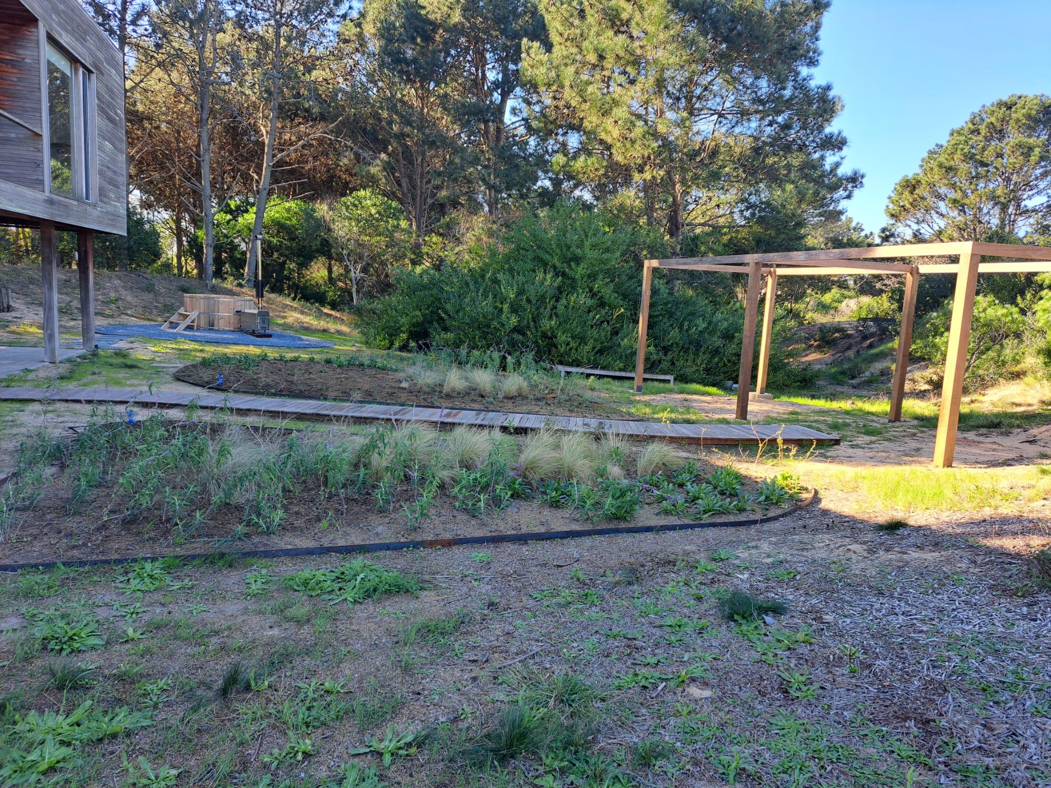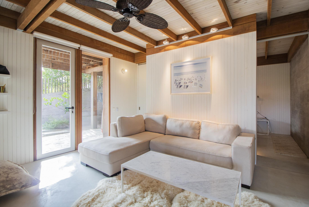 En un entorno arbolado, con arquitectura natural. Consta en planta alta con living comedor y cocina integrados, master suite, dormitorio para chicos en semi suite. En planta baja, dormitorio de huéspedes con living, cuarto dormitorio o dormitorio de servicio y lavadero. En su exterior cuenta con un hermoso jacuzzi rodeado de naturaleza.