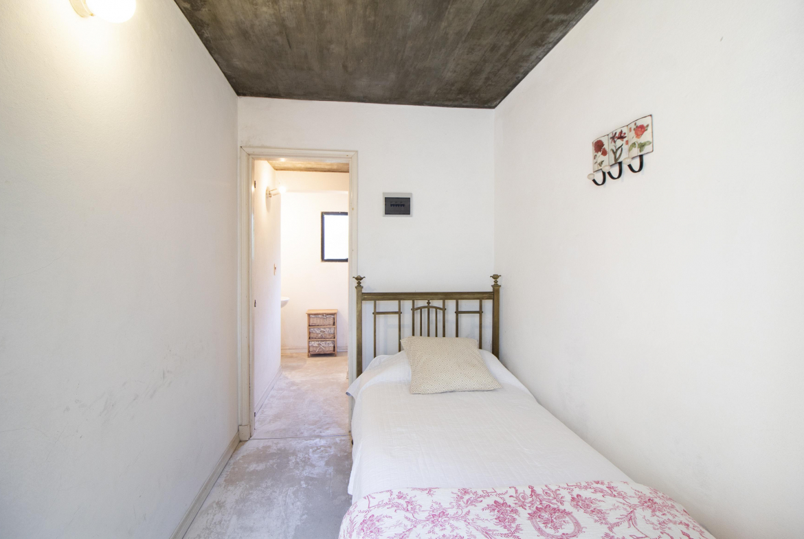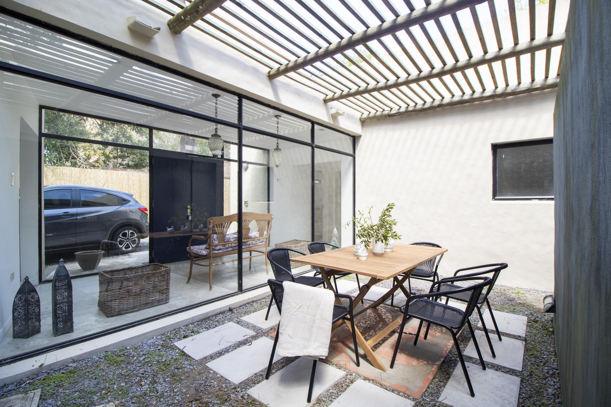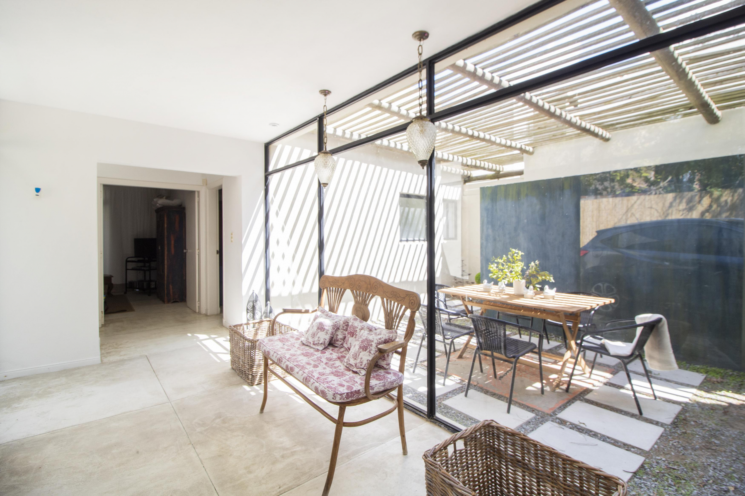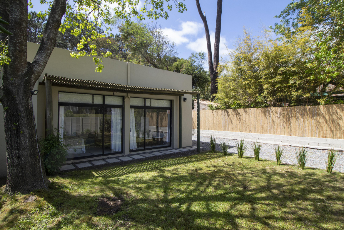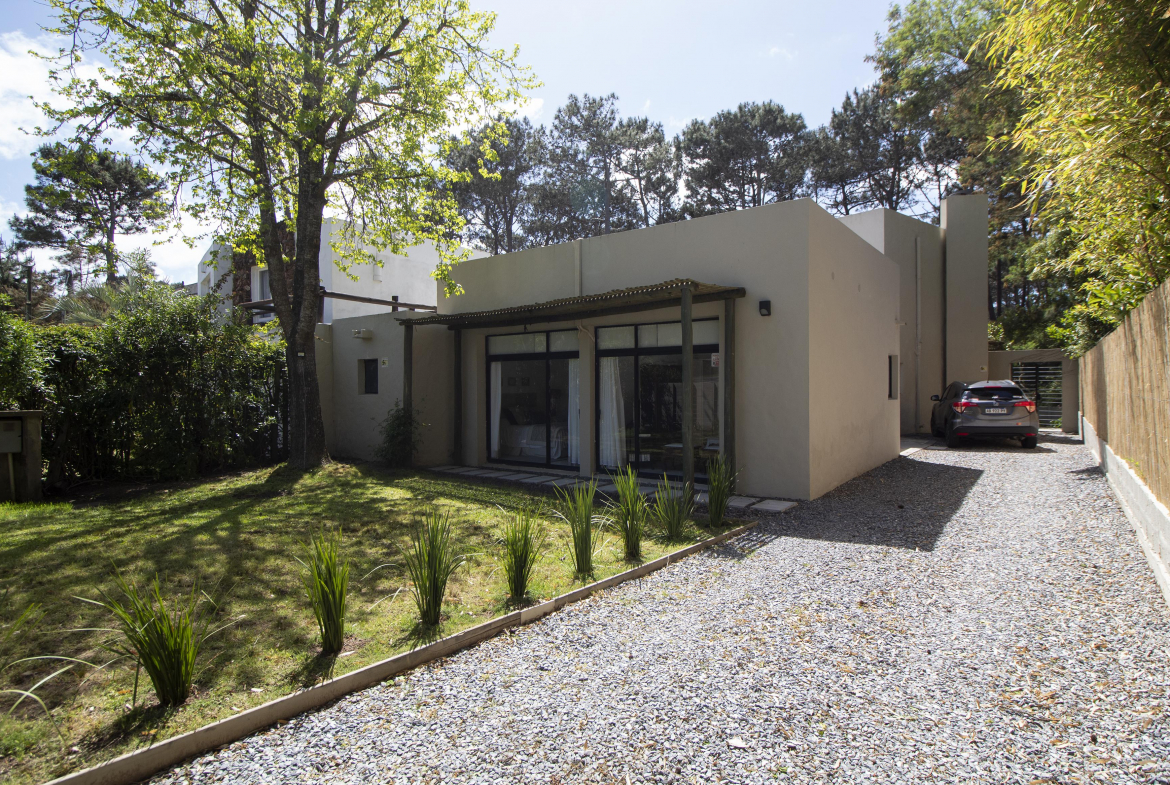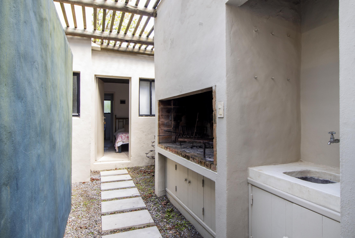 Planta baja: living- comedor y cocina integrada. Dormitorio principal en suite y un dormitorio mas con baño. Al fondo, independiente, dependencia de servicio.
