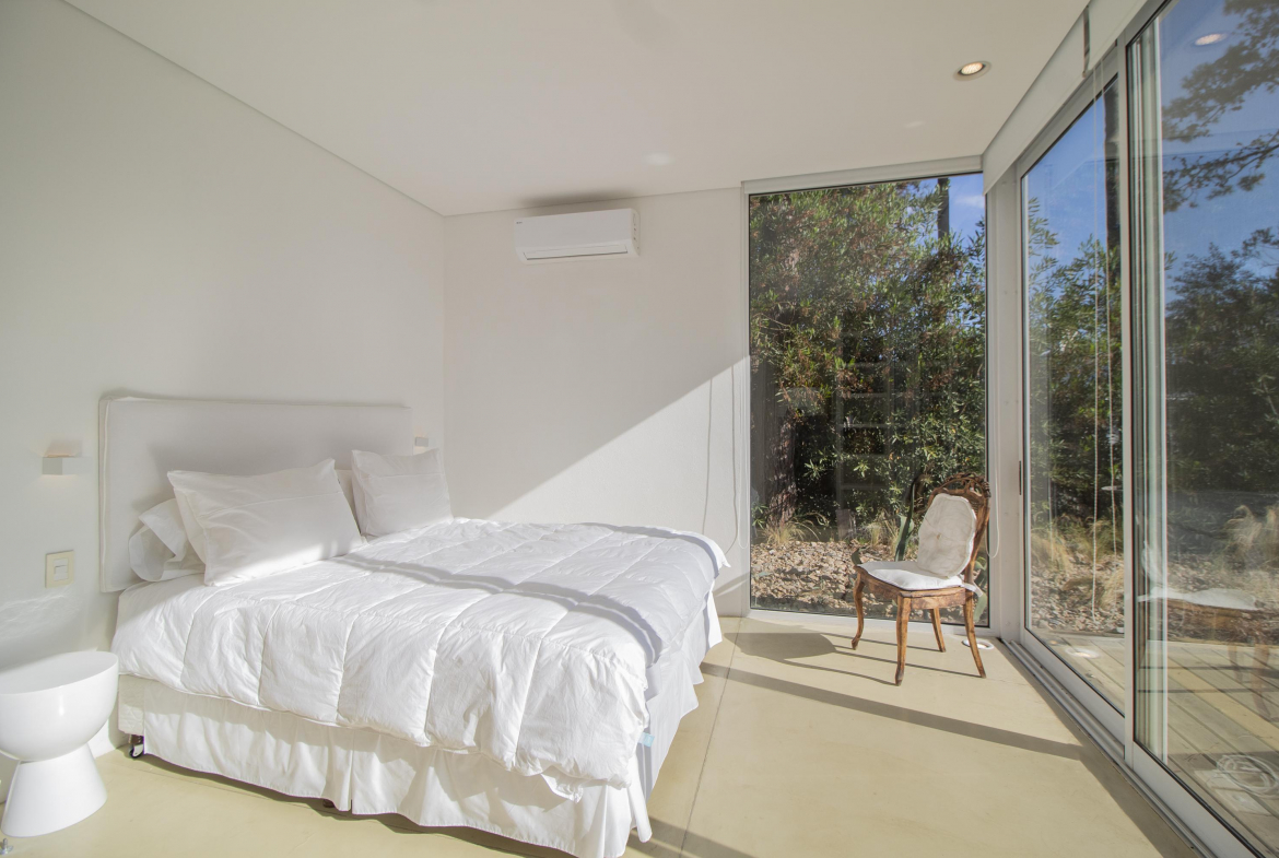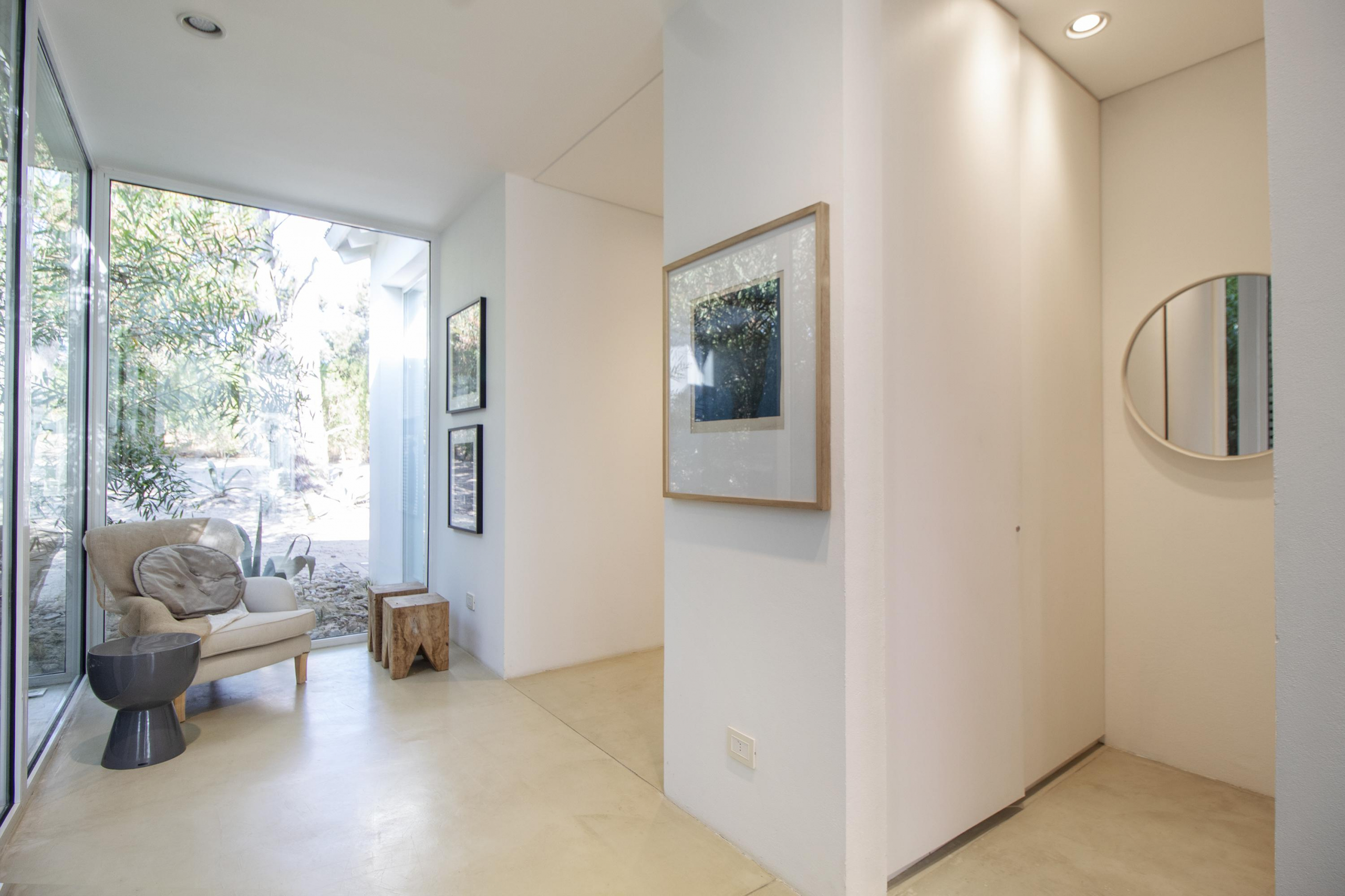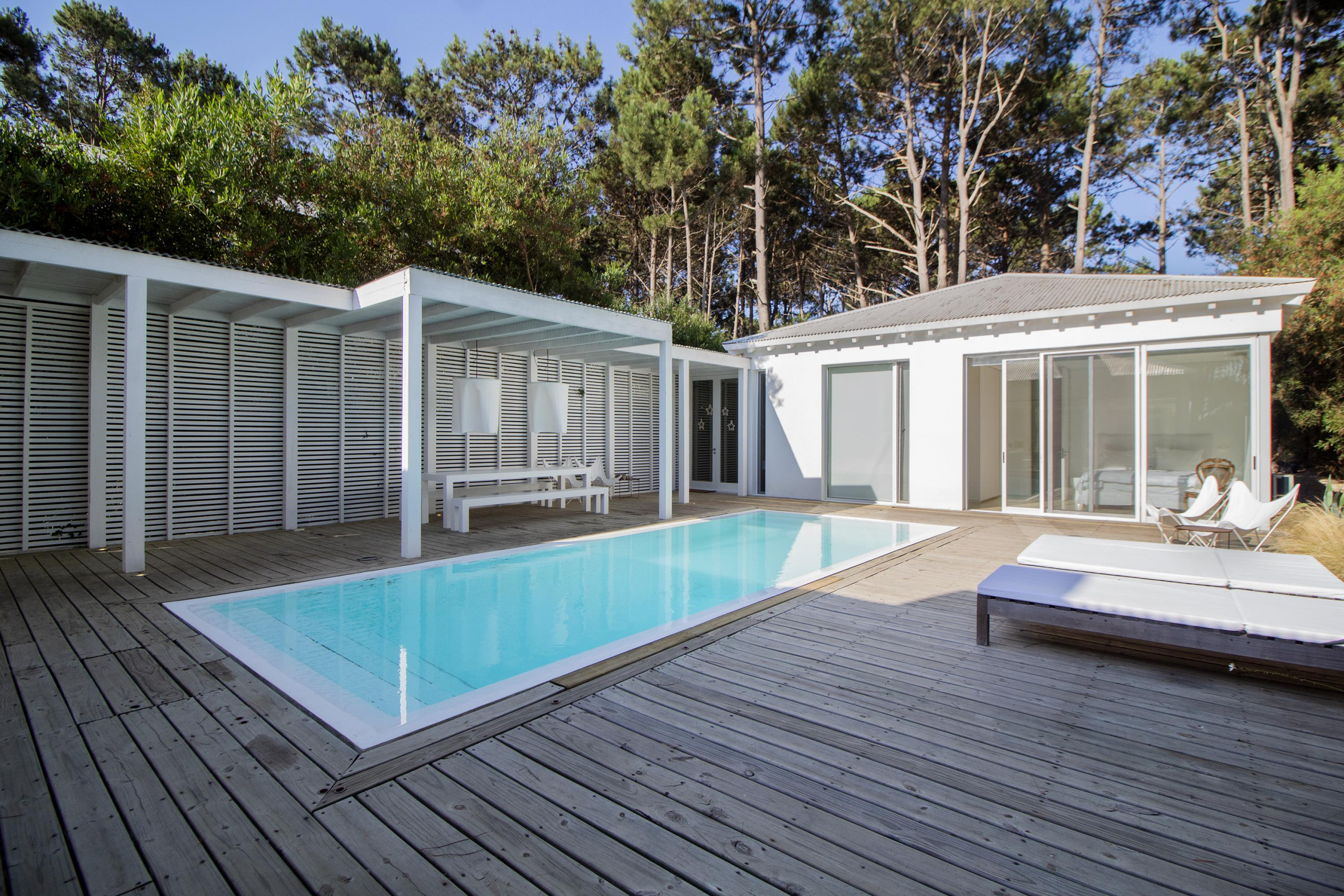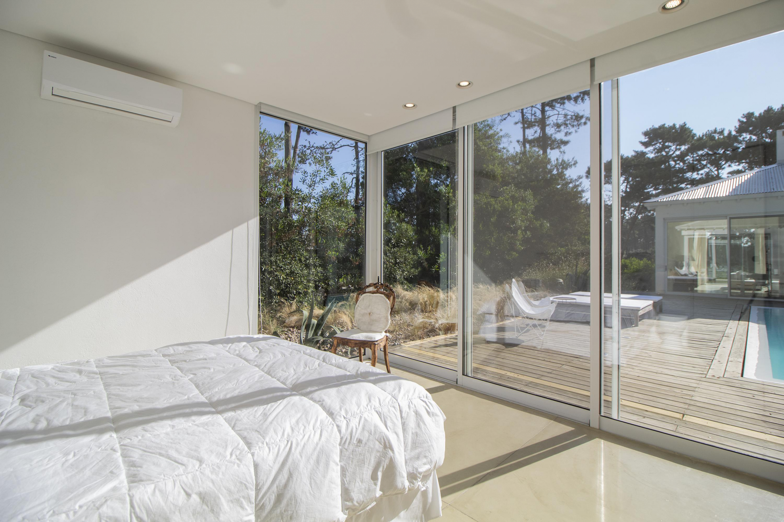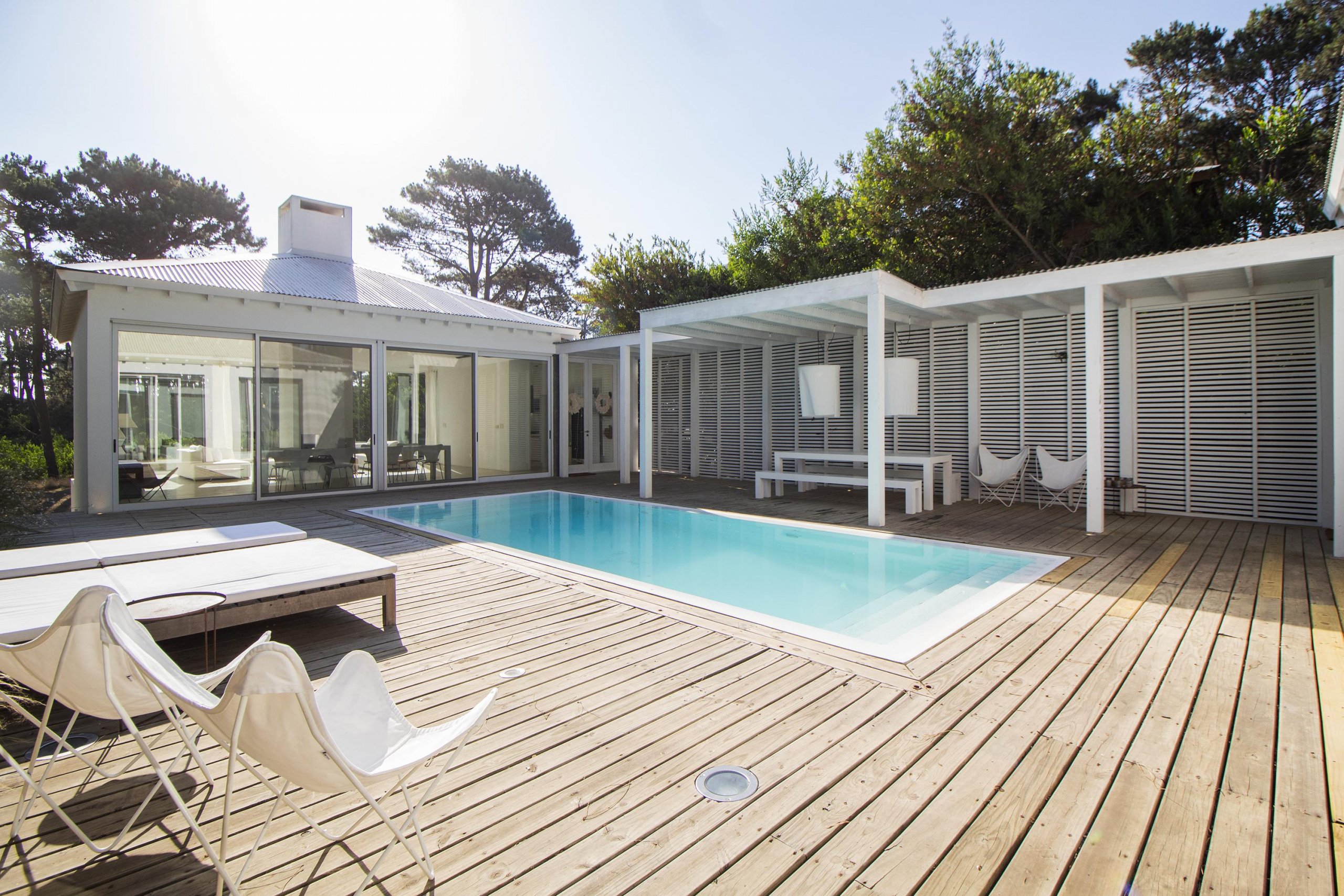Casa desarrollada en una planta con dos bloques bien definidos. Ubicada con cómodo acceso desde la entrada principal del barrio. Sobre el bloque frontal encontramos el garaje a nivel de piso y sobre este un amplio espacio integrado de living/comedor separados por una estufa a leña. Cocina completa. Sobre el lado opuesto se encuentra el área de dormitorios con un toilette, dos dormitorios compartiendo baño más una amplia suite con buen tamaño de baño y vista a la piscina, la cual se encuentra entre ambos bloques, con deck y galería. Cuenta con amplia dependencia de servicio