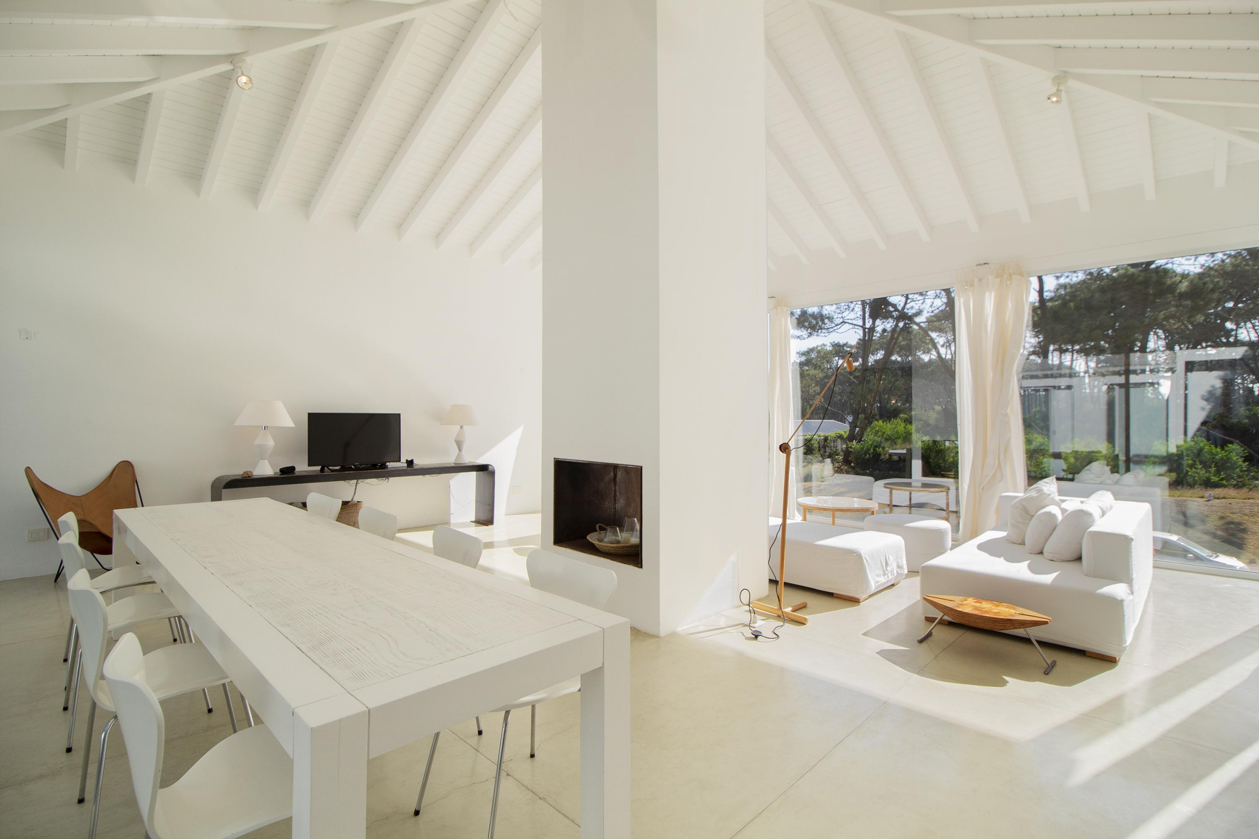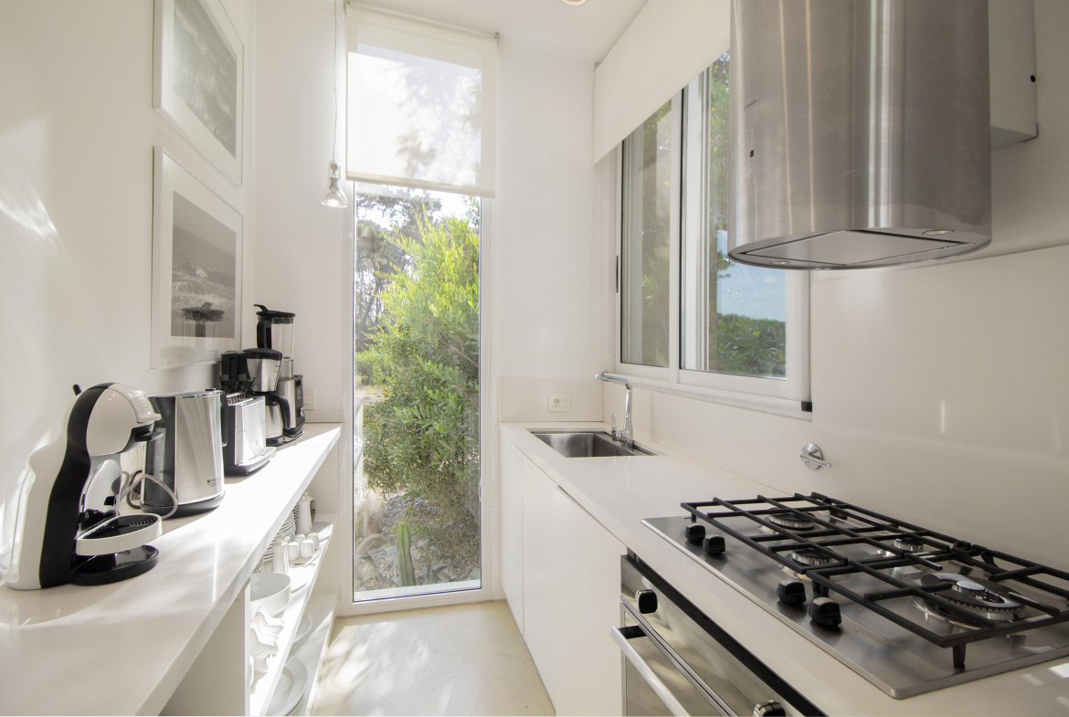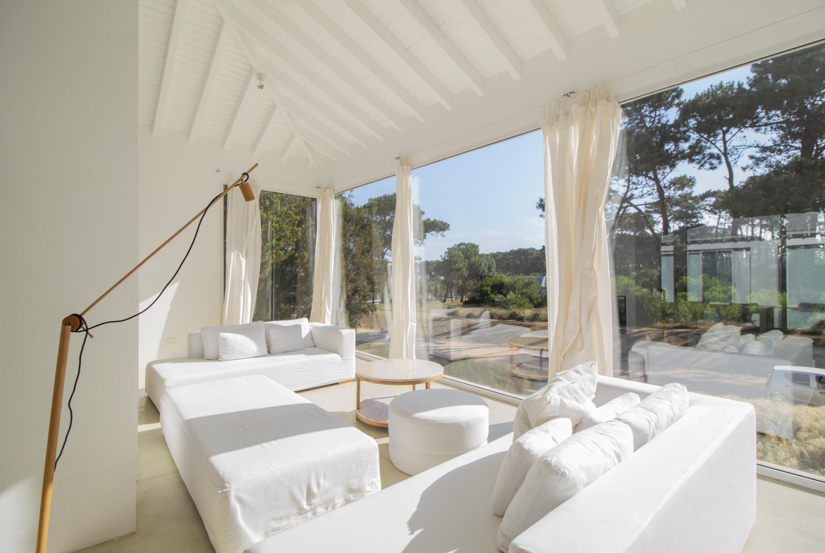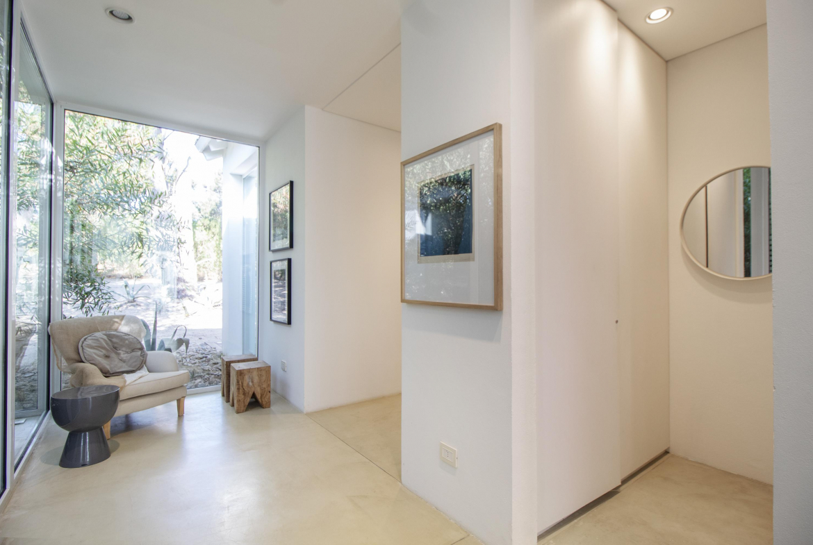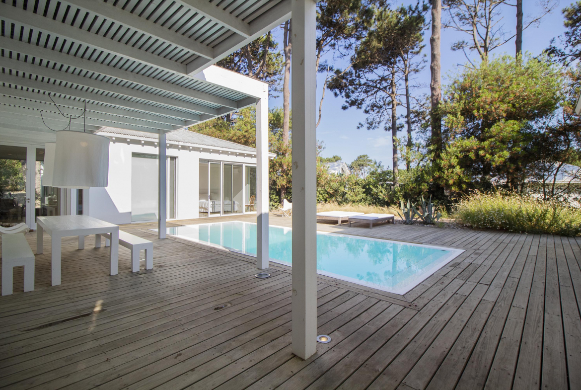 Casa desarrollada en una planta con dos bloques bien definidos. Ubicada con cómodo acceso desde la entrada principal del barrio. Sobre el bloque frontal encontramos el garaje a nivel de piso y sobre este un amplio espacio integrado de living/comedor separados por una estufa a leña. Cocina completa. Sobre el lado opuesto se encuentra el área de dormitorios con un toilette, dos dormitorios compartiendo baño más una amplia suite con buen tamaño de baño y vista a la piscina, la cual se encuentra entre ambos bloques, con deck y galería. Cuenta con amplia dependencia de servicio