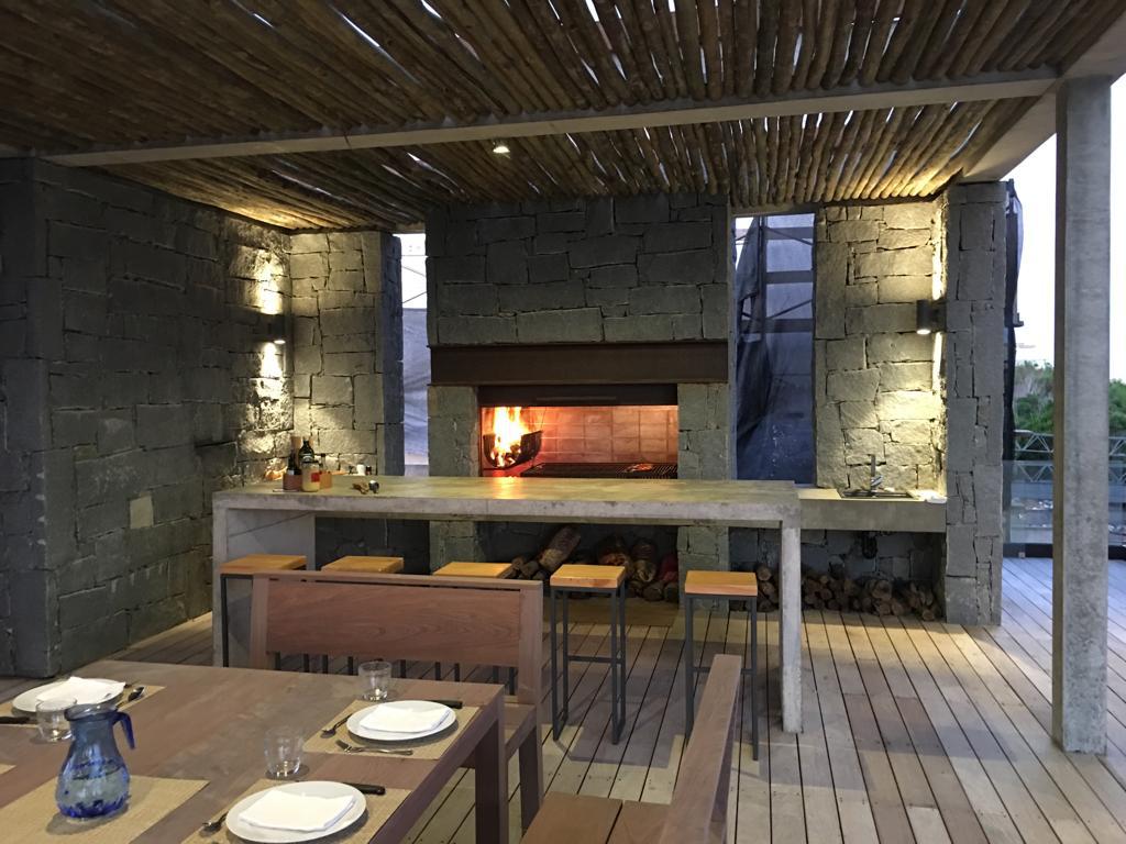 Great property designed and built by the famous architect Carlos Ott, is located in the first row of Jose Ignacio House of flagstone and walls covered in wood. Exposed concrete roof. Own elevator. First floor: Large living room with double wood stove and sea view. Kitchen with daily dining room and wood stove. Large covered barbecue with fireplace with direct access to the pool and solarium. Upstairs: Small office, 6 bedroom suites, master suite with dressing room, bathroom with sea view, wood stove. Basement: Garage for 6 cars, playroom, maid’s suite, laundry room. Ideal option for those looking for first class qualities, comfort, design and security, being meters away from the beach and the town of José Ignacio.