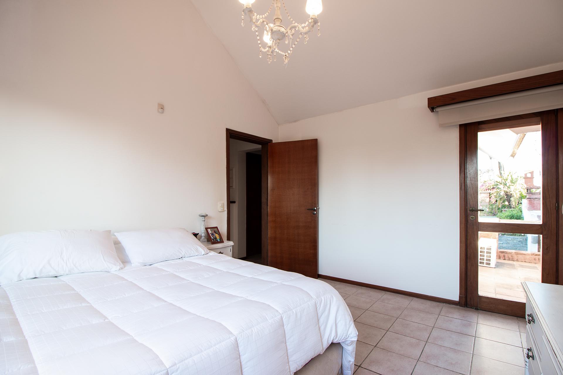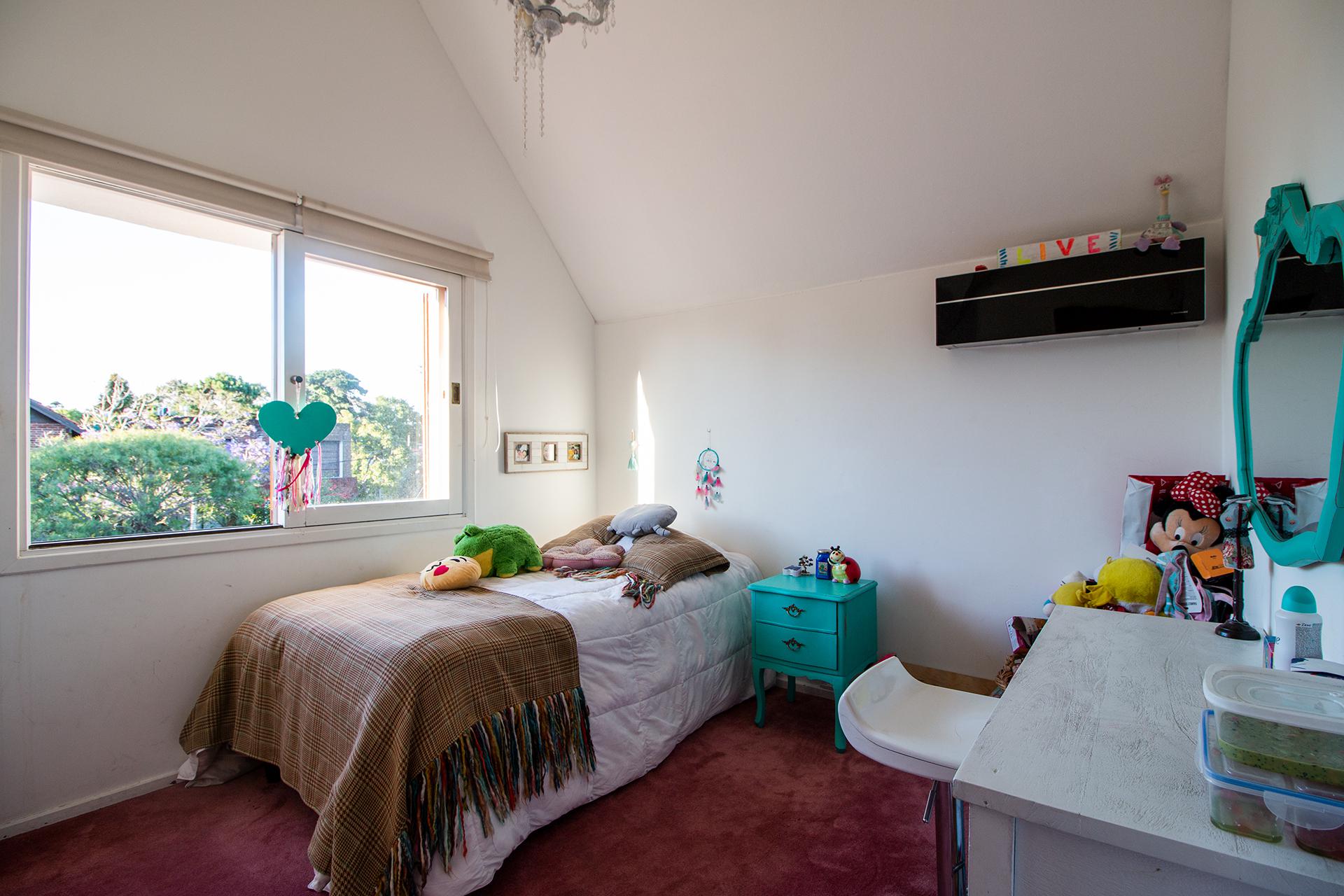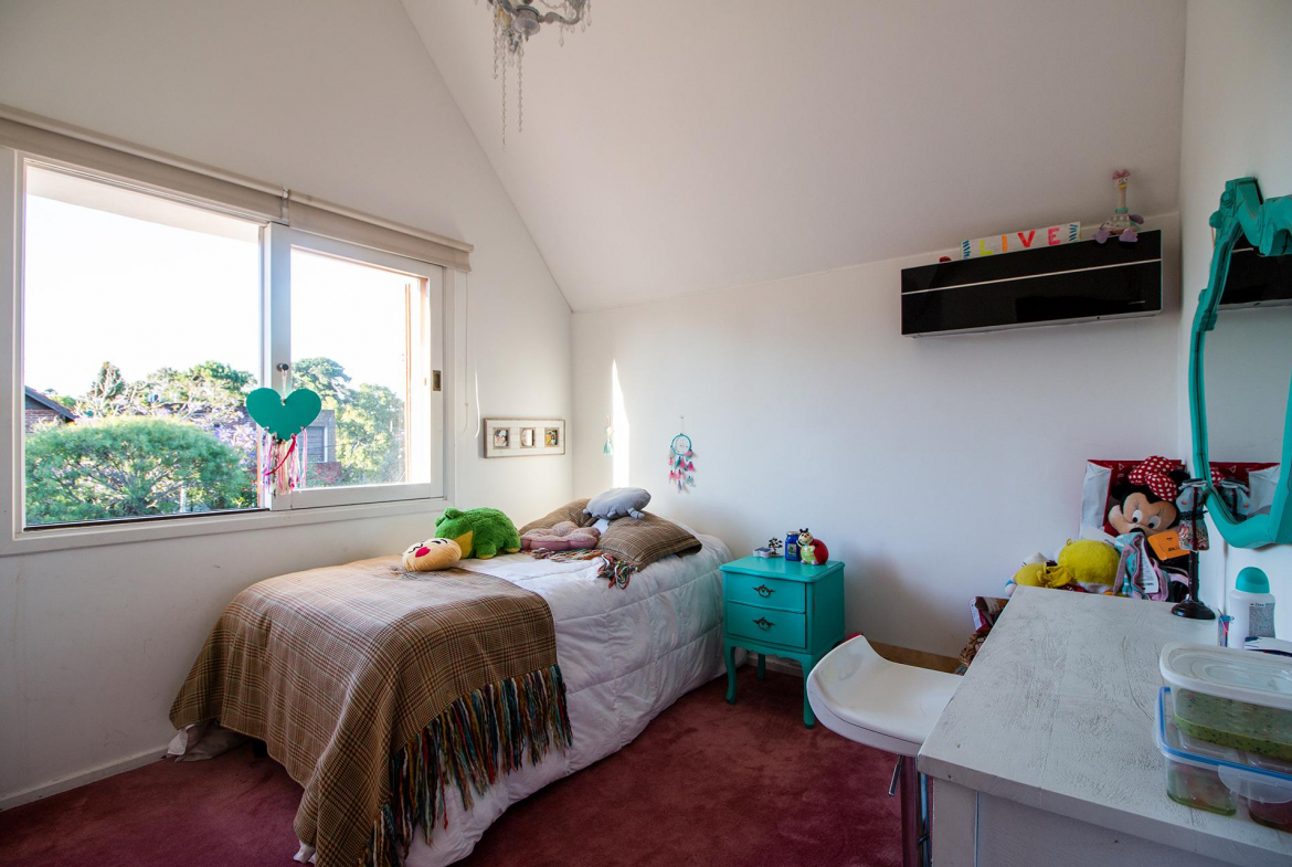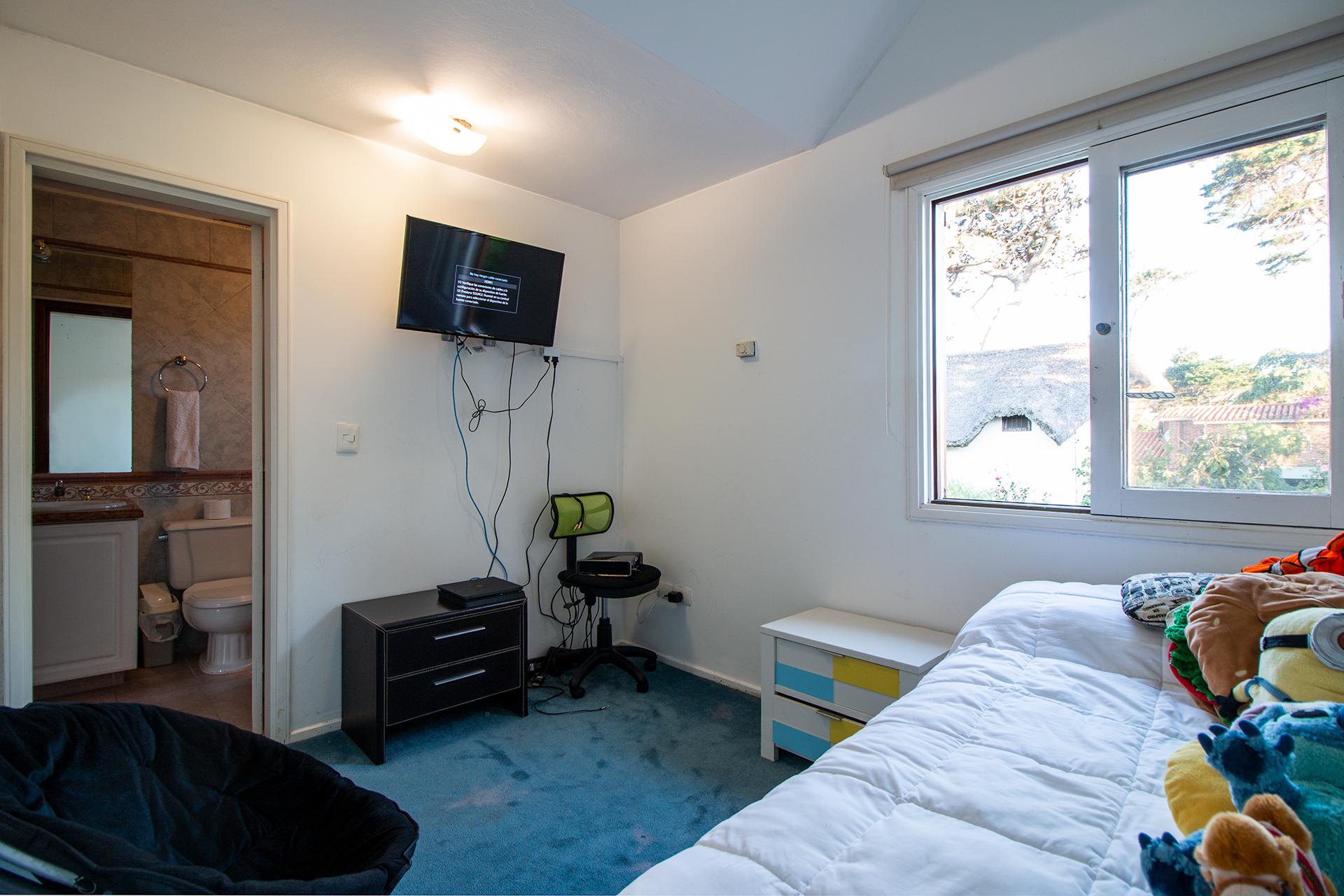 En planta alta, master suite, dos dormitorios con camas singles que comparten un baño. En planta baja, area de uso comun con baño de uso social. Dependencia de servicio.