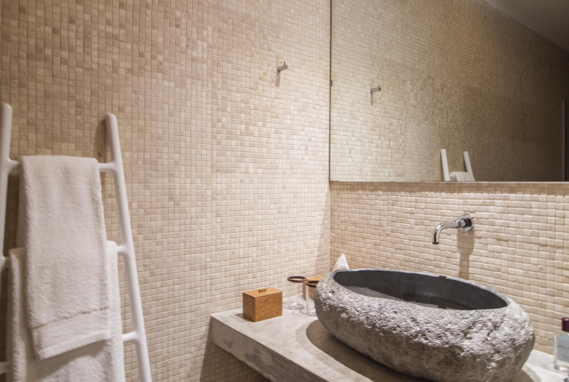 Pileta revestida con cerámicos traídos de Bali/ Gran deck de lapacho