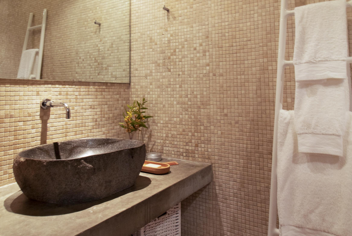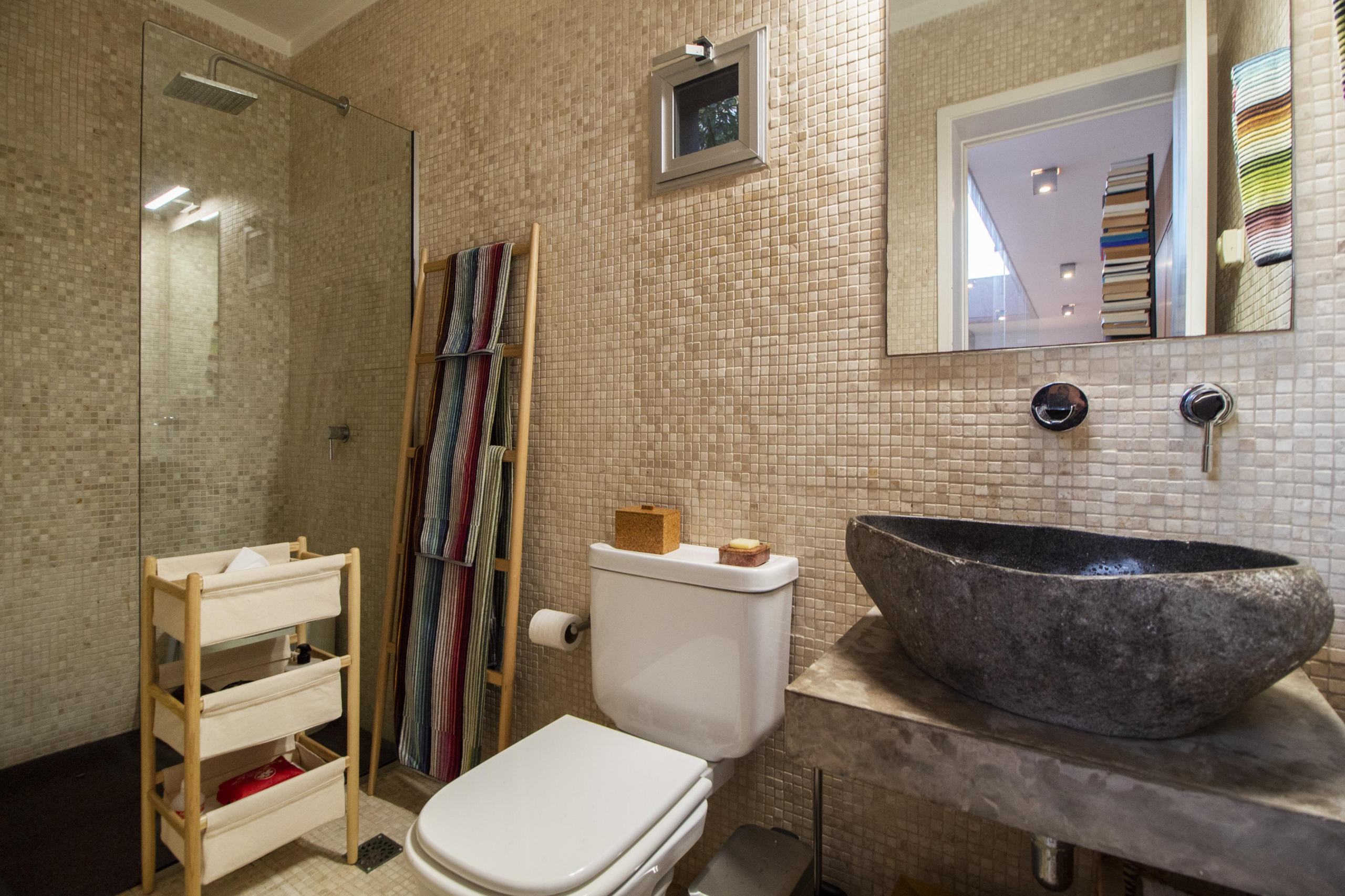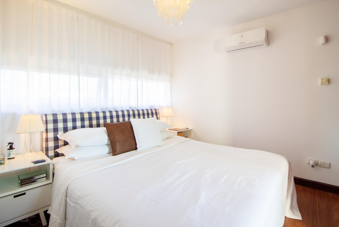 Tres dormitorios (dos en suite) ,Pisos de Lapacho en los dormitorios , piso monolítico artesanal en living, comedor, cocina . Equipos de aire acondicionado split en los dormitorios