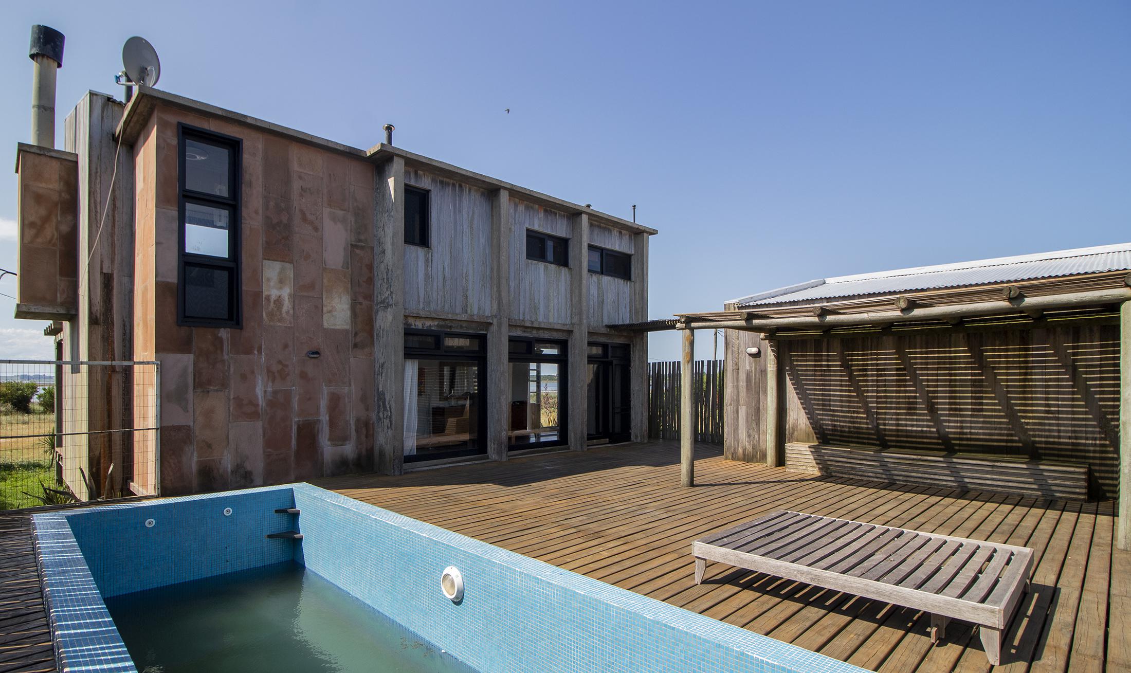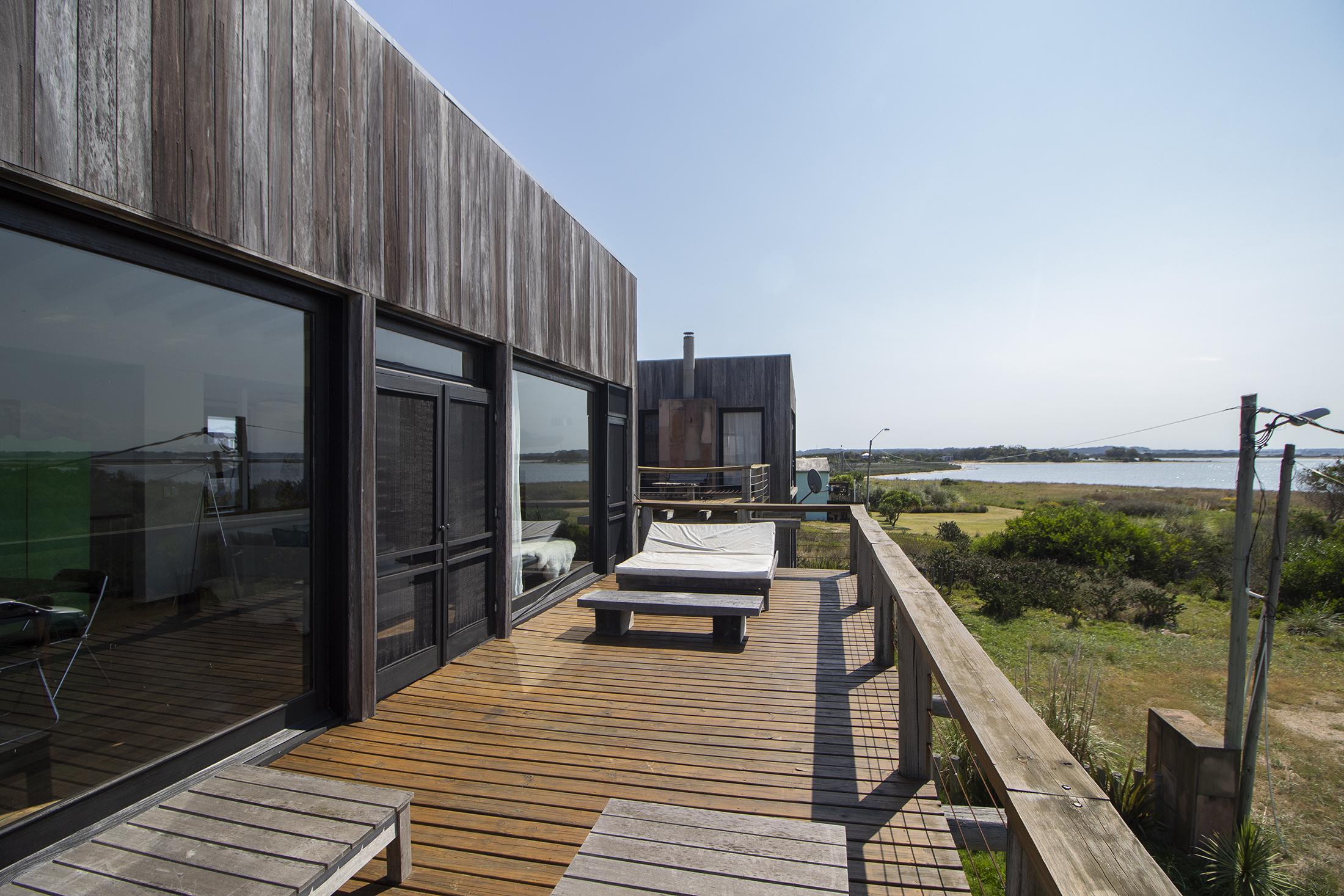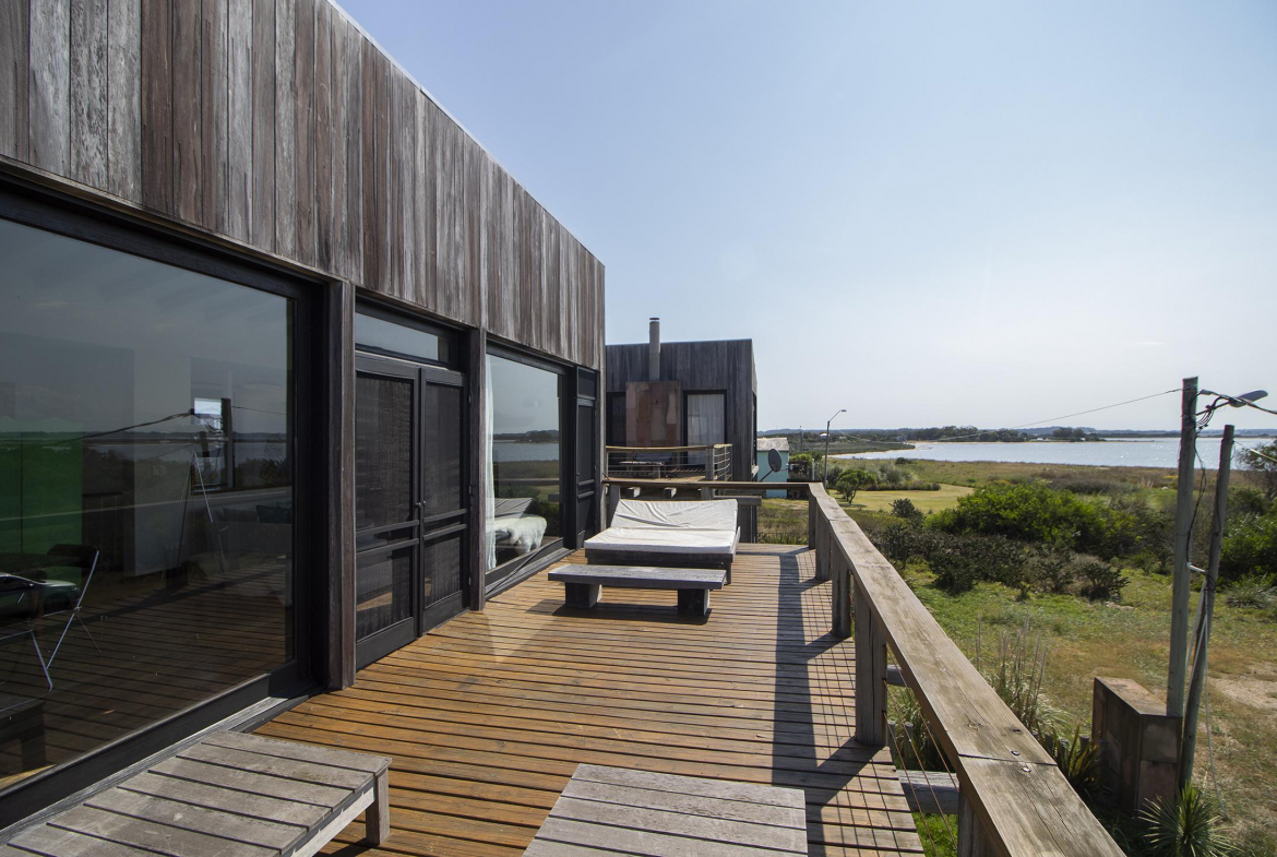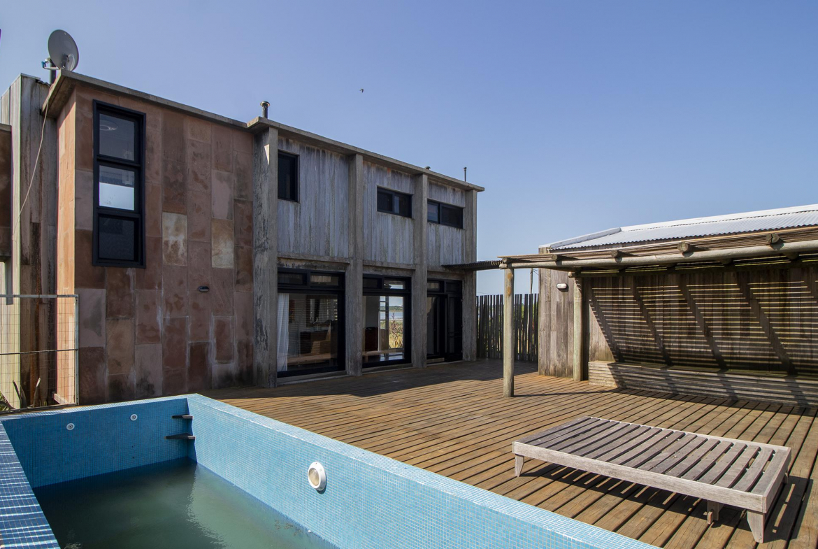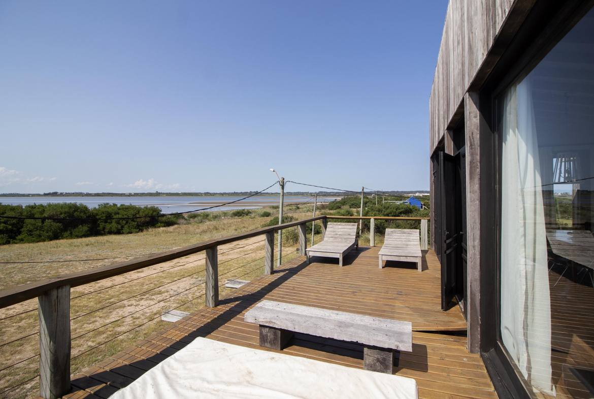 Propiedad en Santa Monica sobre laguna José Ignacio, en un área de 470 m2 , se encuentra emplazada esta construcción en lapacho. Consta de 3 dormitorios equipados con aire (dos semi suite en el block principal y una master independiente en suite), living comedor cocina integrados en planta alta, amplio deck con vista a la laguna, toilette, pileta. Dormitorio de servicio con baño y lavadero.