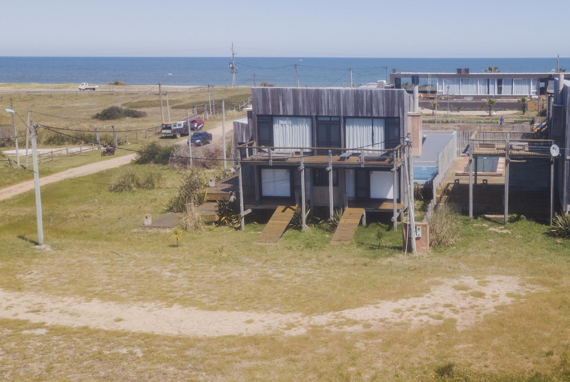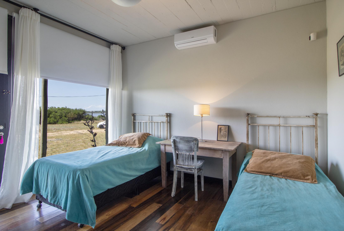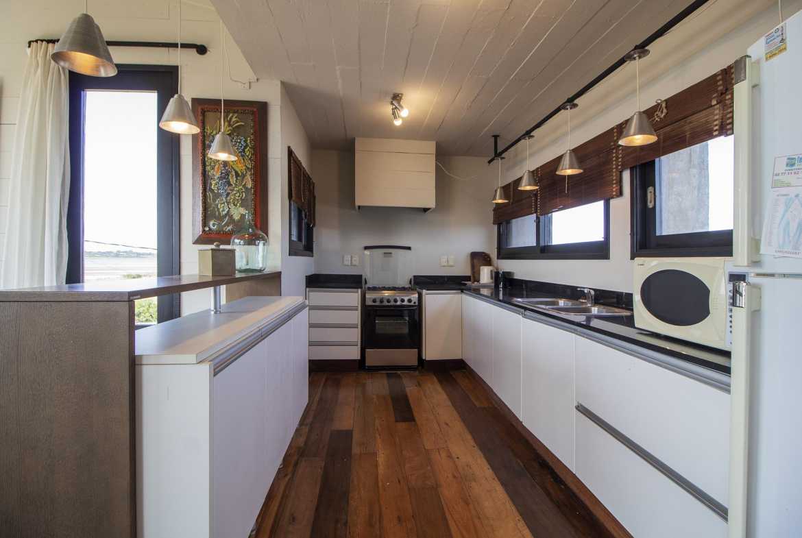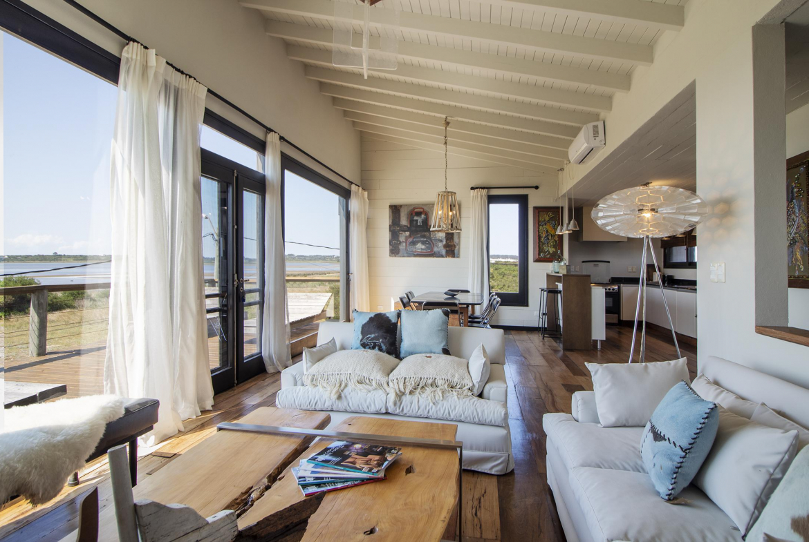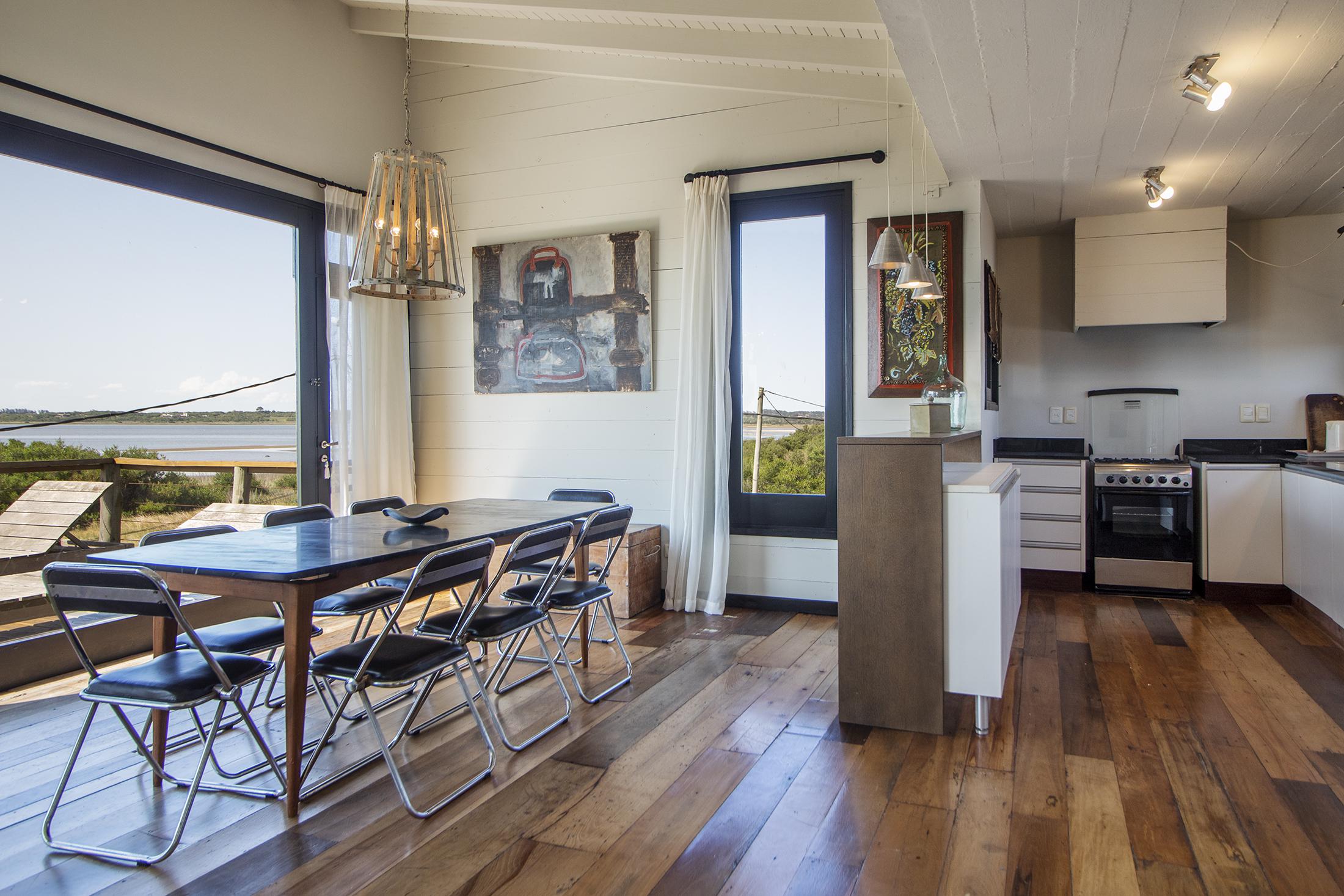 Propiedad en Santa Monica sobre laguna José Ignacio, en un área de 470 m2 , se encuentra emplazada esta construcción en lapacho. Consta de 3 dormitorios equipados con aire (dos semi suite en el block principal y una master independiente en suite), living comedor cocina integrados en planta alta, amplio deck con vista a la laguna, toilette, pileta. Dormitorio de servicio con baño y lavadero.