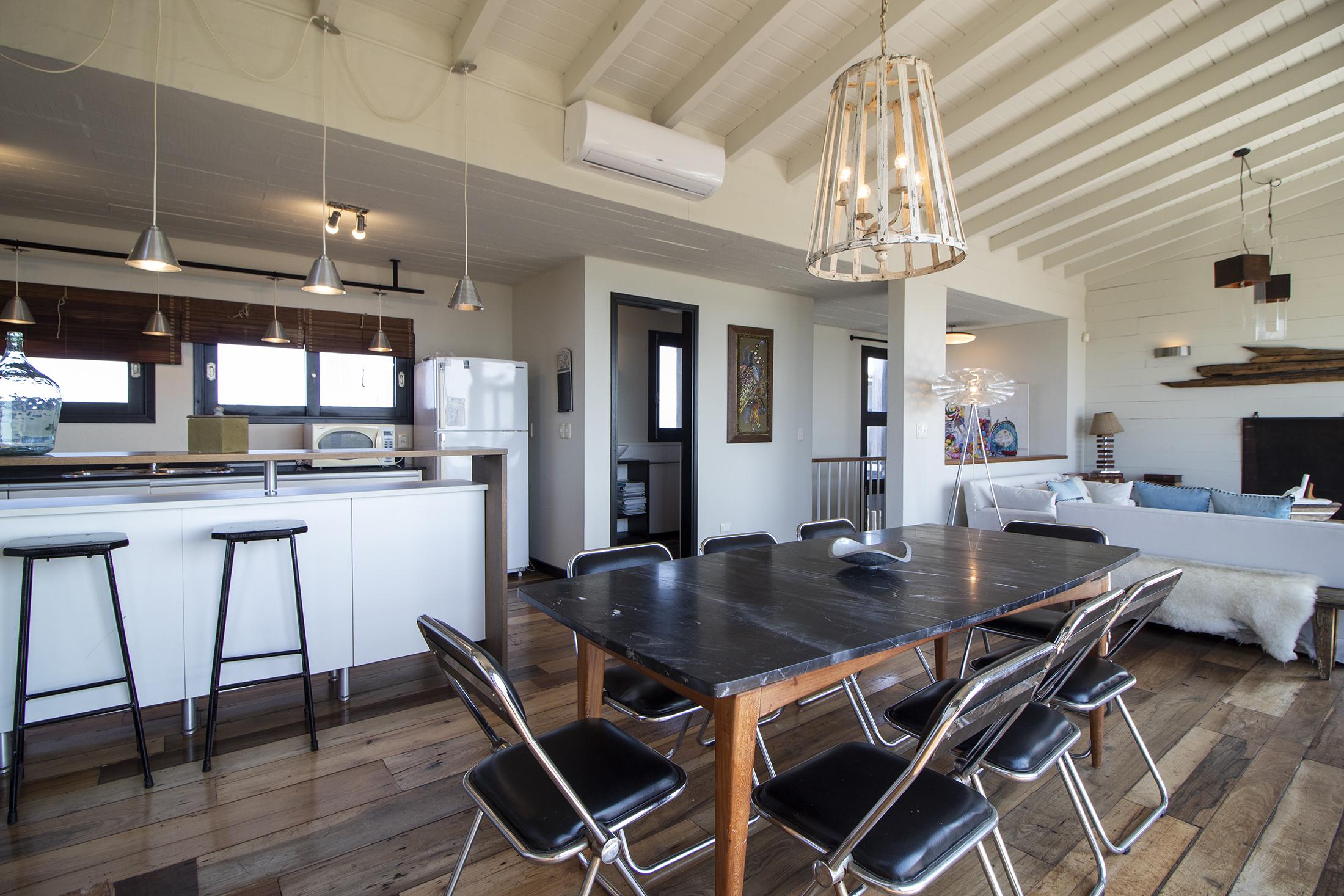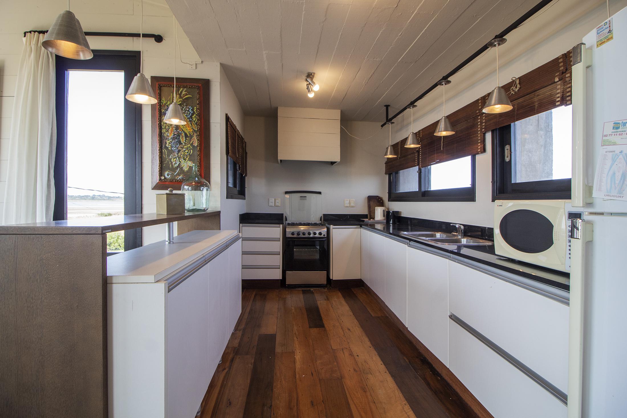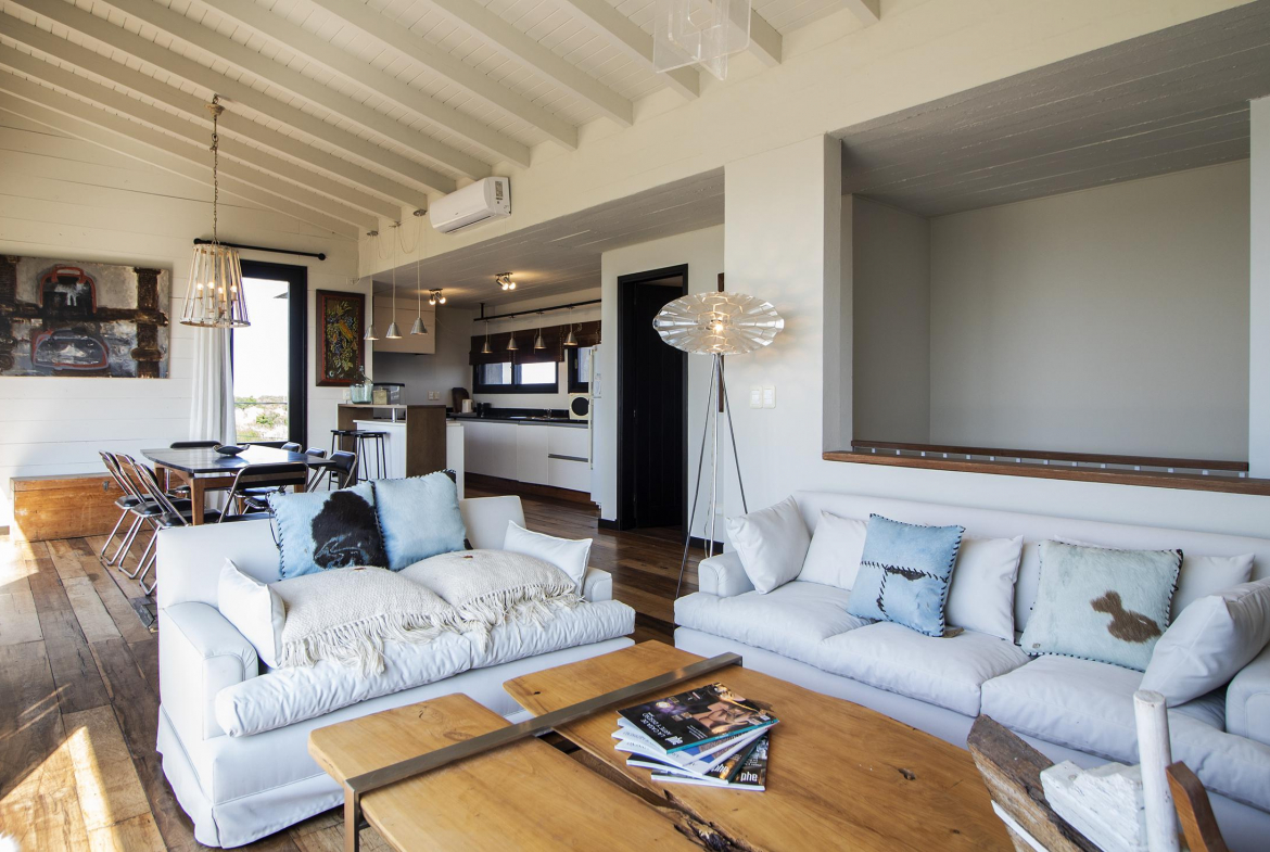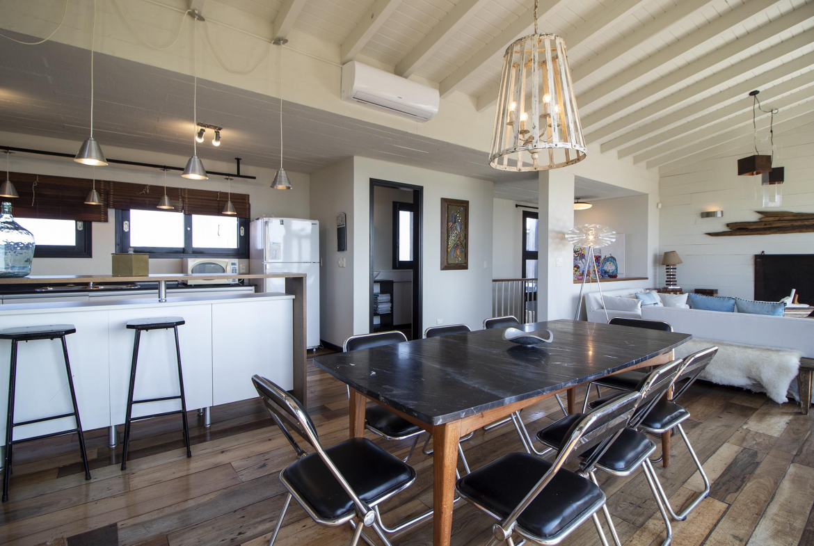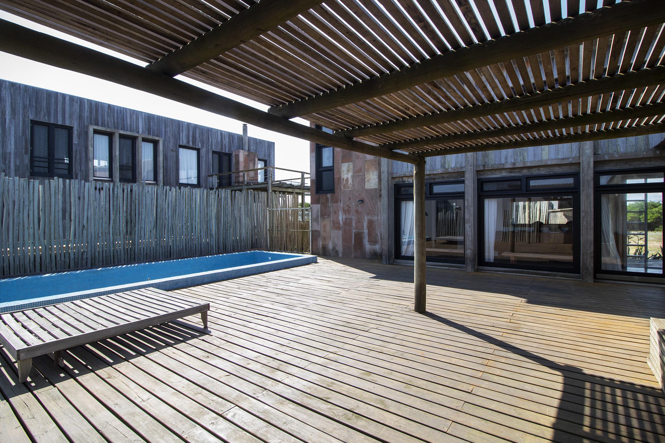 Propiedad en Santa Monica sobre laguna José Ignacio, en un área de 470 m2 , se encuentra emplazada esta construcción en lapacho. Consta de 3 dormitorios equipados con aire (dos semi suite en el block principal y una master independiente en suite), living comedor cocina integrados en planta alta, amplio deck con vista a la laguna, toilette, pileta. Dormitorio de servicio con baño y lavadero.