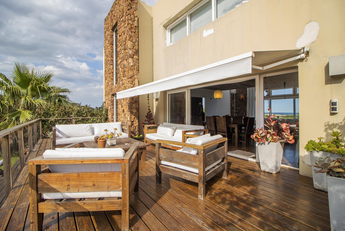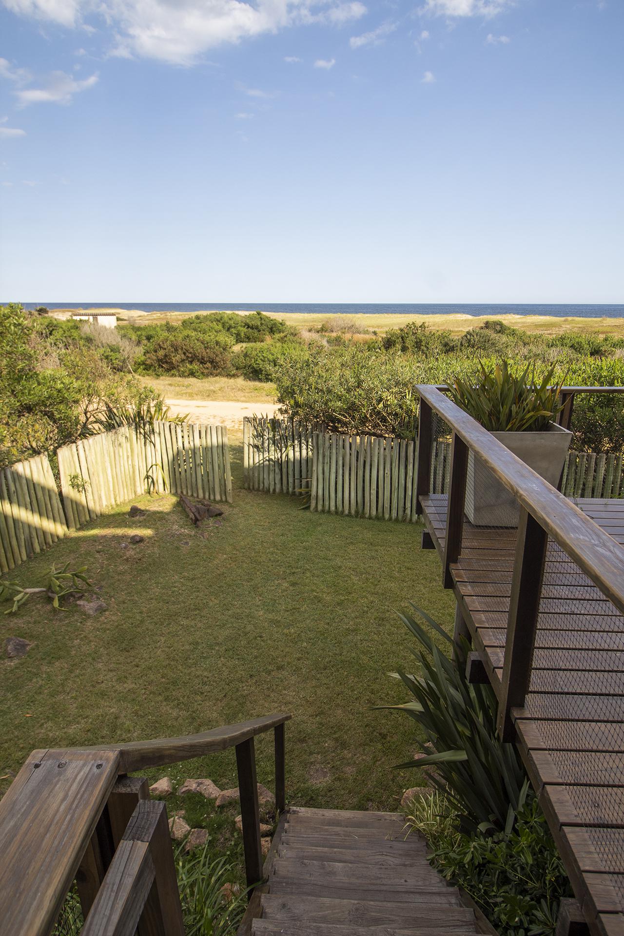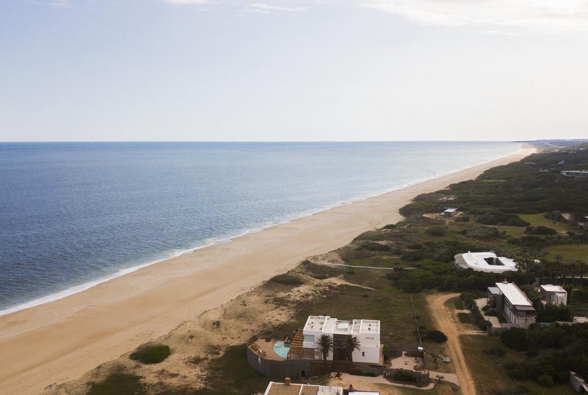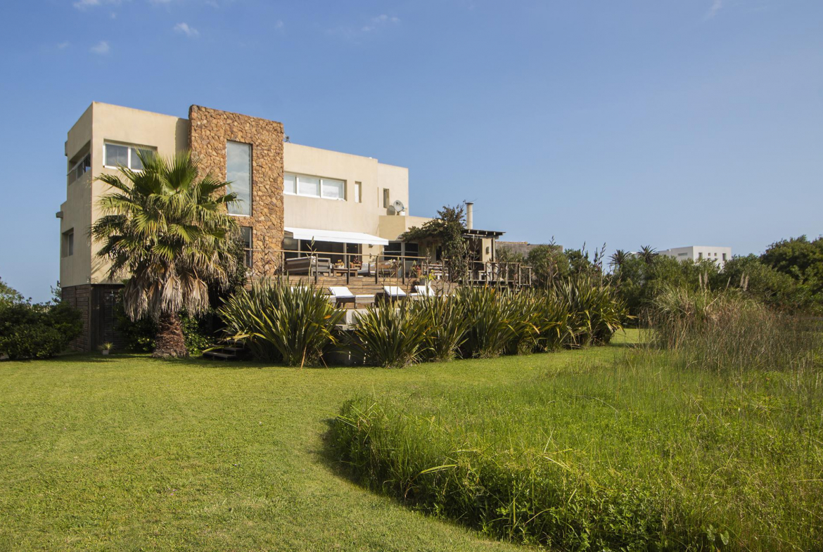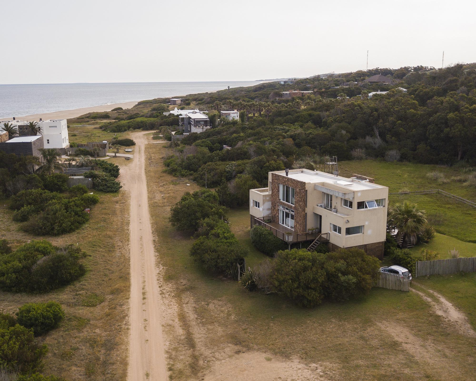 En la planta baja cuenta con Living,comedor con estufa a leña, ventanales de doble altura con vista al mar y al bosque, cocina moderna (semi integrada con isla, completamente equipada), deck al bosque con parrillero y piscina, deck al mar, un baño completo, un dormitorio y otro dormitorio en suite, toda la planta con vista al mar y al pueblo José Ignacio.