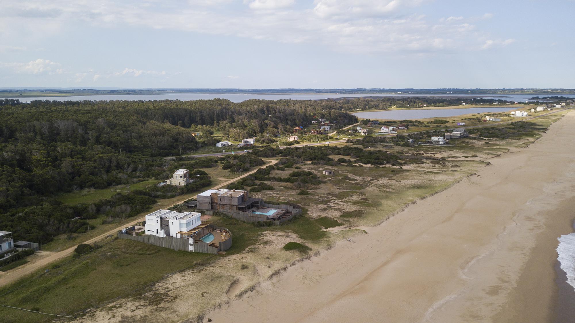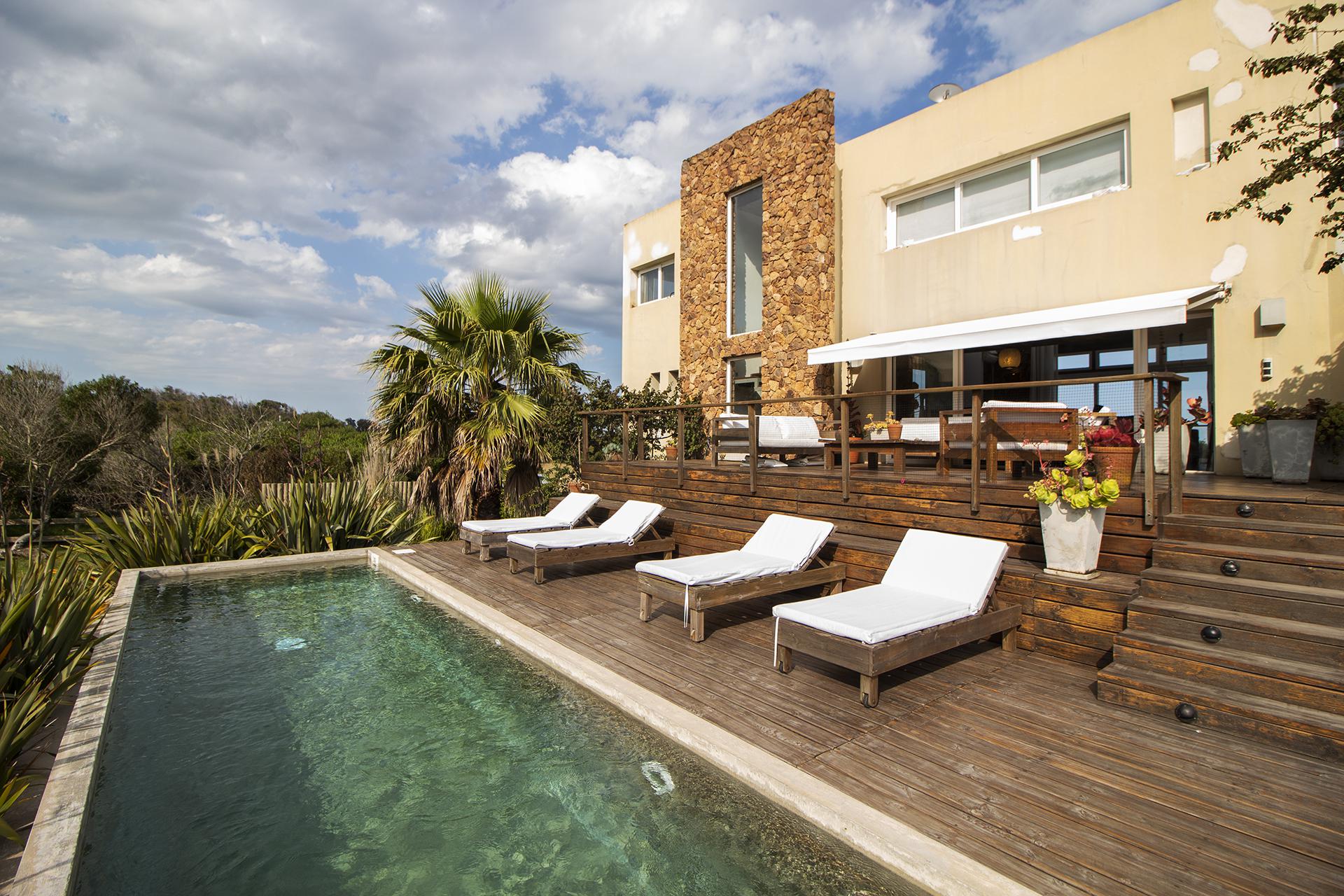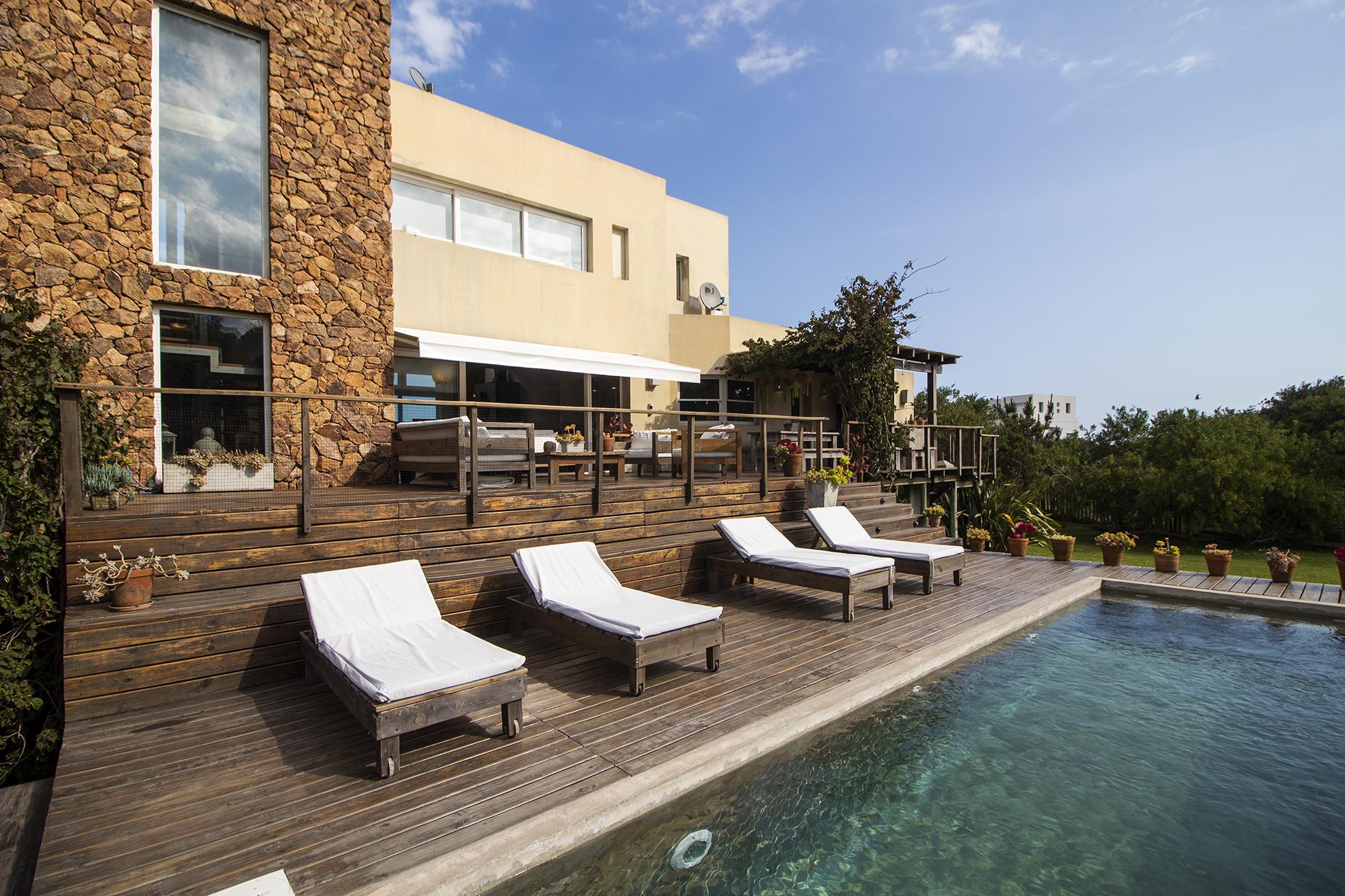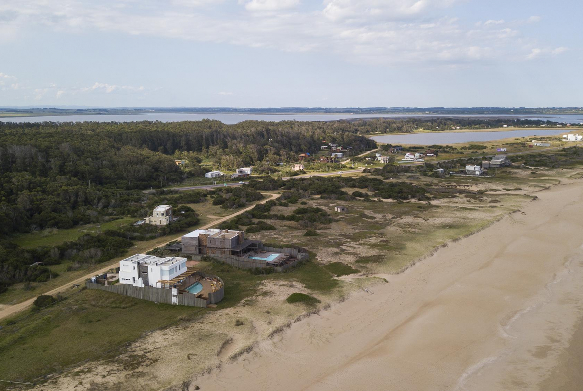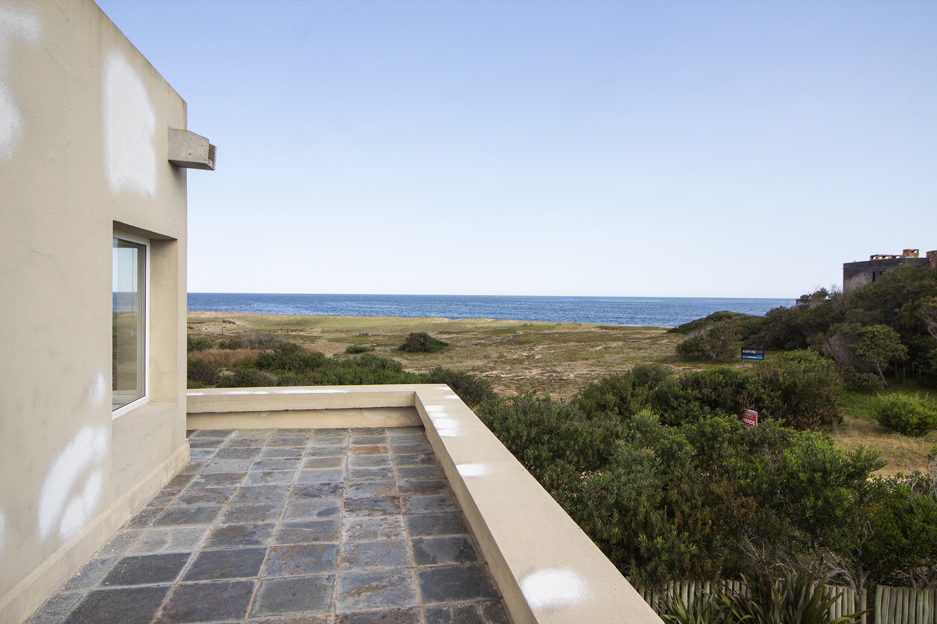 En la planta baja cuenta con Living,comedor con estufa a leña, ventanales de doble altura con vista al mar y al bosque, cocina moderna (semi integrada con isla, completamente equipada), deck al bosque con parrillero y piscina, deck al mar, un baño completo, un dormitorio y otro dormitorio en suite, toda la planta con vista al mar y al pueblo José Ignacio.