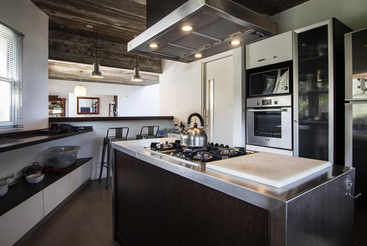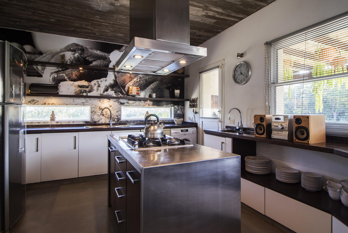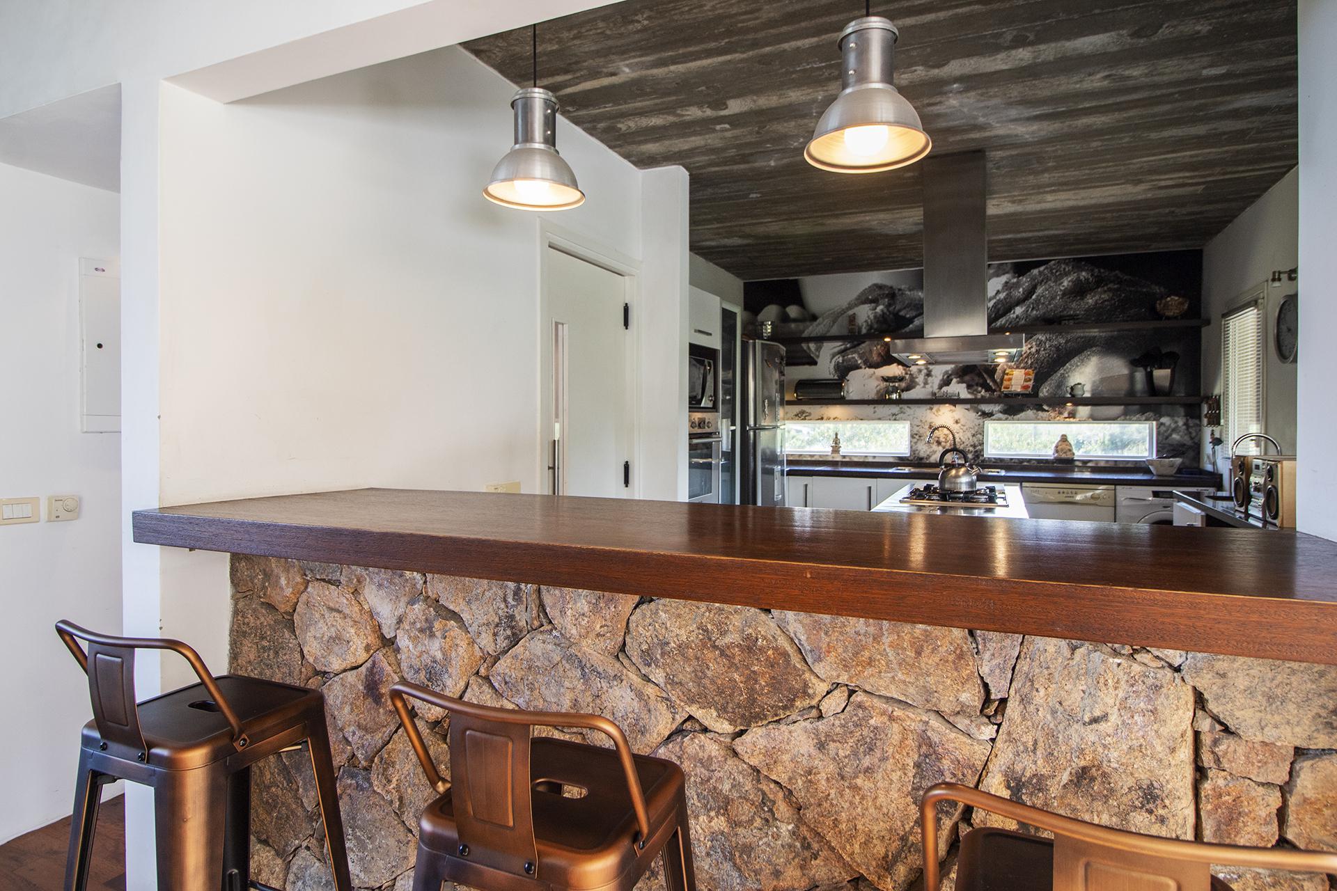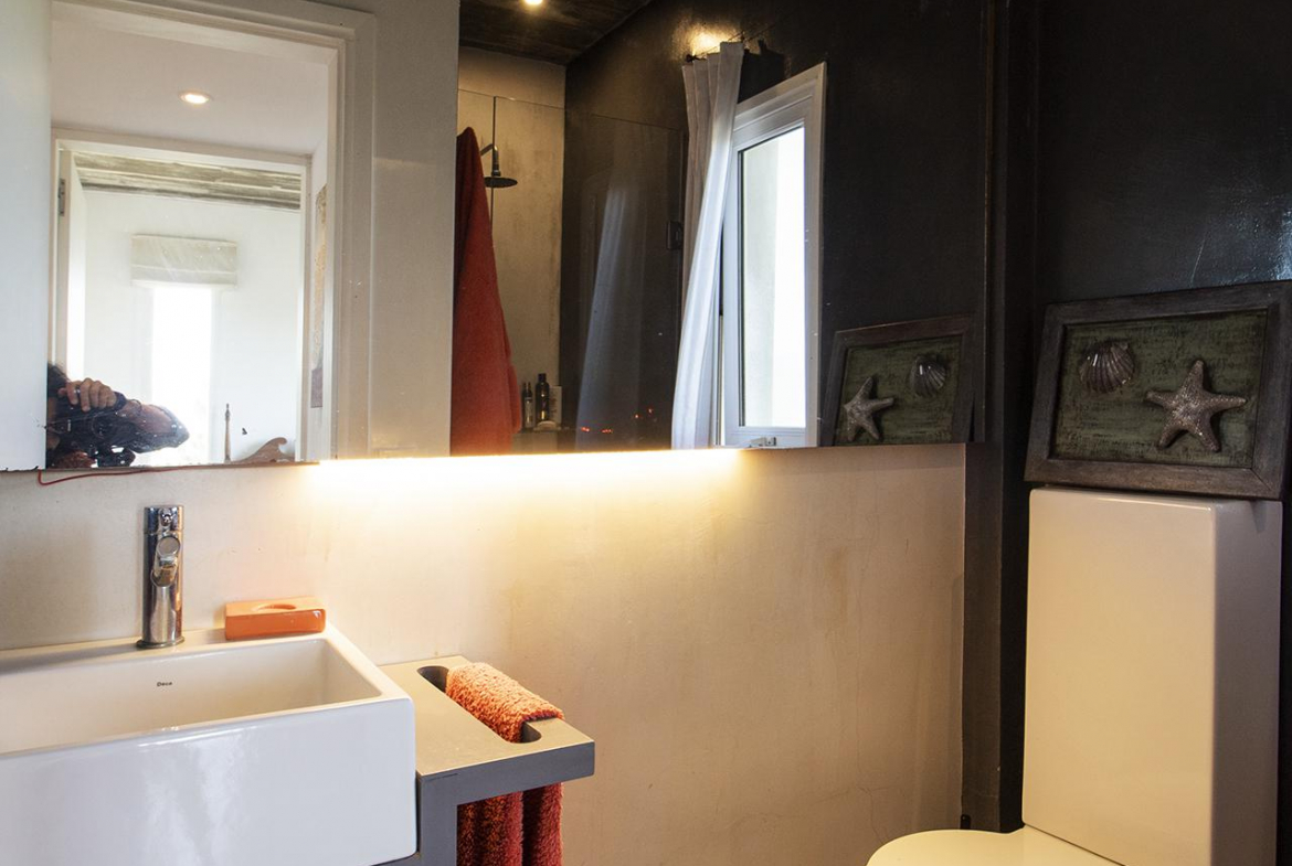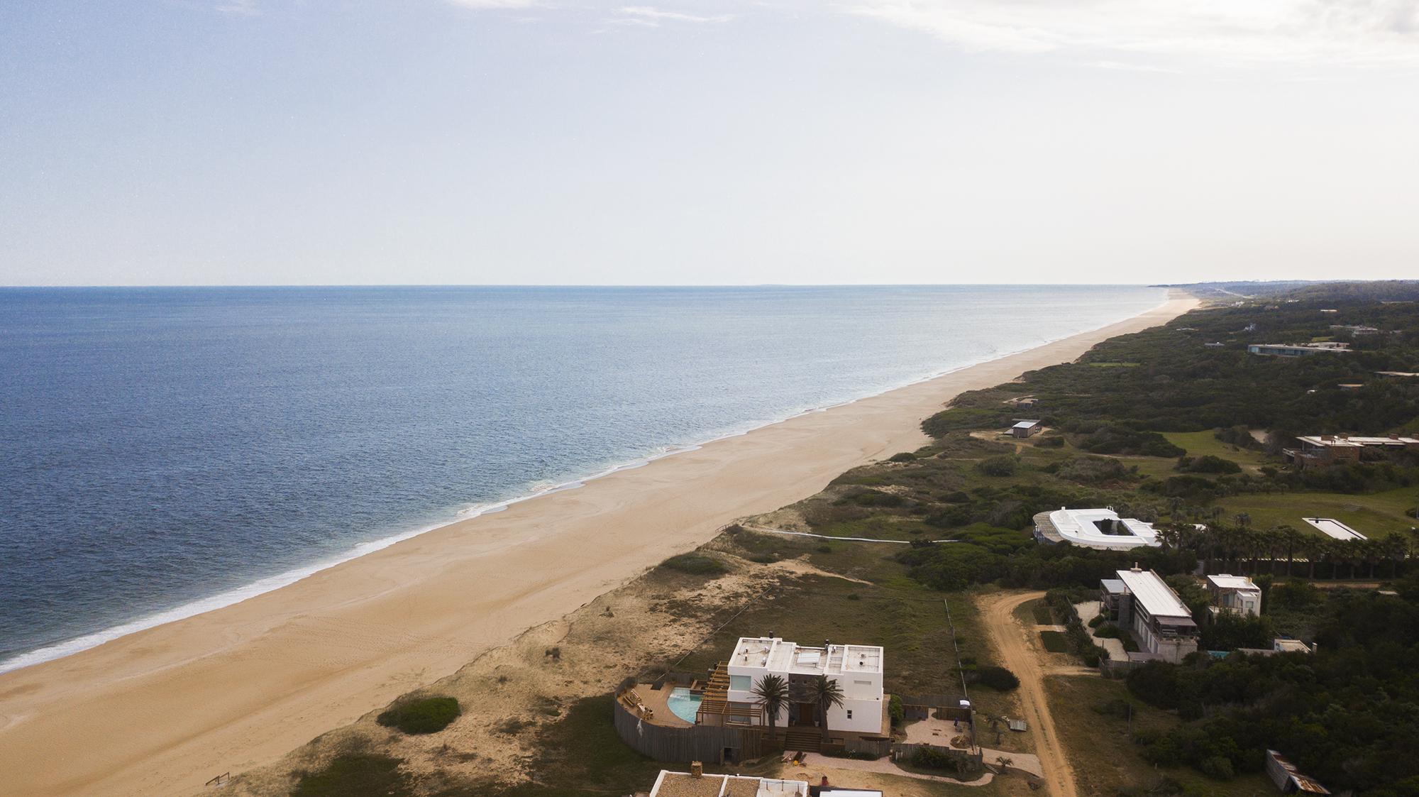 En la planta baja cuenta con Living,comedor con estufa a leña, ventanales de doble altura con vista al mar y al bosque, cocina moderna (semi integrada con isla, completamente equipada), deck al bosque con parrillero y piscina, deck al mar, un baño completo, un dormitorio y otro dormitorio en suite, toda la planta con vista al mar y al pueblo José Ignacio.