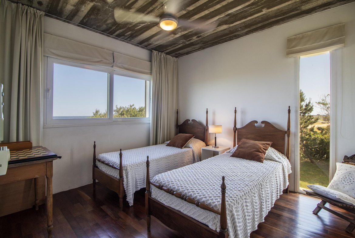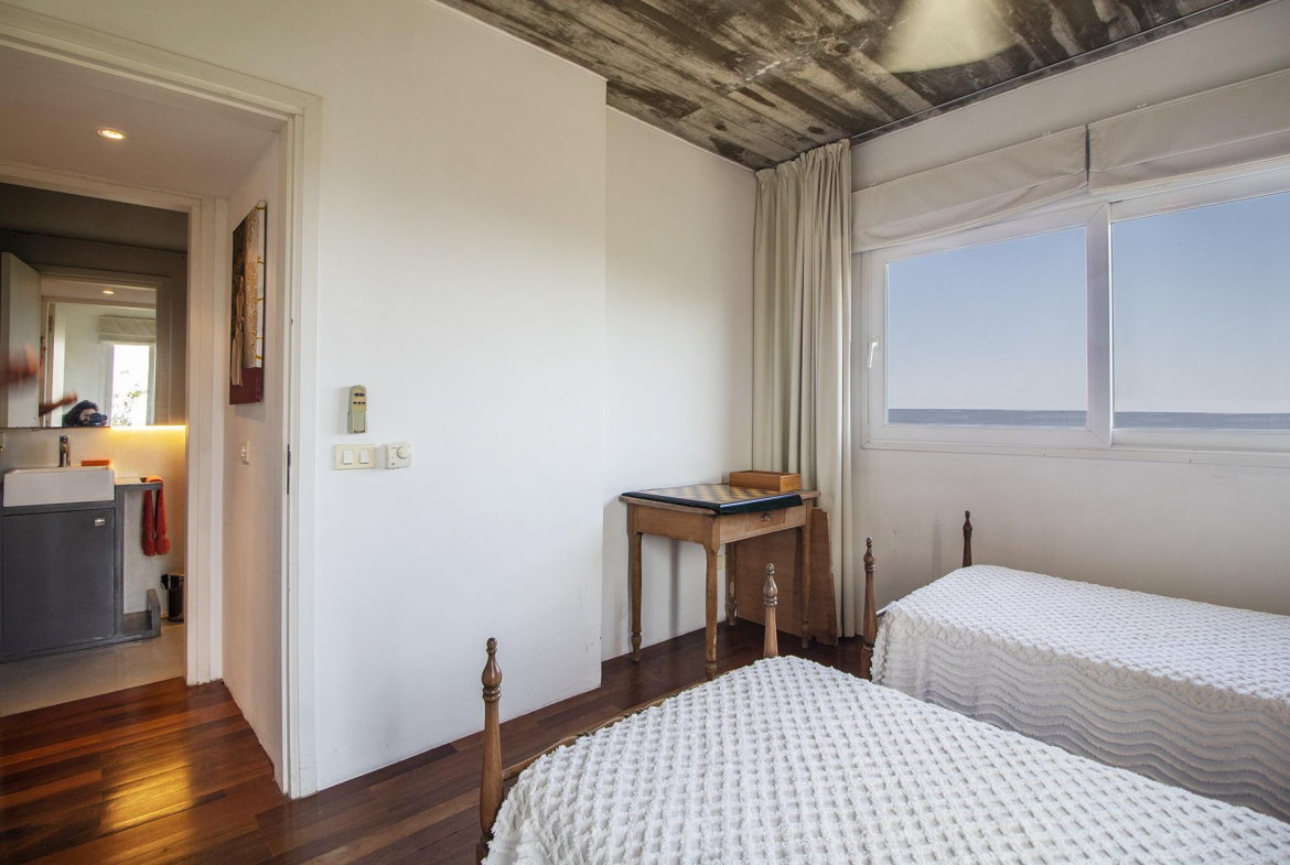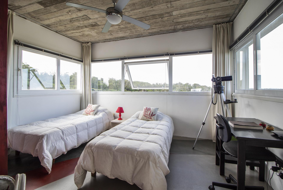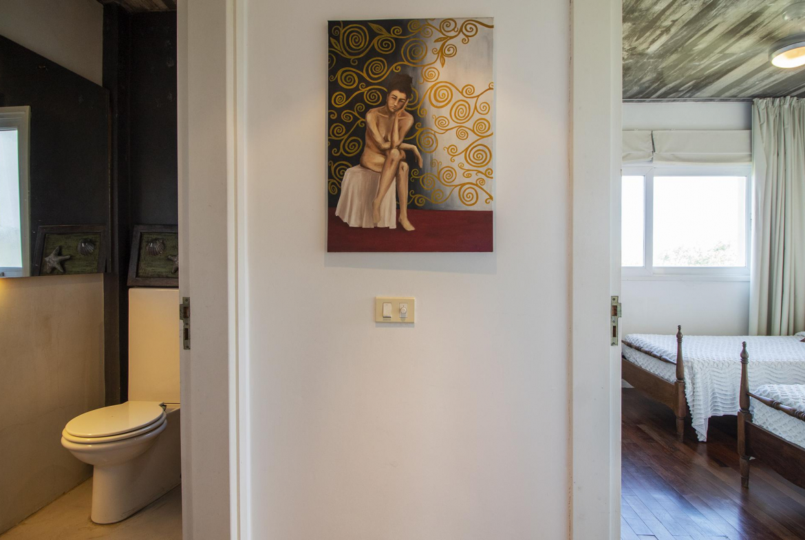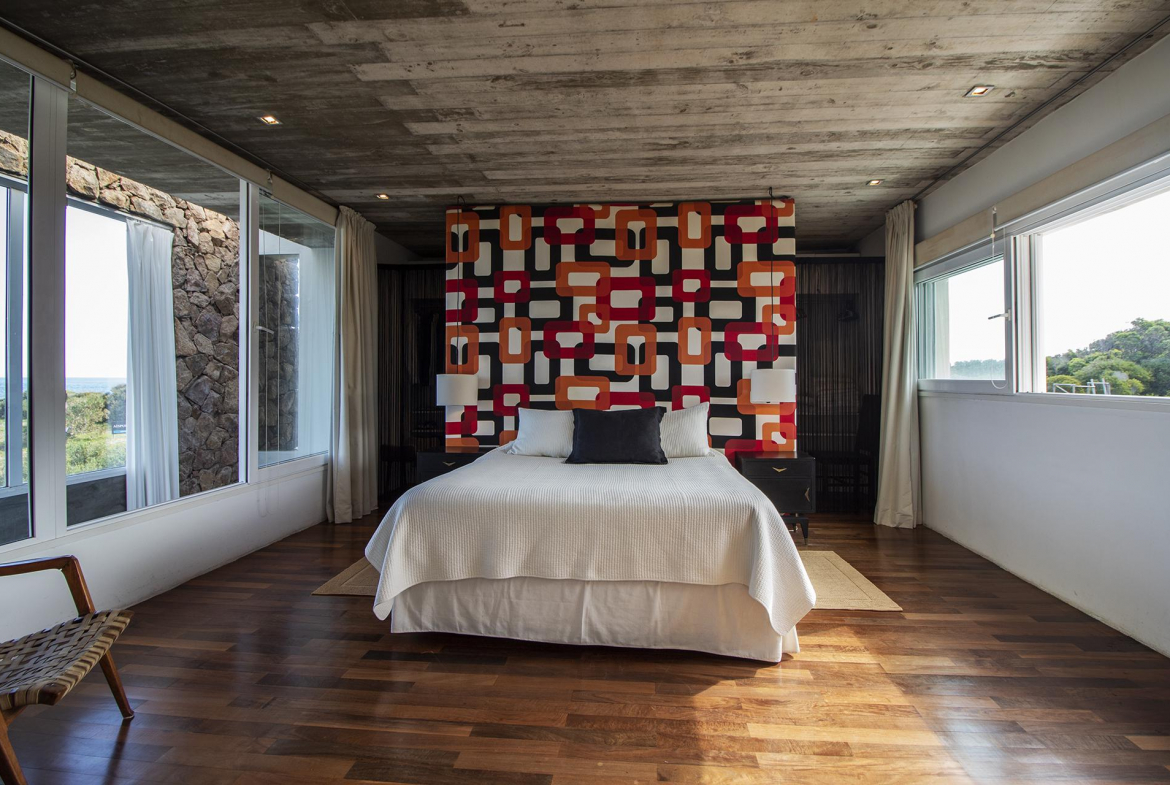 En la planta alta se encuentra un escritorio/dormitorio con vista de 300 grados, hall con salida al balcon y master suite con vestidor, baño con doble bacha, jacuzzi doble y terraza privada, todo con increíble vista al mar y al bosque.
