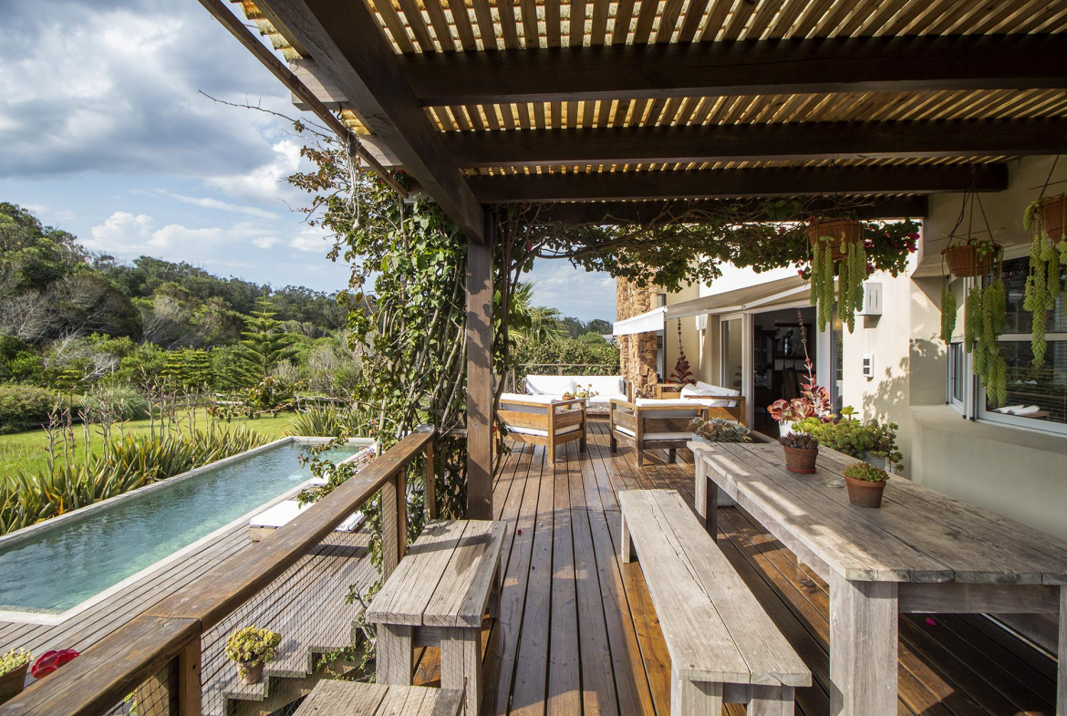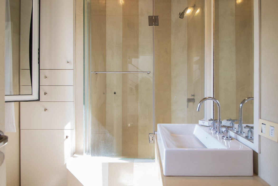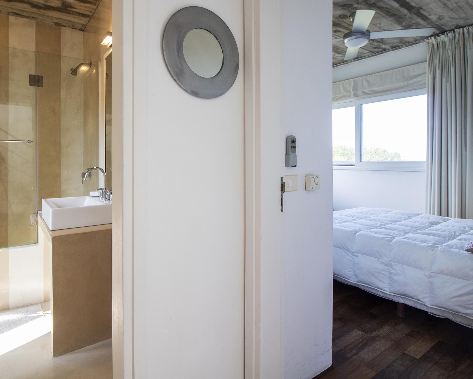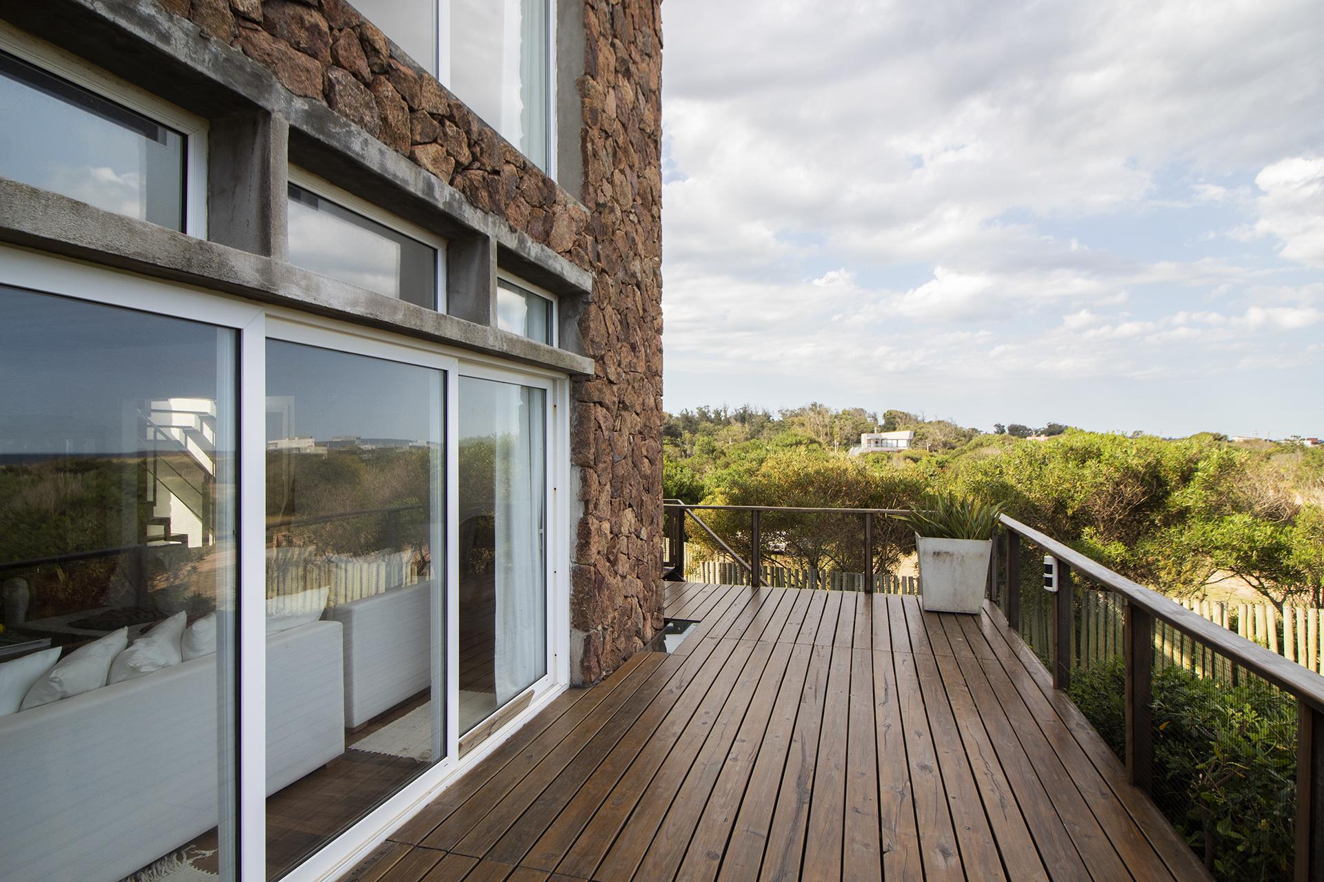 En la planta alta se encuentra un escritorio/dormitorio con vista de 300 grados, hall con salida al balcon y master suite con vestidor, baño con doble bacha, jacuzzi doble y terraza privada, todo con increíble vista al mar y al bosque.