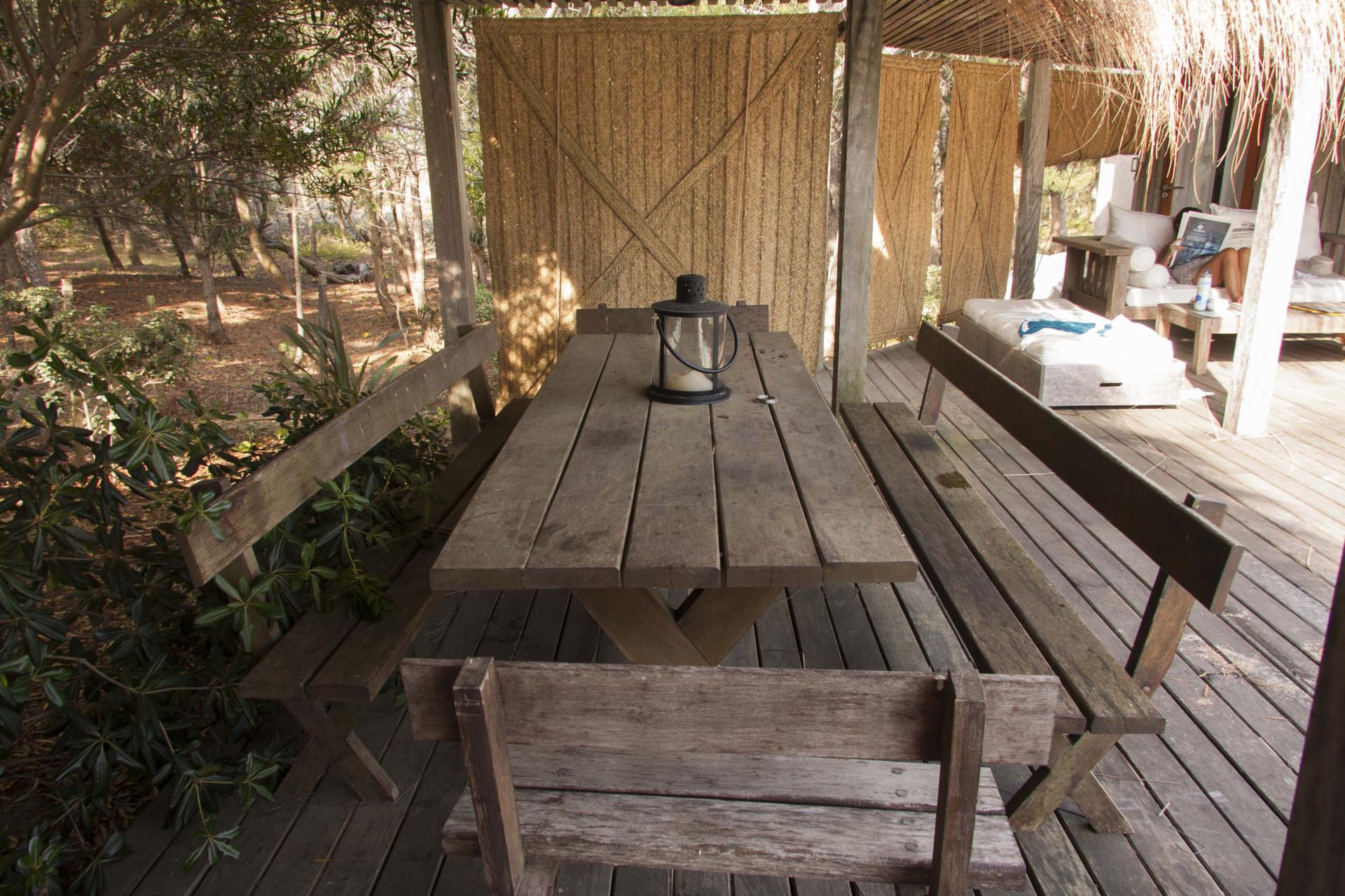 Los ambientes se comunican por el exterior mediante galerías y decks. Por otro lado están los restantes dos dormitorios de similares características que comparten un baño.