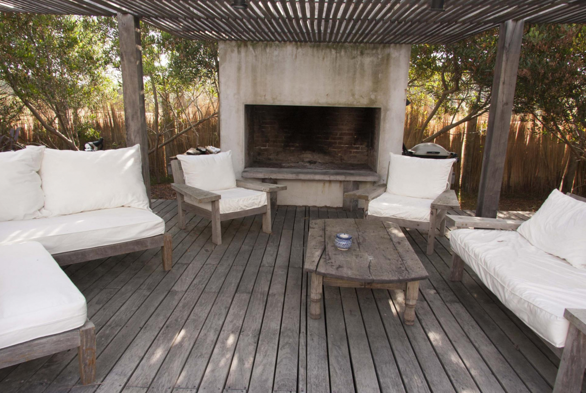 Esta muy cómoda casa, se destaca por su diseño y particular distribución de los ambientes. Desarrollada en tres principales bloques, por un lado se encuentra un amplio y cómodo living con estufa a leña y aire acondicionado. Mediante una escalera interna nos comunica a la suite principal, que mira panorámicamente al mar y al pueblo.