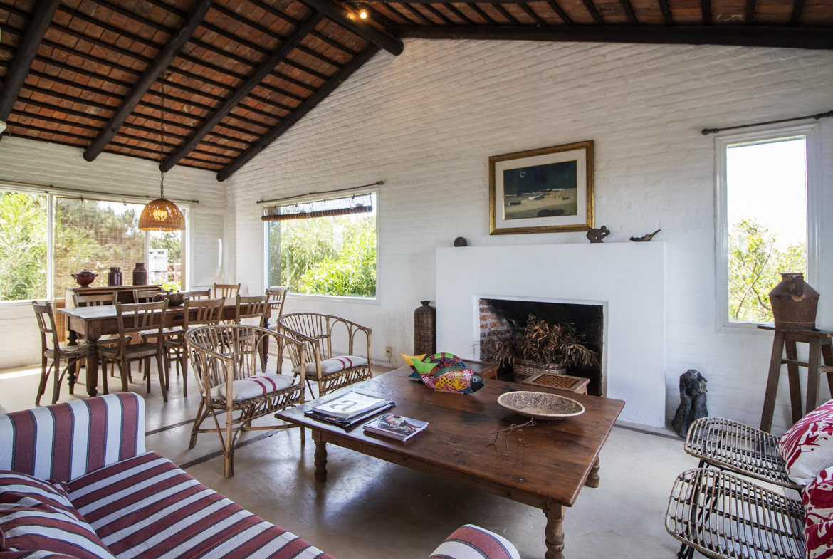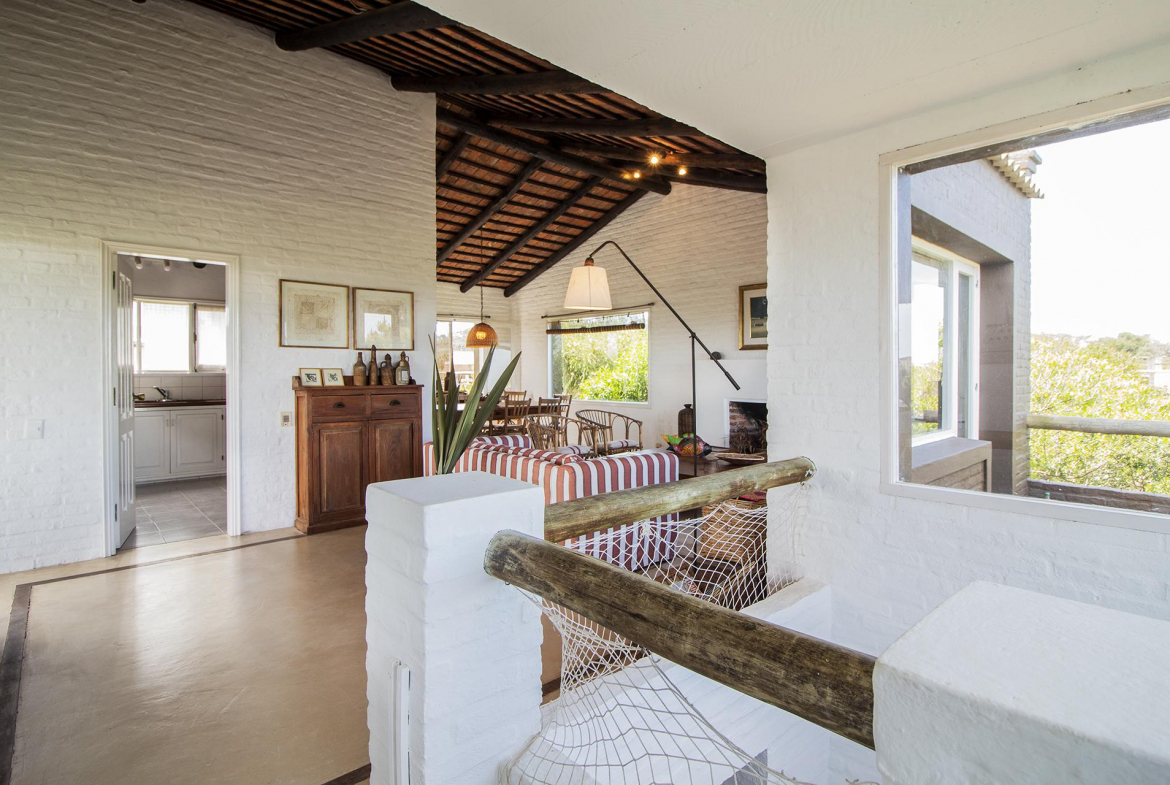 Ubicada en un entorno paradisíaco, primera línea sobre ruta 10, esta propiedad emplazada en un amplio terreno, se distribuye en dos plantas, obteniendo vista al mar desde la planta alta.