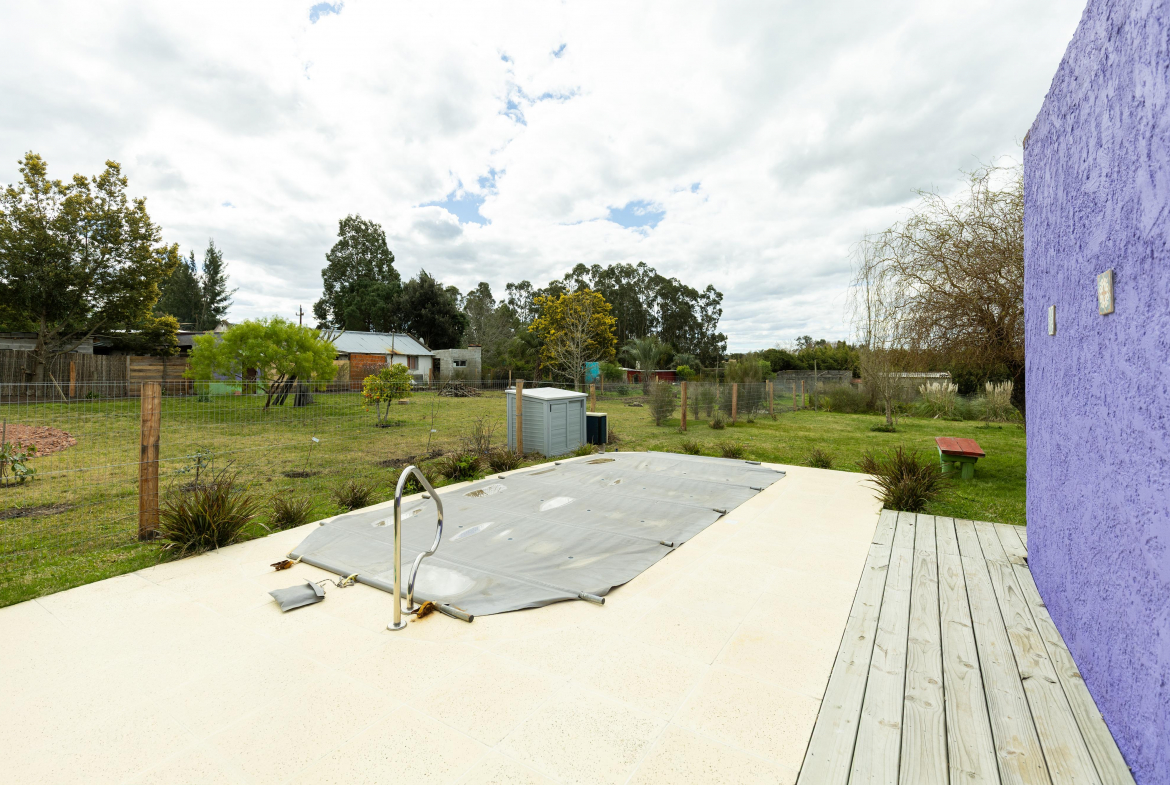 Características principales:3 dormitorios: Incluye una amplia suite principal con baño privado, diseñada para ofrecer privacidad y comodidad, junto a dos dormitorios adicionales con espacios bien distribuidos.2 baños: Modernos y funcionales, con acabados de calidad. Piscina climatizada con agua salinizada: Perfecta para disfrutar durante todo el año, con un sistema eco-amigable que garantiza un mantenimiento saludable y sostenible.Sistema de recolección de agua de lluvia: Equipada con dos tanques de 500 litros, optimizando el uso de recursos naturales.Terreno ajardinado de 1250 m²: Un oasis verde con una variedad de árboles frutales, incluyendo ciruelo, níspero, mandarina, limón, damasco, durazno, manzana, pera, membrillo, olivos, arazá amarillo y rojo, e higuera, ideales para disfrutar de productos frescos y un entorno natural.