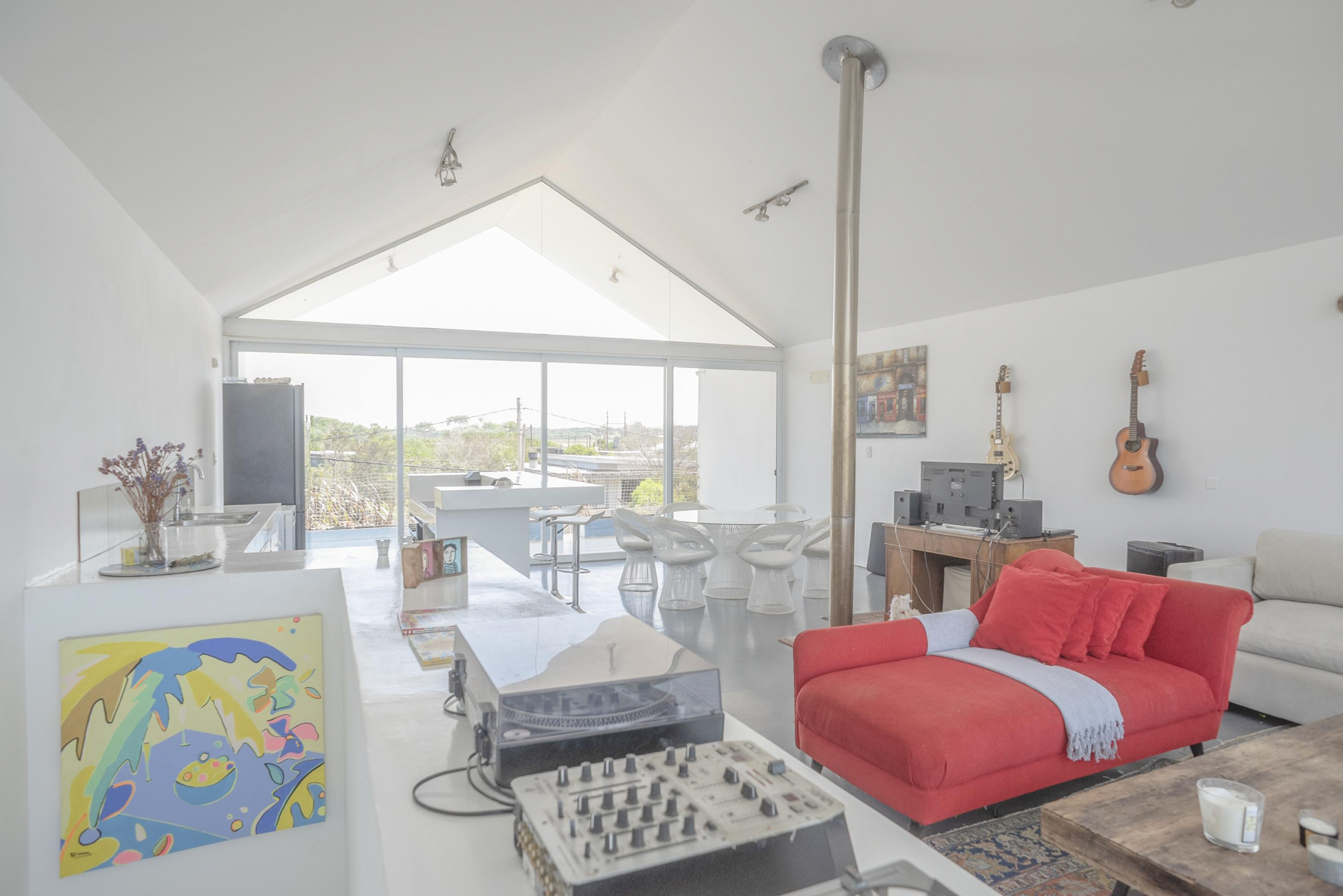 En planta alta, en un solo ambiente, living comedor y cocina totalmente integrado, con decks hacia el mar y hacia la zona de chacras.
