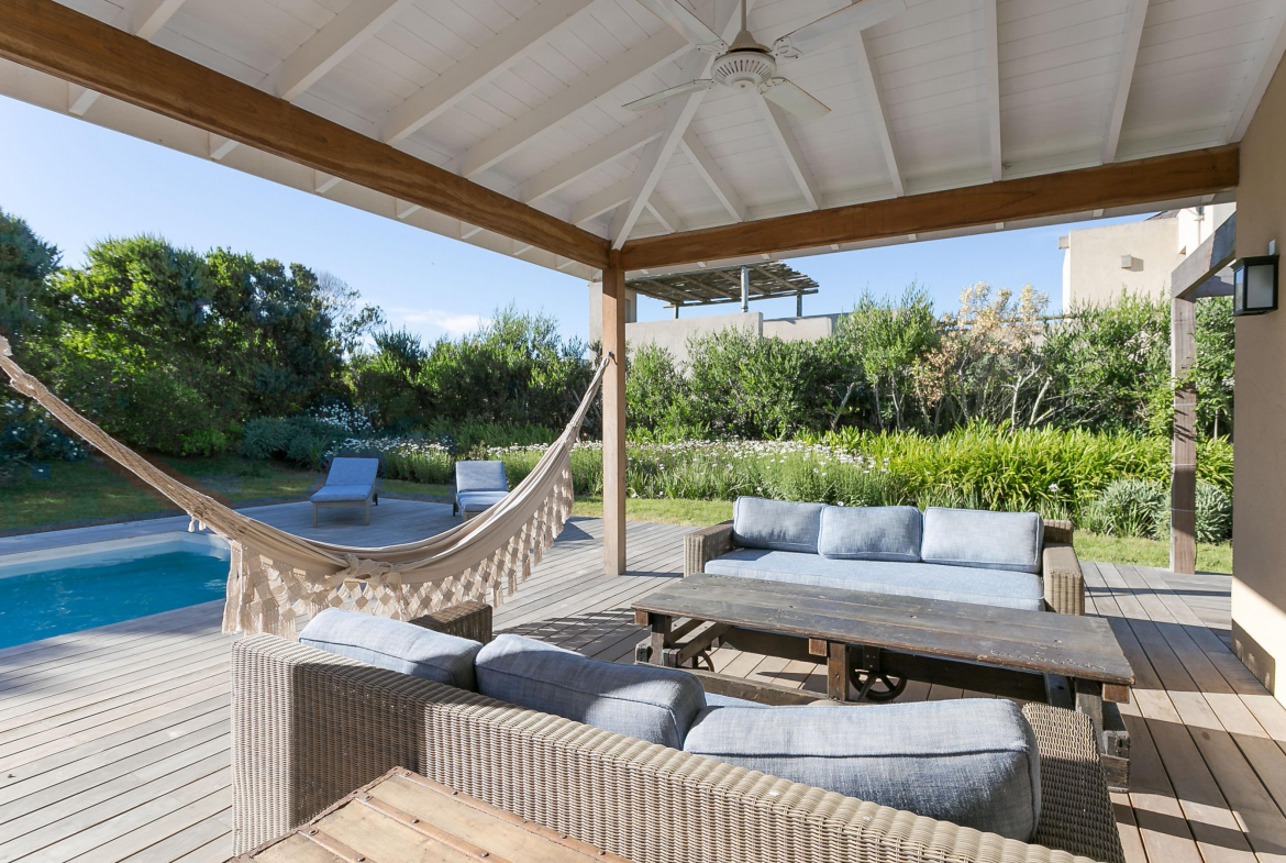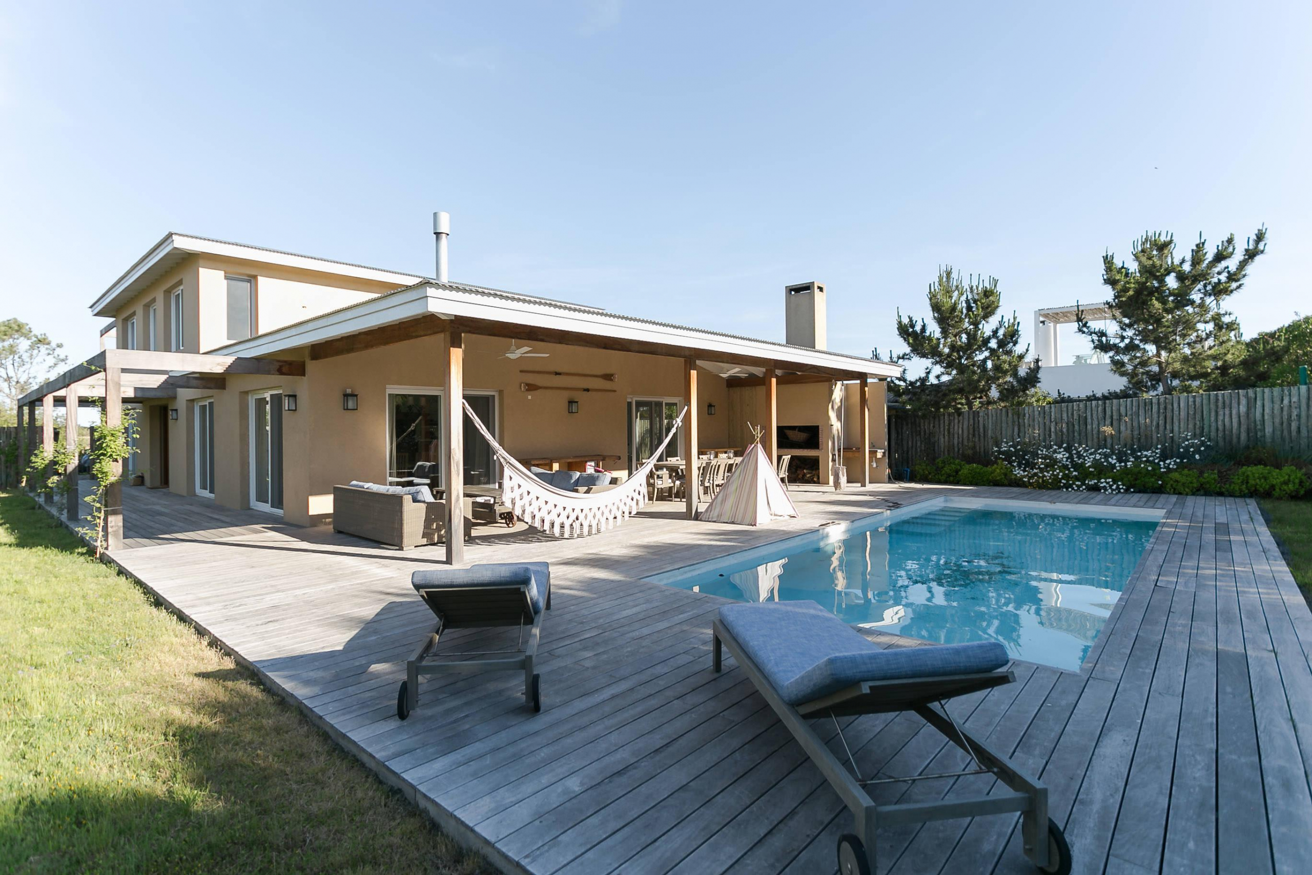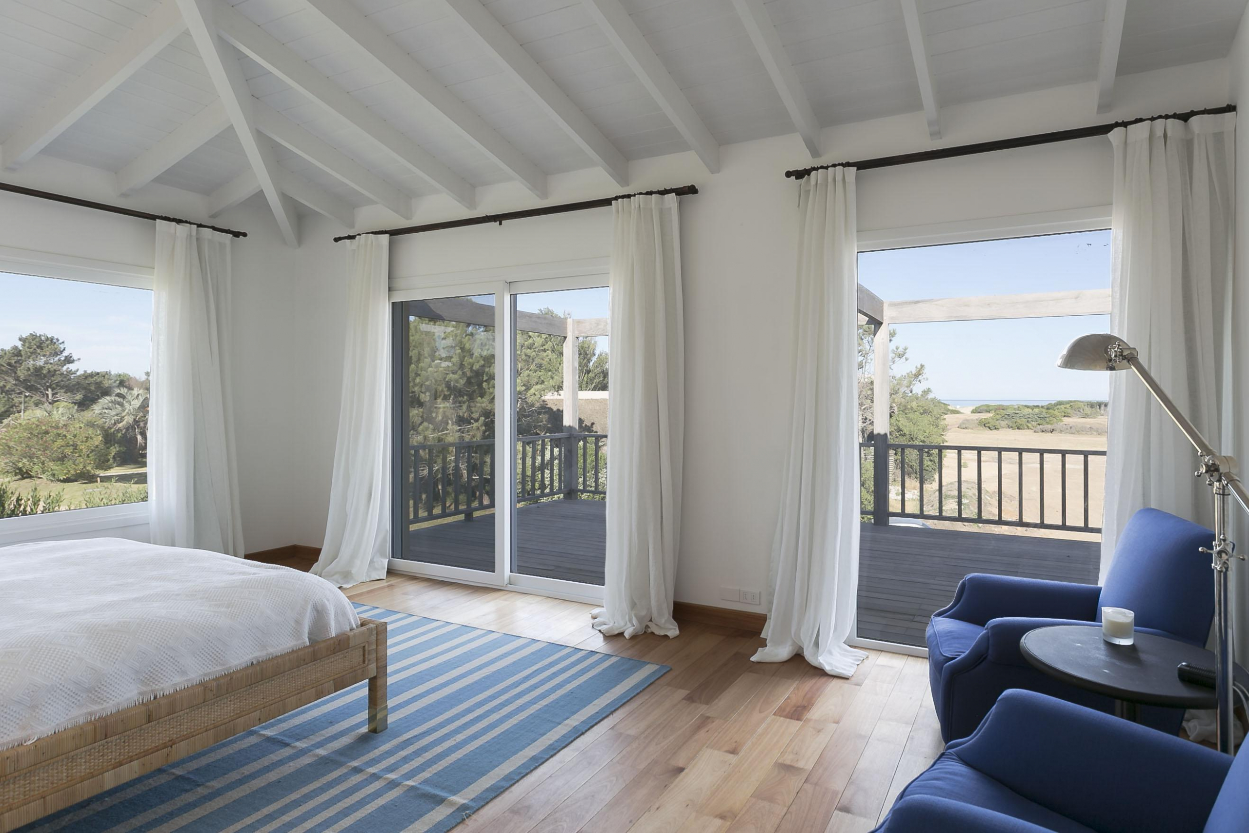 Casa desarrollada en dos plantas con mucha privacidad, espacios generosos y vista al mar. Se compone de 5 dormitorios (4+escritorio) 3 de ellos en suite.