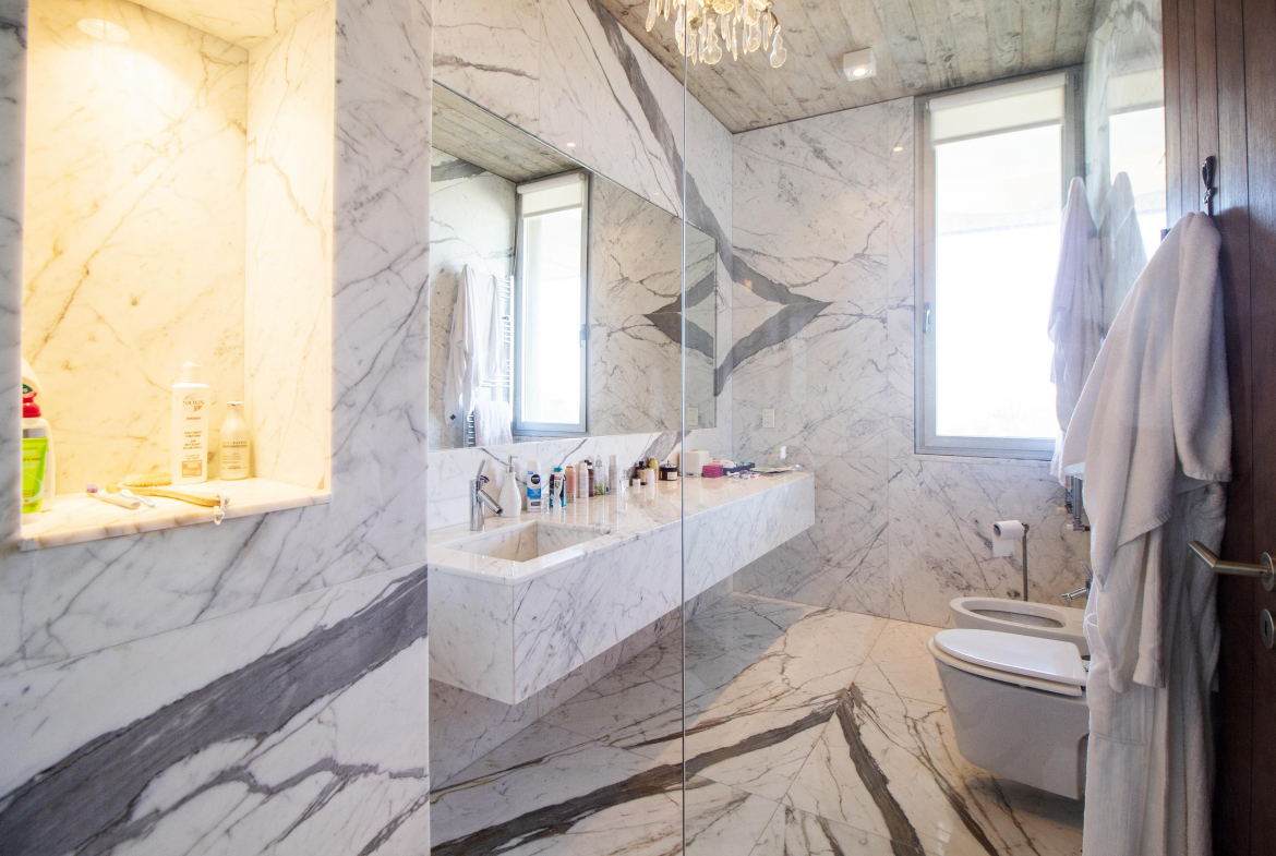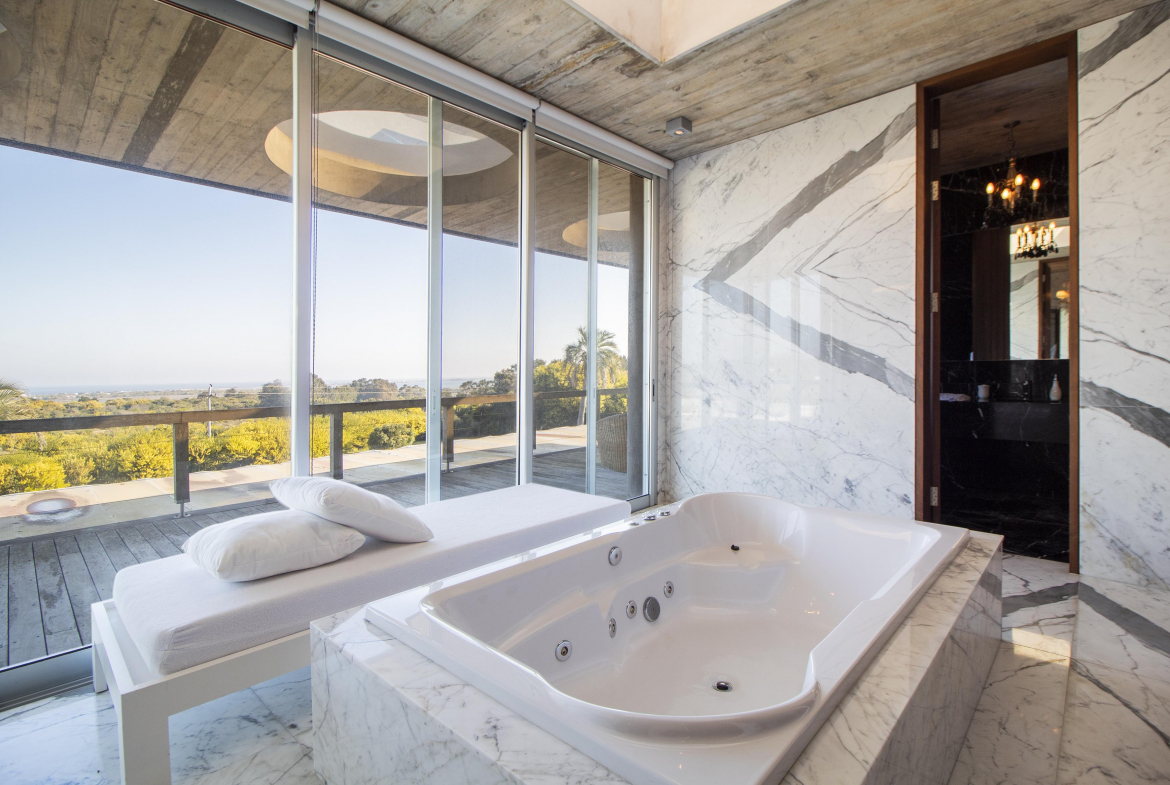 En planta baja cuenta con escritorio y playroom más 3 suites amplias con salida a deck y baño muy espacioso. Completa la casa una master suite en planta alta de gran tamaño, vestidor y baño con jacuzzi. La master suite posee terraza con una vista panoramica.