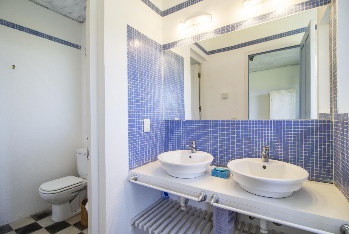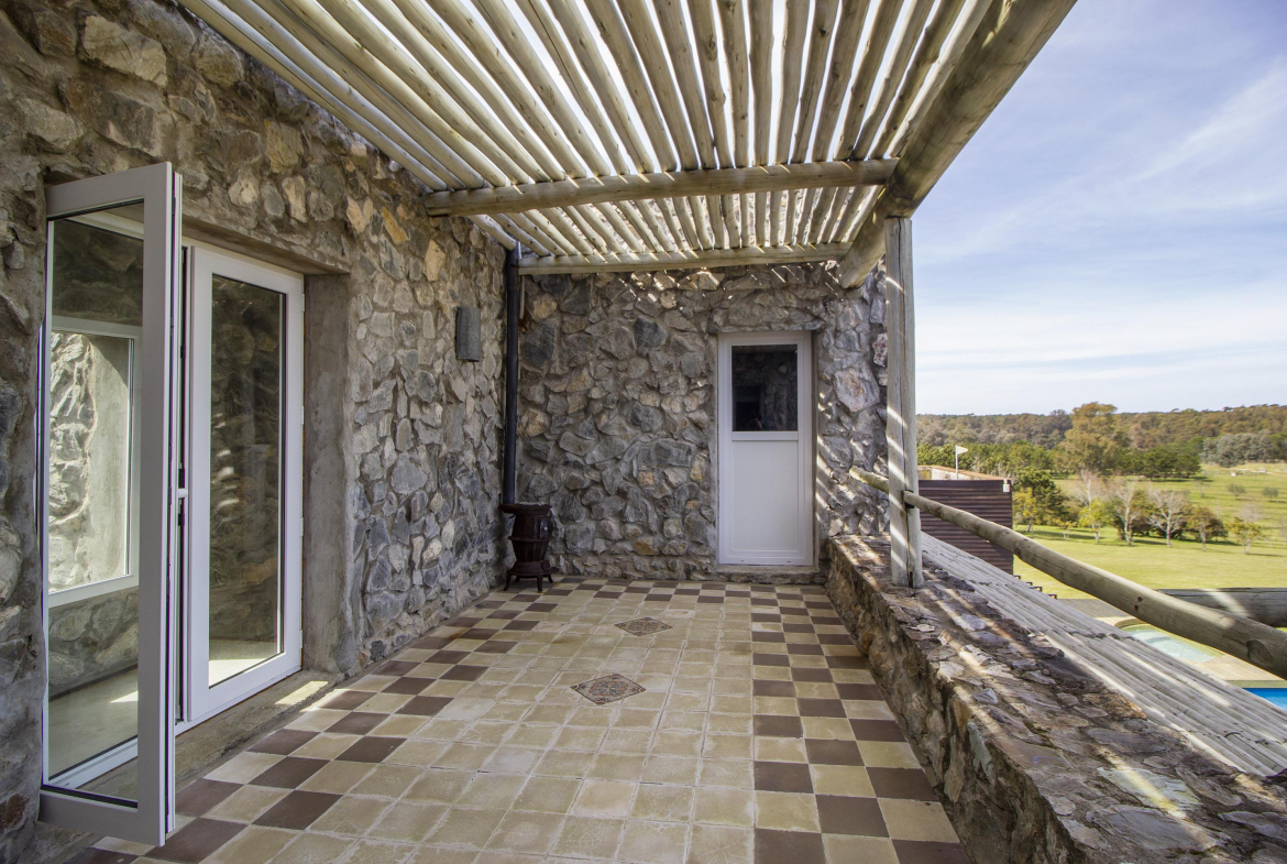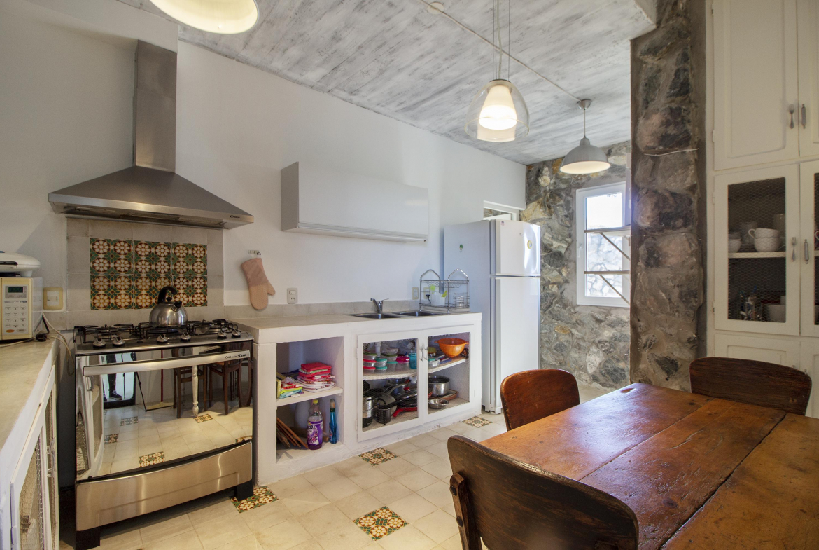 4 dormitorios en suite (dos en planta alta, con terraza y dos en planta baja) , dependencia de servicio, cocina definida y casa de caseros.