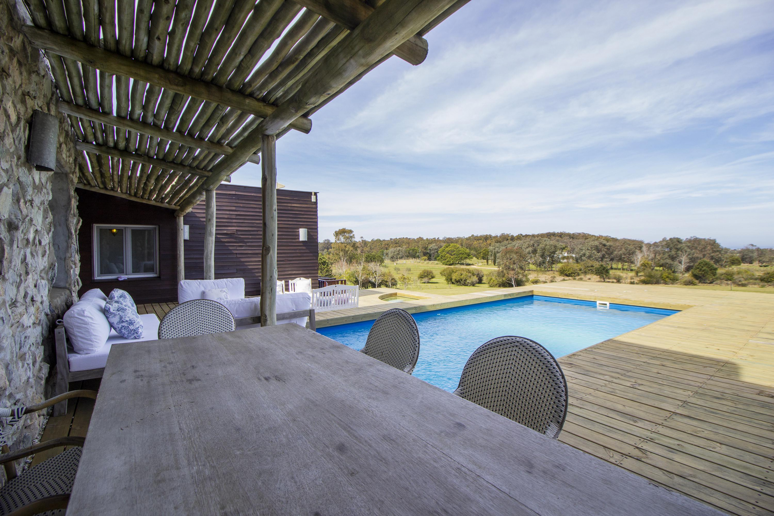 Piscina, jacuzzi y diferentes livings para disfrutar del lugar.