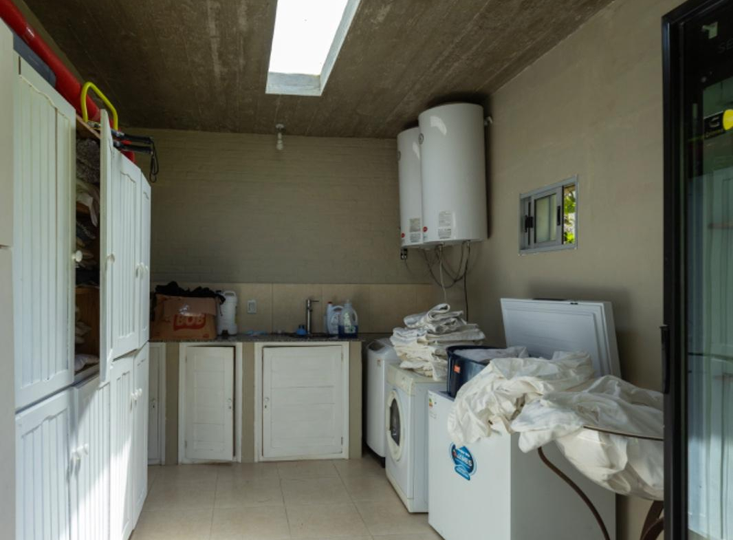 toilette , living comedor y cocina estilo americana. Una gran galería con piscina , parrilla y hermosas reposeras.