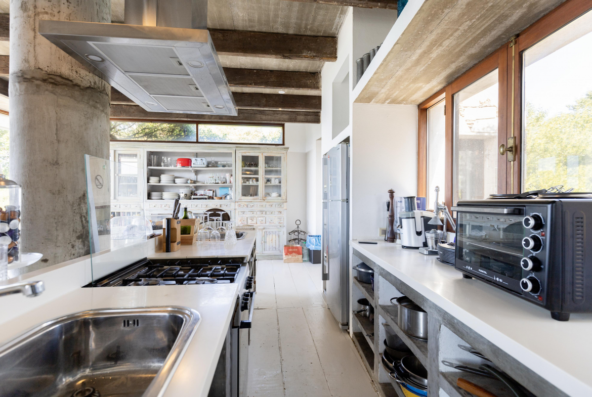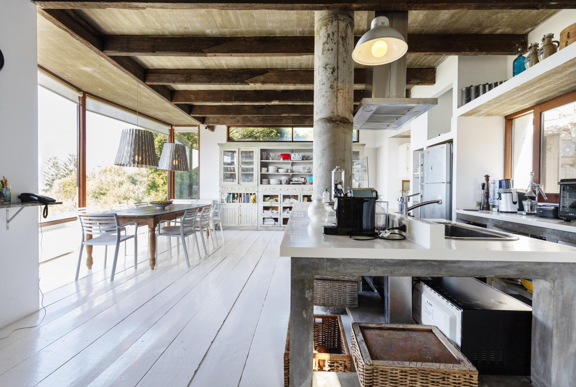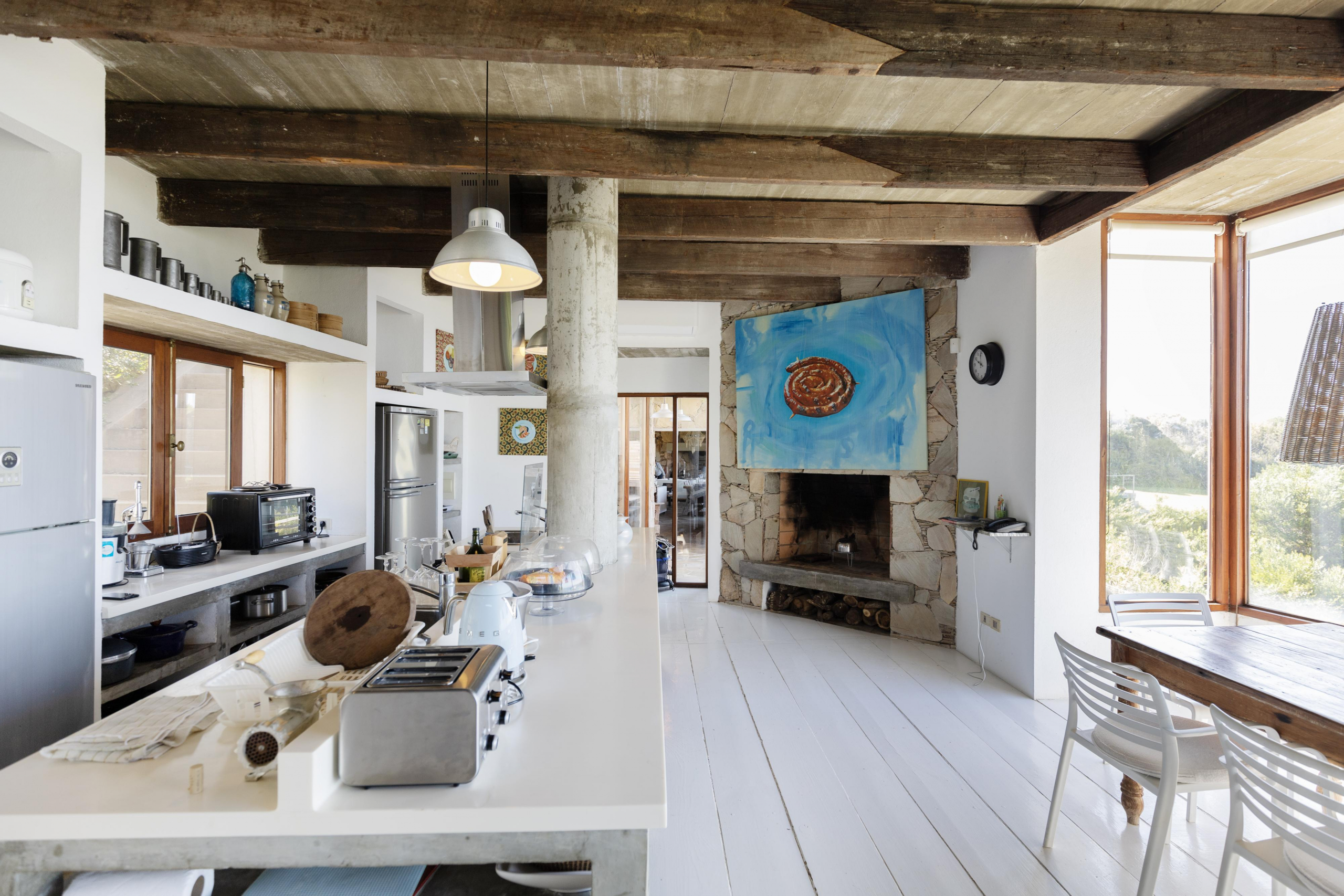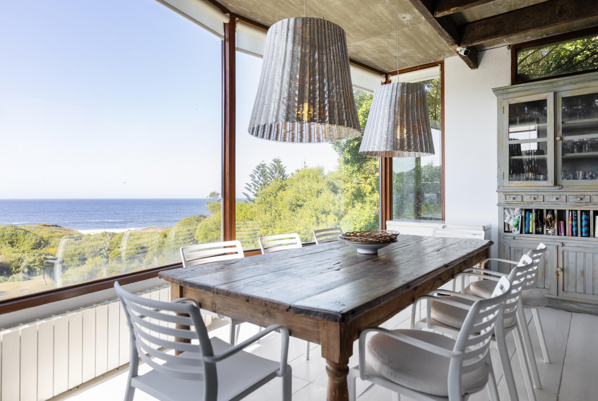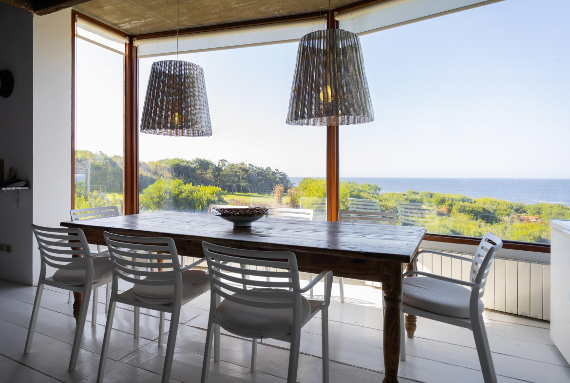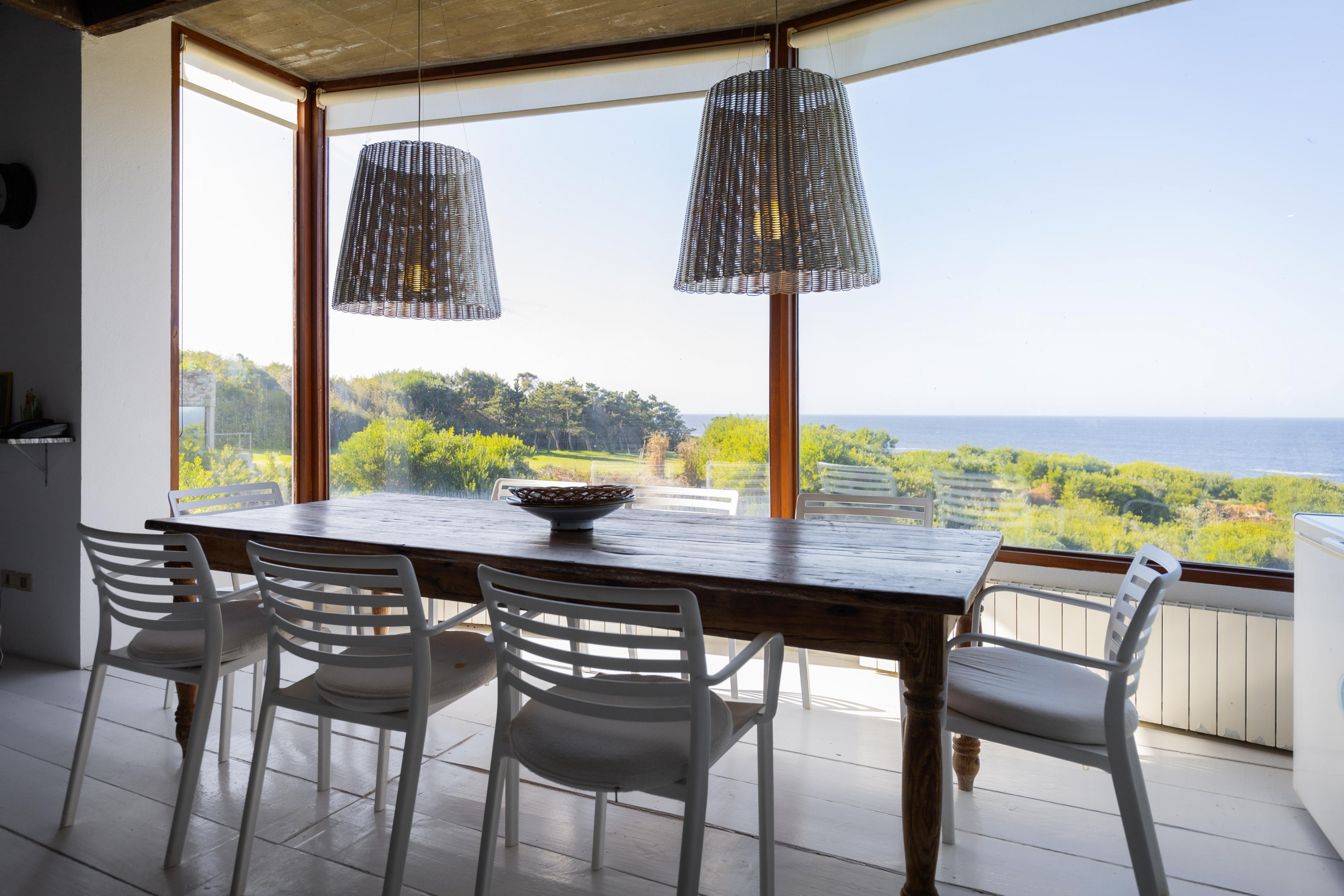 Su cocina definida también con comedor y estufa a leña perfecta de confort y practicidad sumado a la vista al mar amplísima.