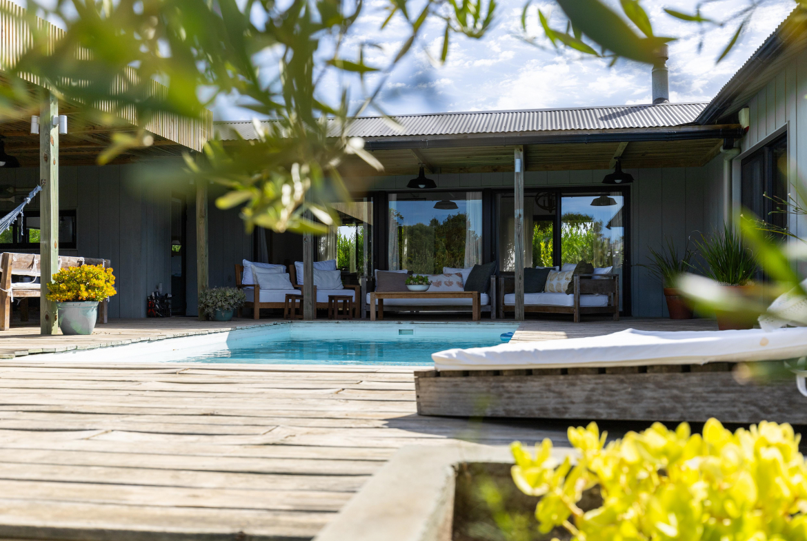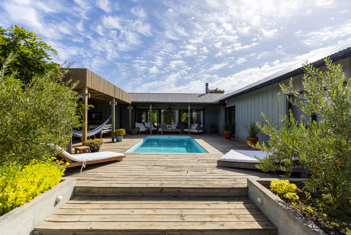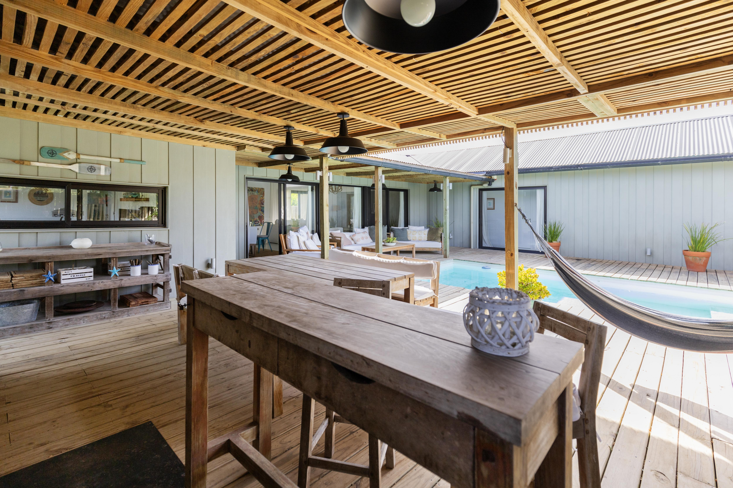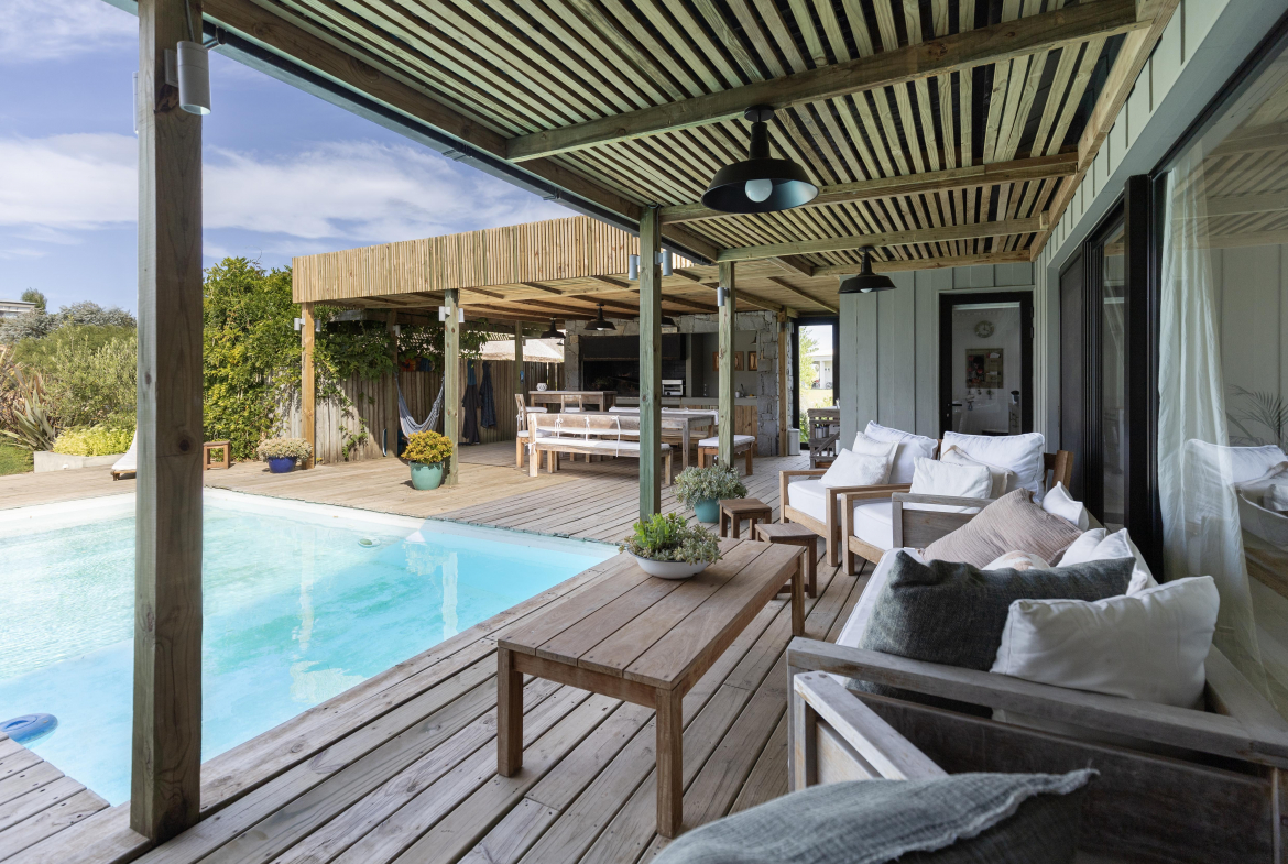 Sus amplios decks brindan amplios espacios sociales, mientras que la piscina invita a disfrutar del clima costero en privacidad y comodidad.