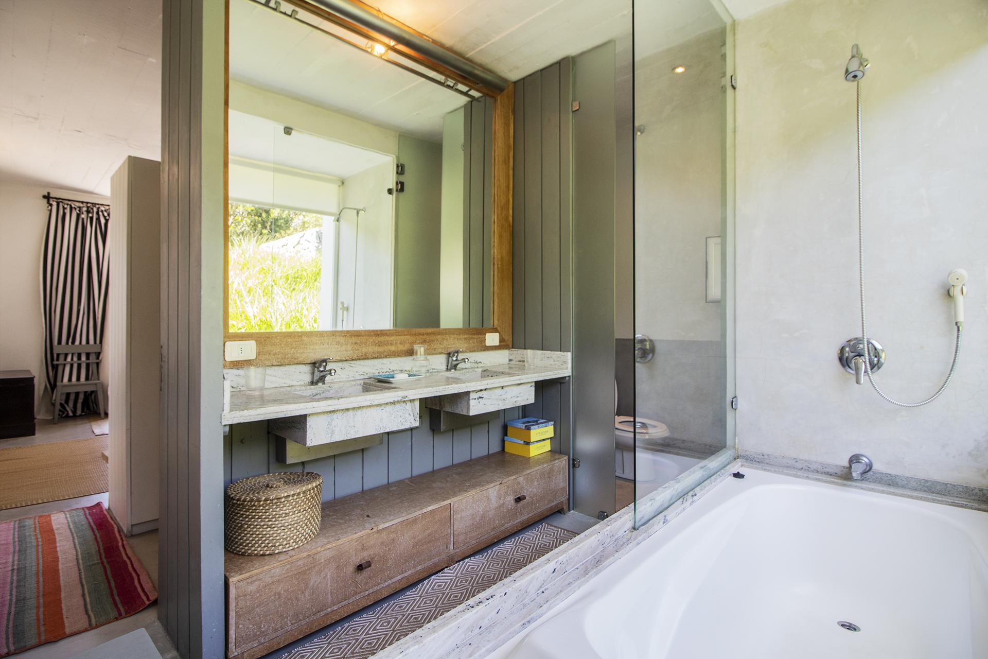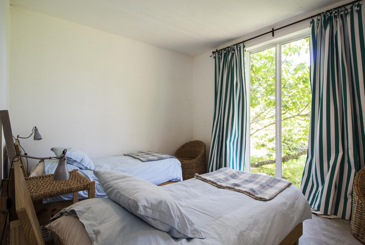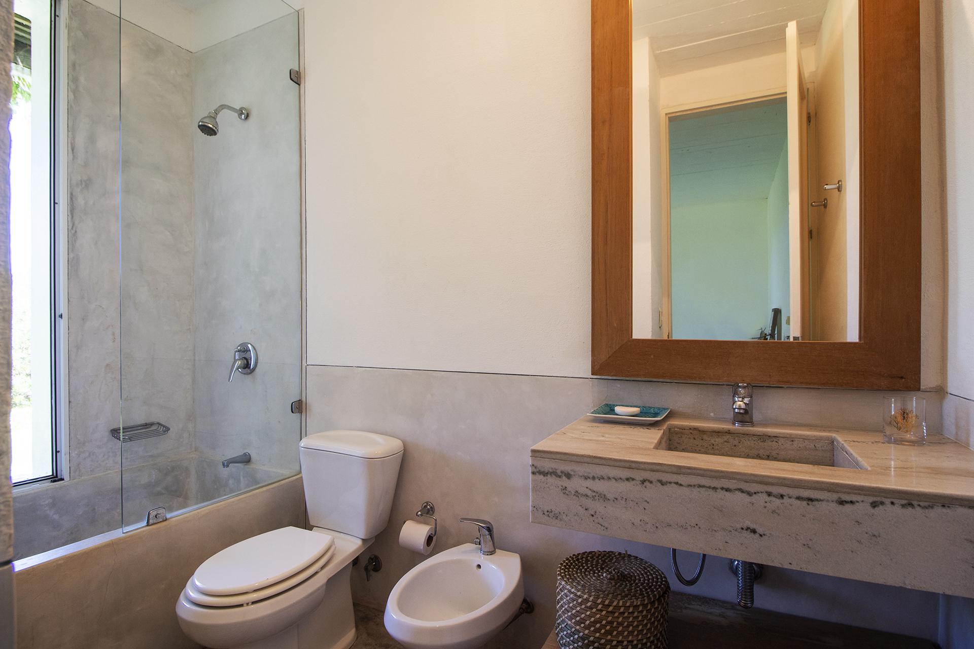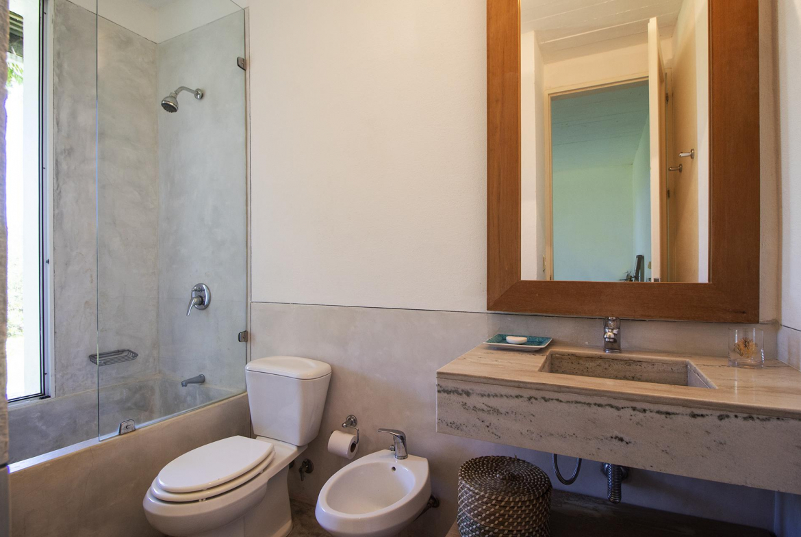 En planta baja, un dormitorio en suite con dos camas singles, otro en semi suite con tres camas y un playroom con dos sofa comodos. Alli se encuentra el unico punto de conexion a la tele, y salida al jardin trasero.