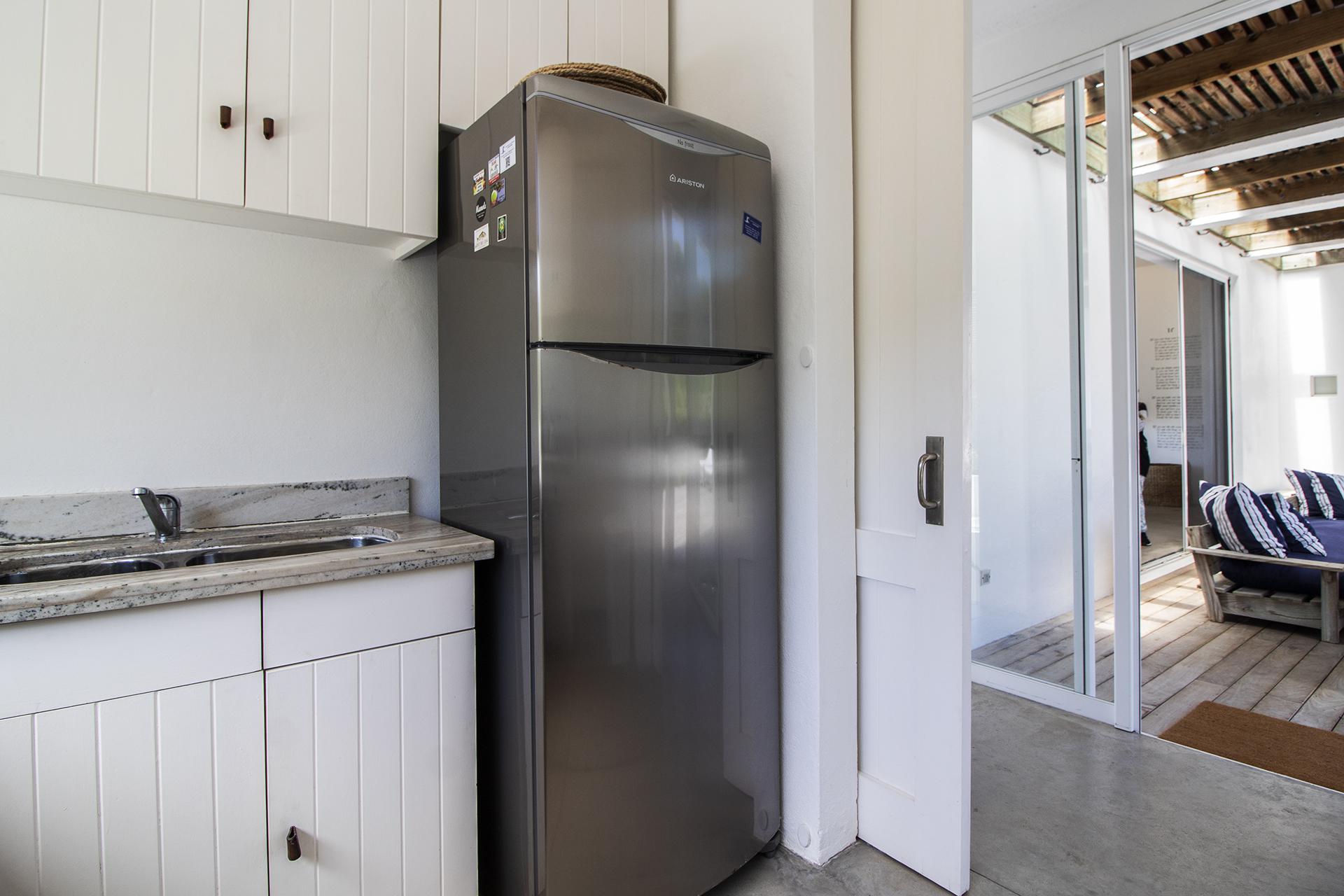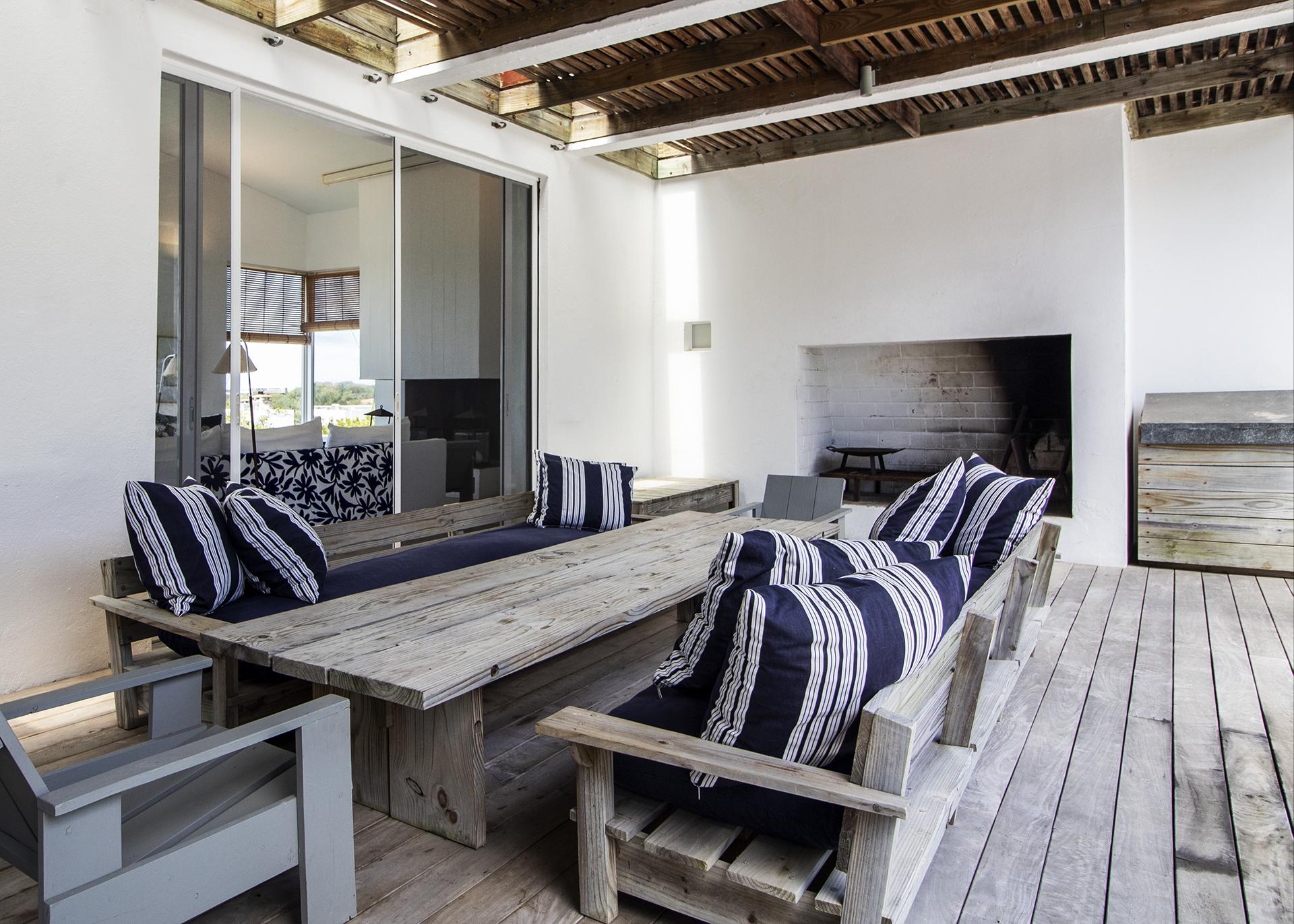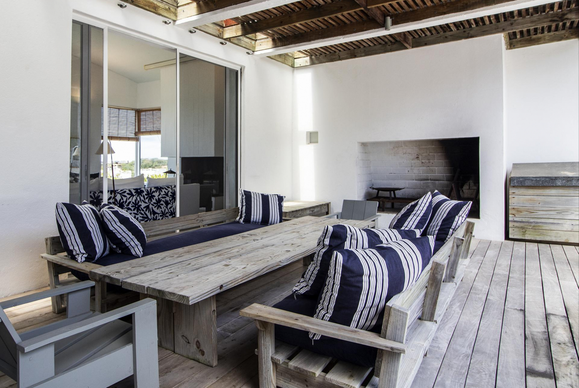 Desde el comedor, se sale hacia un pequeño balcon hacia la playa brava, donde se cuenta con un rinconcito con mesa y sillones para disfrutar del desayuno o una cena con el ruido del mar.