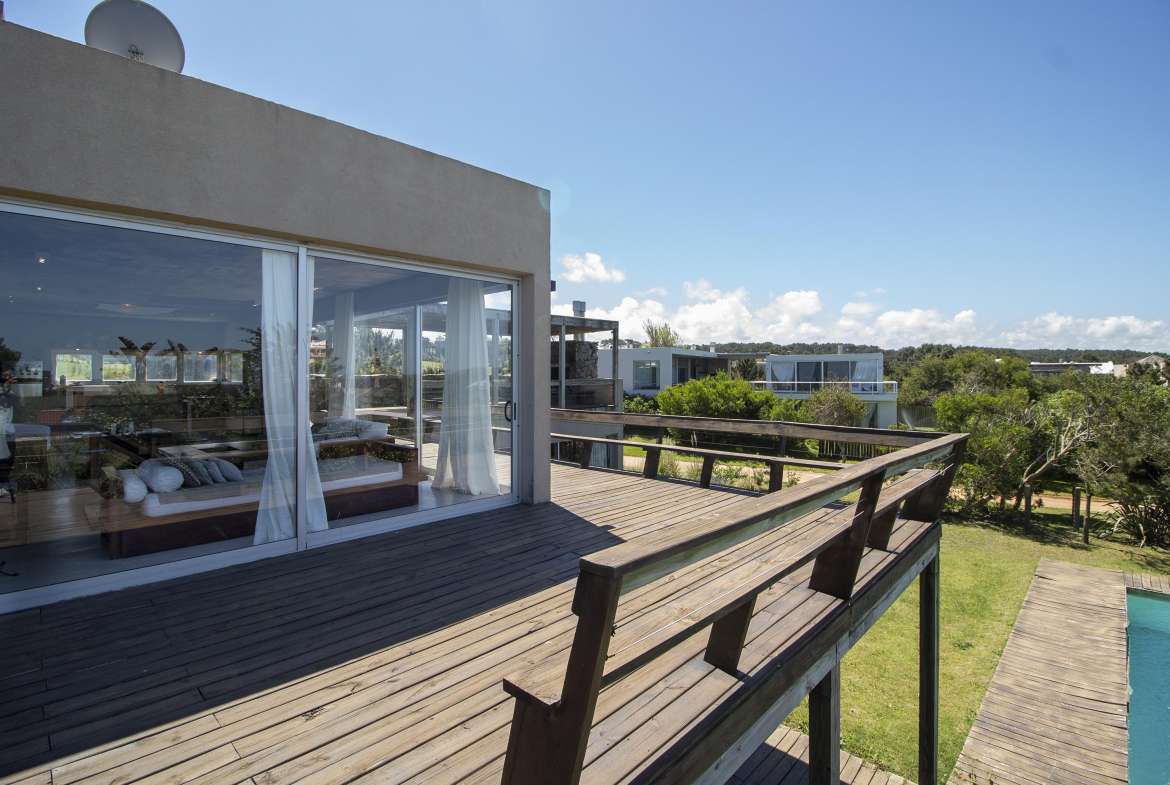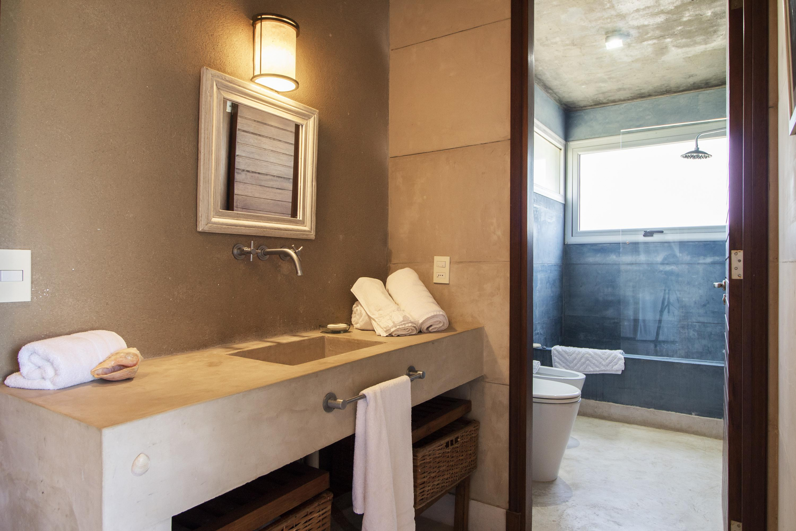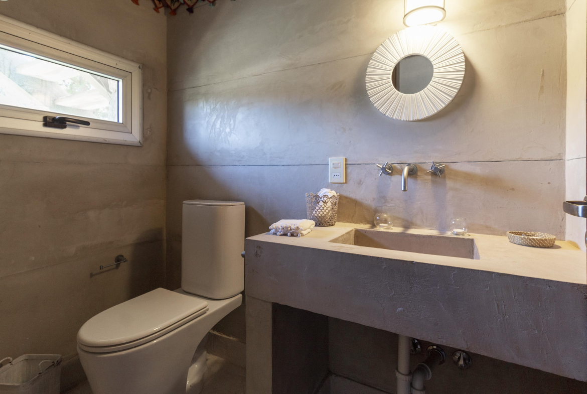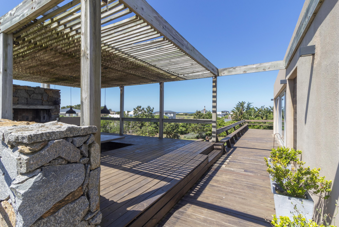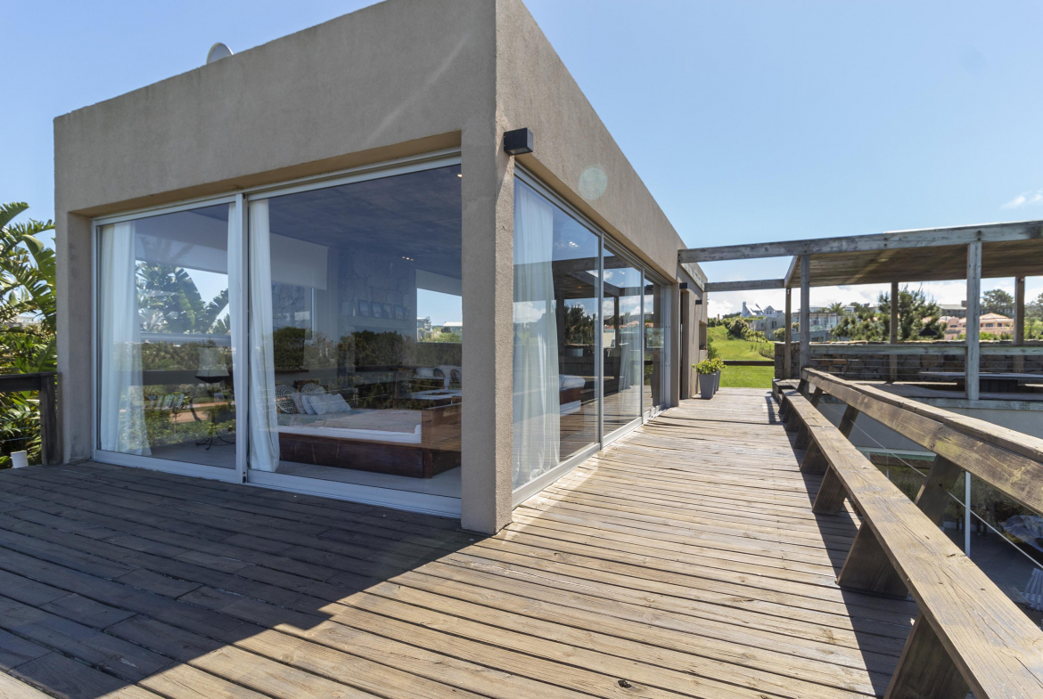 Desarrollada en dos plantas, y a poca distancia de los servicios comunes del Club House, se encuentra la casa. En planta baja, hall de recpcion, toillete, dormitorio principal, y dos dormitorios que comparten un baño. Sector de escritorio, dependencia de servicio con cama matrimonial, con salida independiente de la casa.