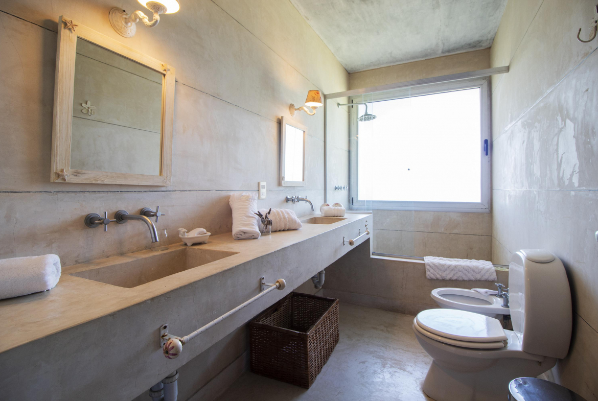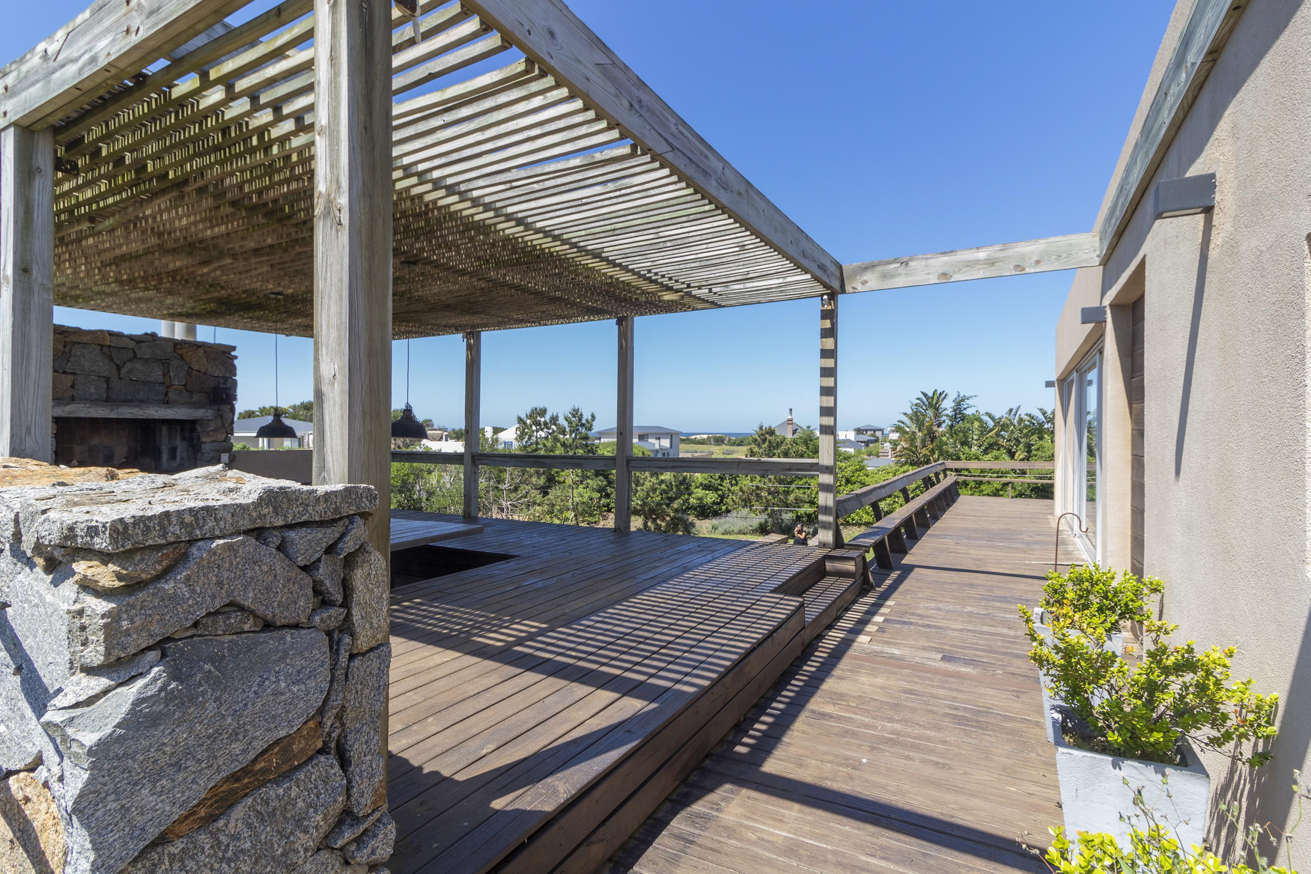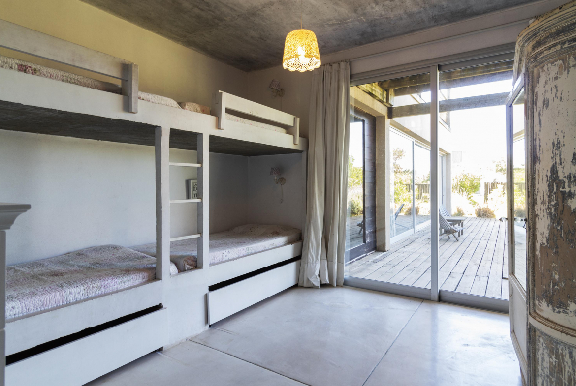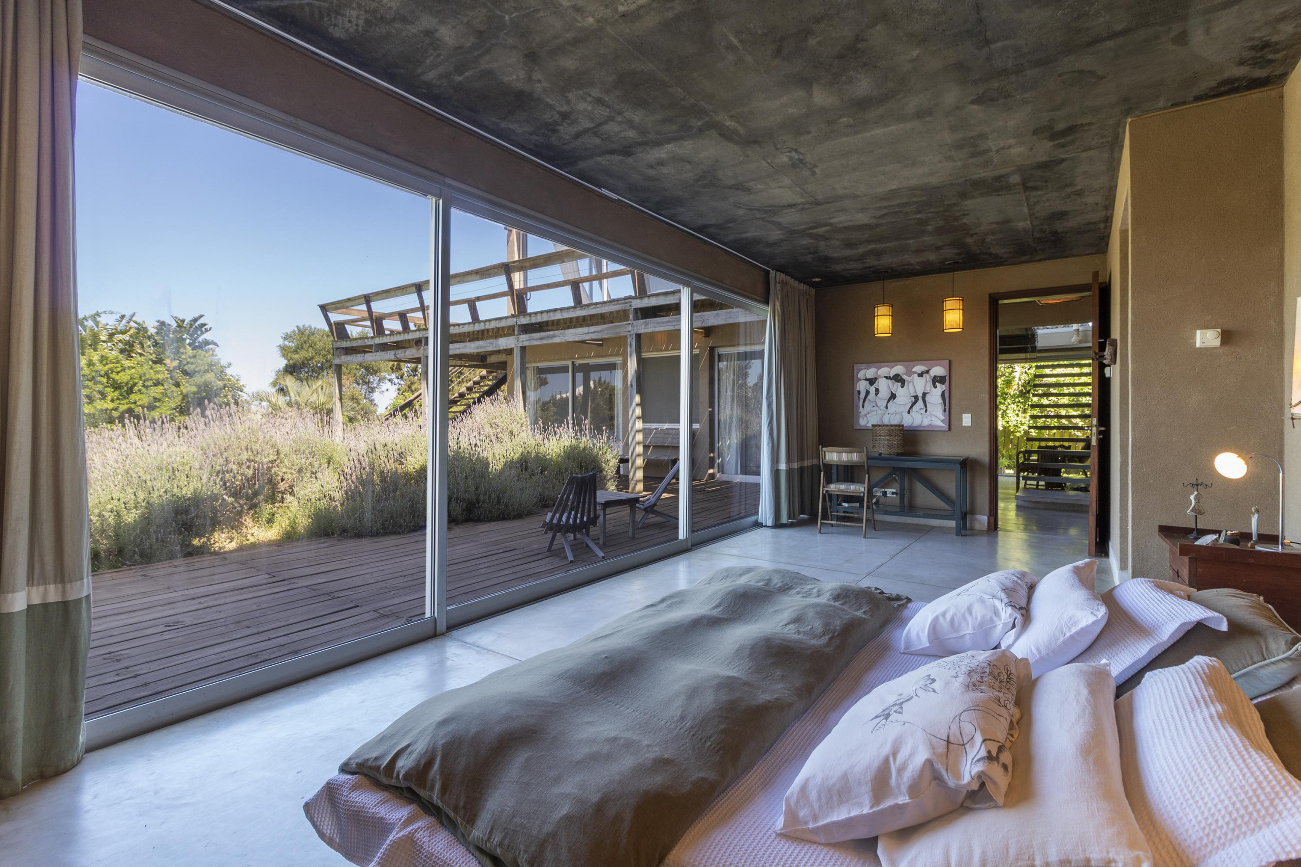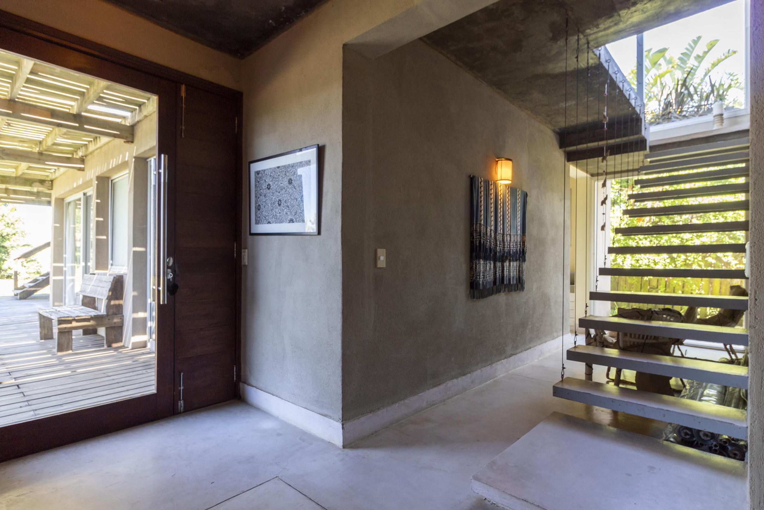 Desarrollada en dos plantas, y a poca distancia de los servicios comunes del Club House, se encuentra la casa. En planta baja, hall de recpcion, toillete, dormitorio principal, y dos dormitorios que comparten un baño. Sector de escritorio, dependencia de servicio con cama matrimonial, con salida independiente de la casa.