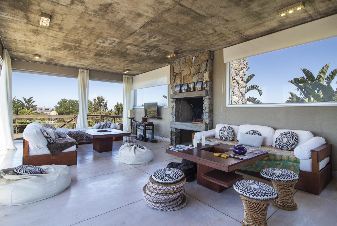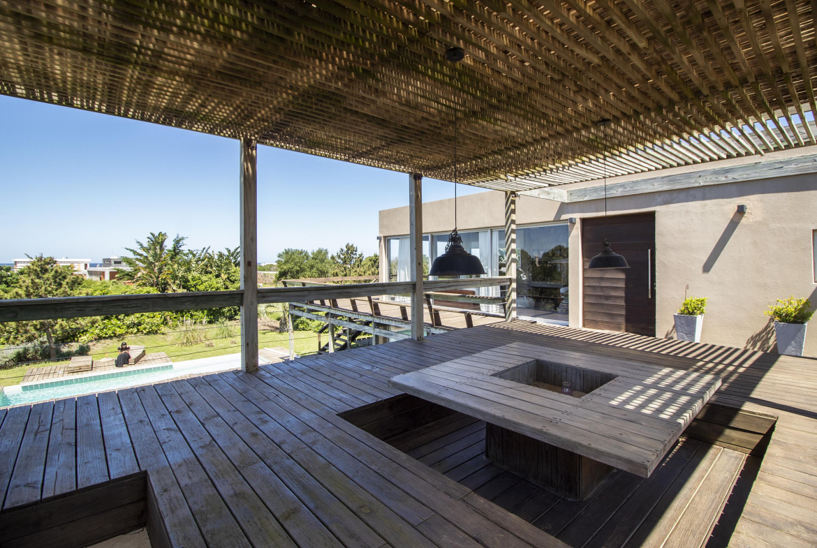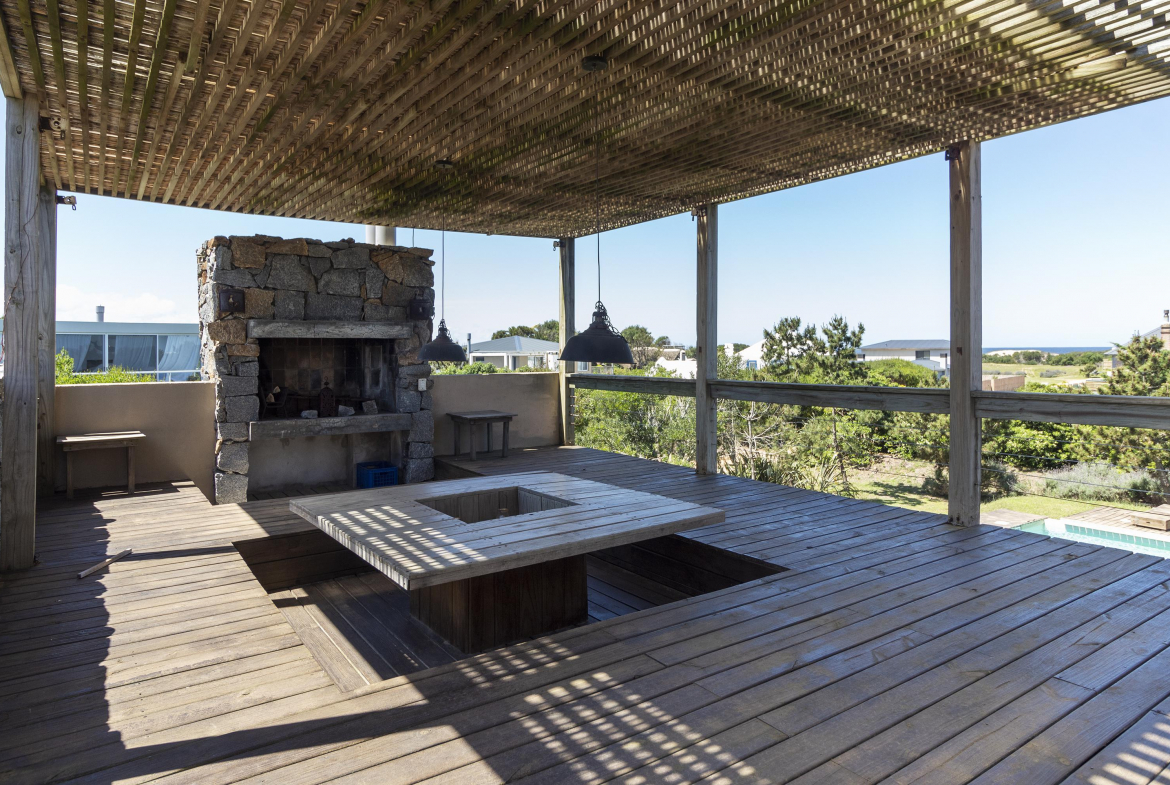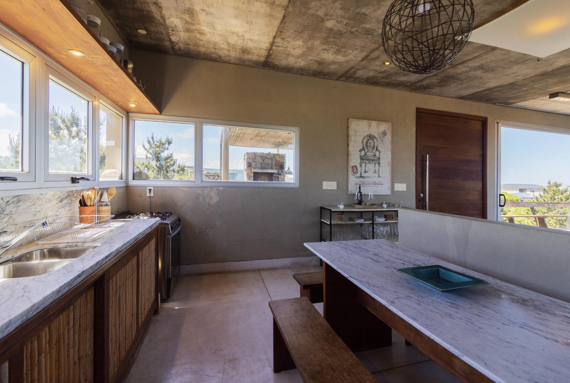 En planta alta, living comedor y cocina integrado. Comodo sector de comedor junto a la parrilla, con toldos transparentes para disfrutar el lugar y las vistas sin importar el clima. Doble circulacion de escaleras para conectar la parrilla con el jardin, las cocheras y la piscina.