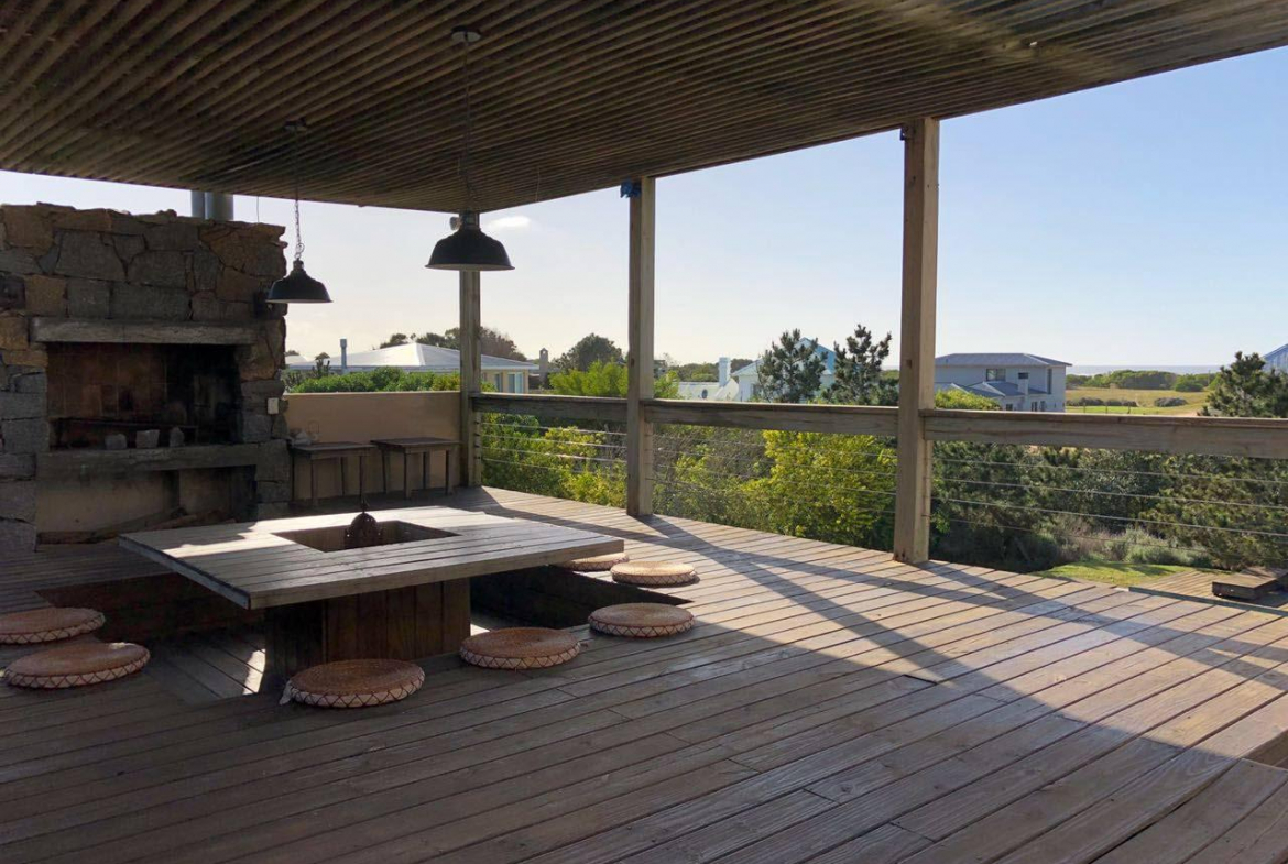 Upstairs, living dining room and integrated kitchen. Comfortable dining area next to the grill, with transparent awnings to enjoy the place and the views regardless of the weather. Double circulation of stairs to connect the grill with the garden, the garages and the swimming pool.