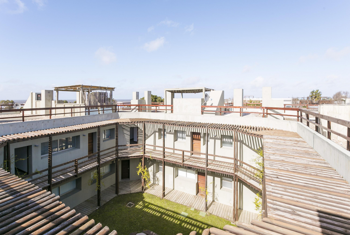 Comoda unidad de casi 40m² en Edificio Manero. Un dormitorio en privacia, baño completo. Living comedor y cocina integrado. En la azotea, parrillero propio.