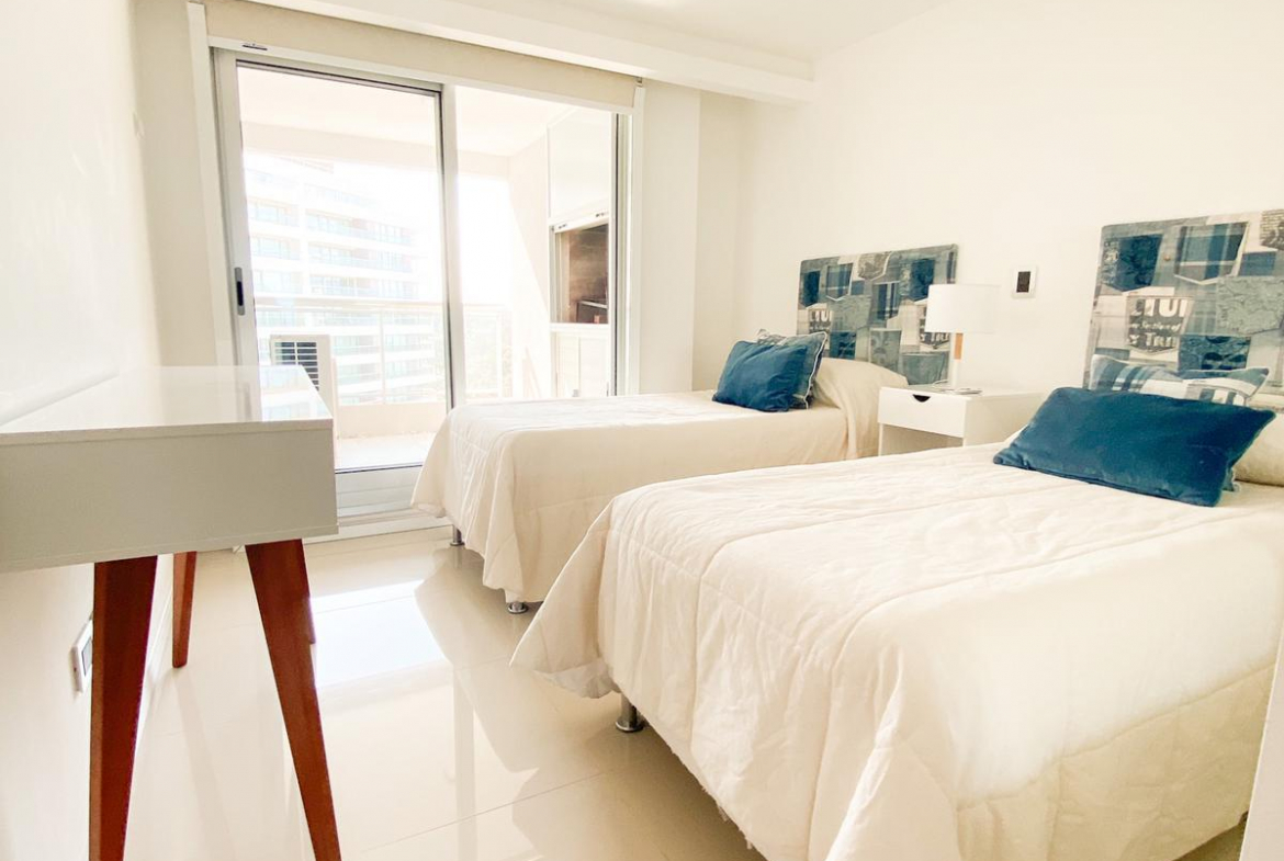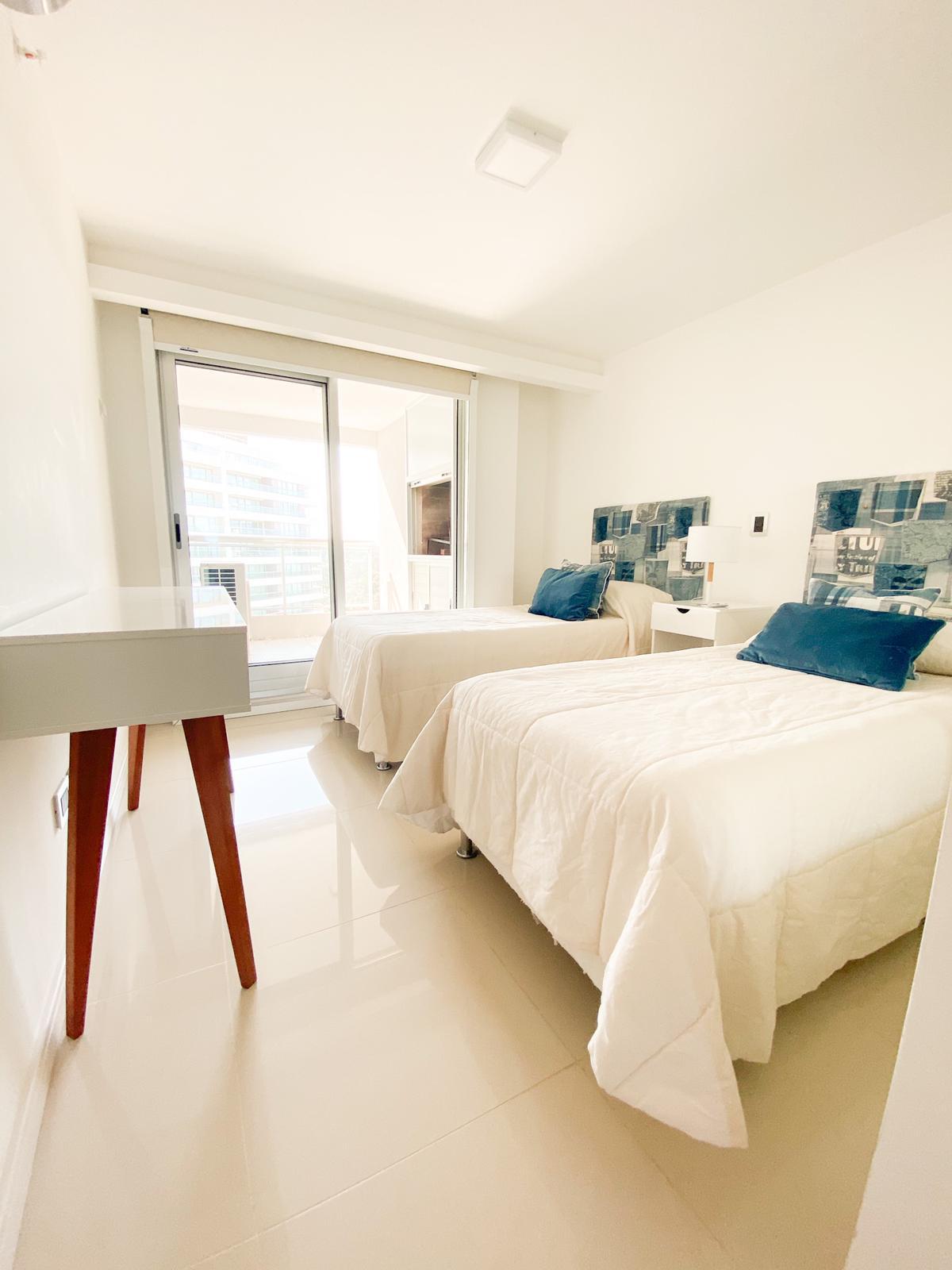Excelente departamento con vista plena al mar, dos amplios dormitorios en suite, la principal con vestidor. Gran cocina con comedor diario y toilette de recepción. Dormitorio principal en suite con baño completo y vestidor con balcón terraza con vista al mar . Segundo dormitorio en suite con baño completo con salida a balcón terraza con vista al bosque. Amplio living comedor e increíbles balcones con parrilleros privados.
