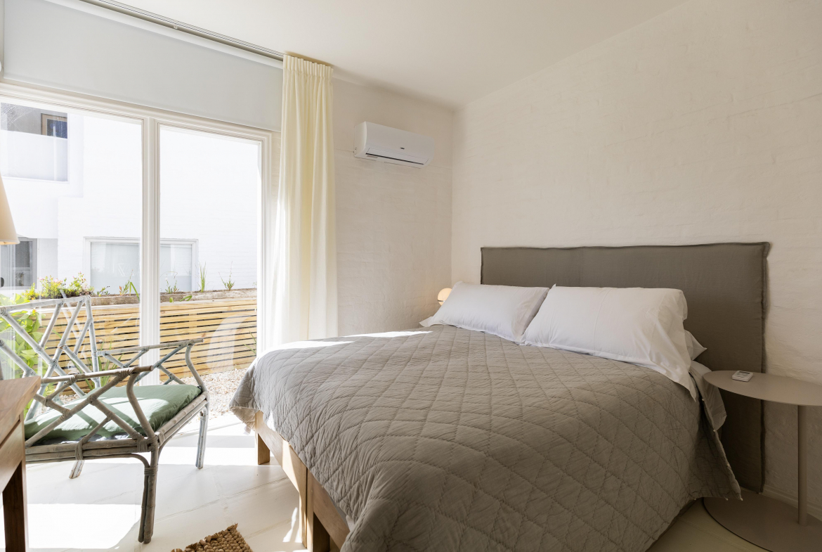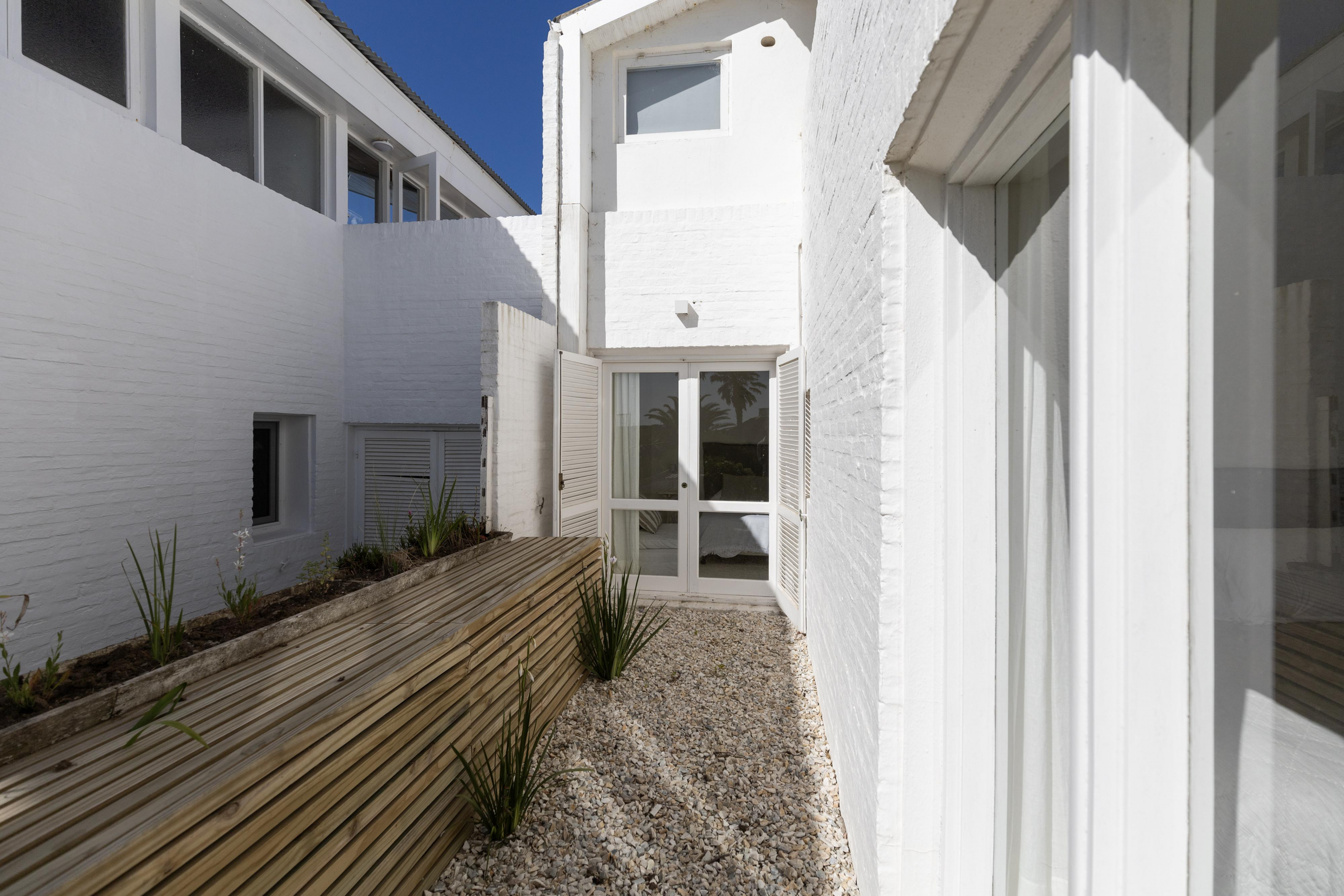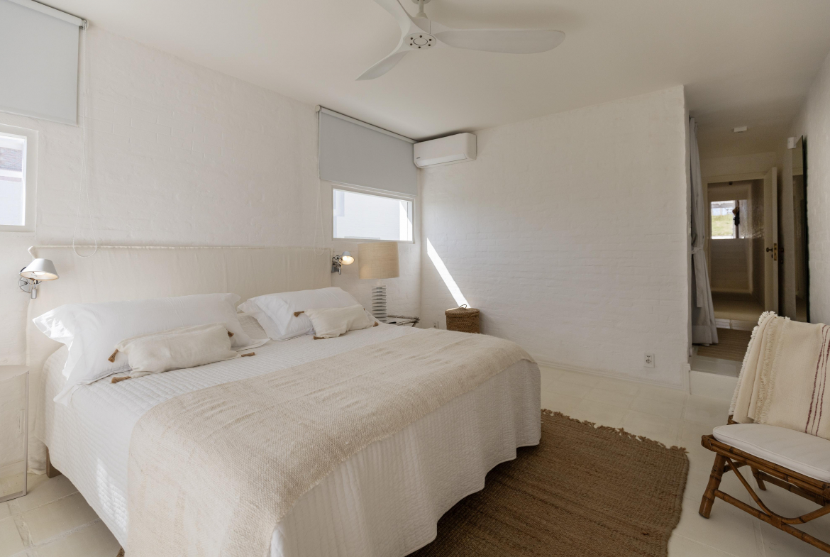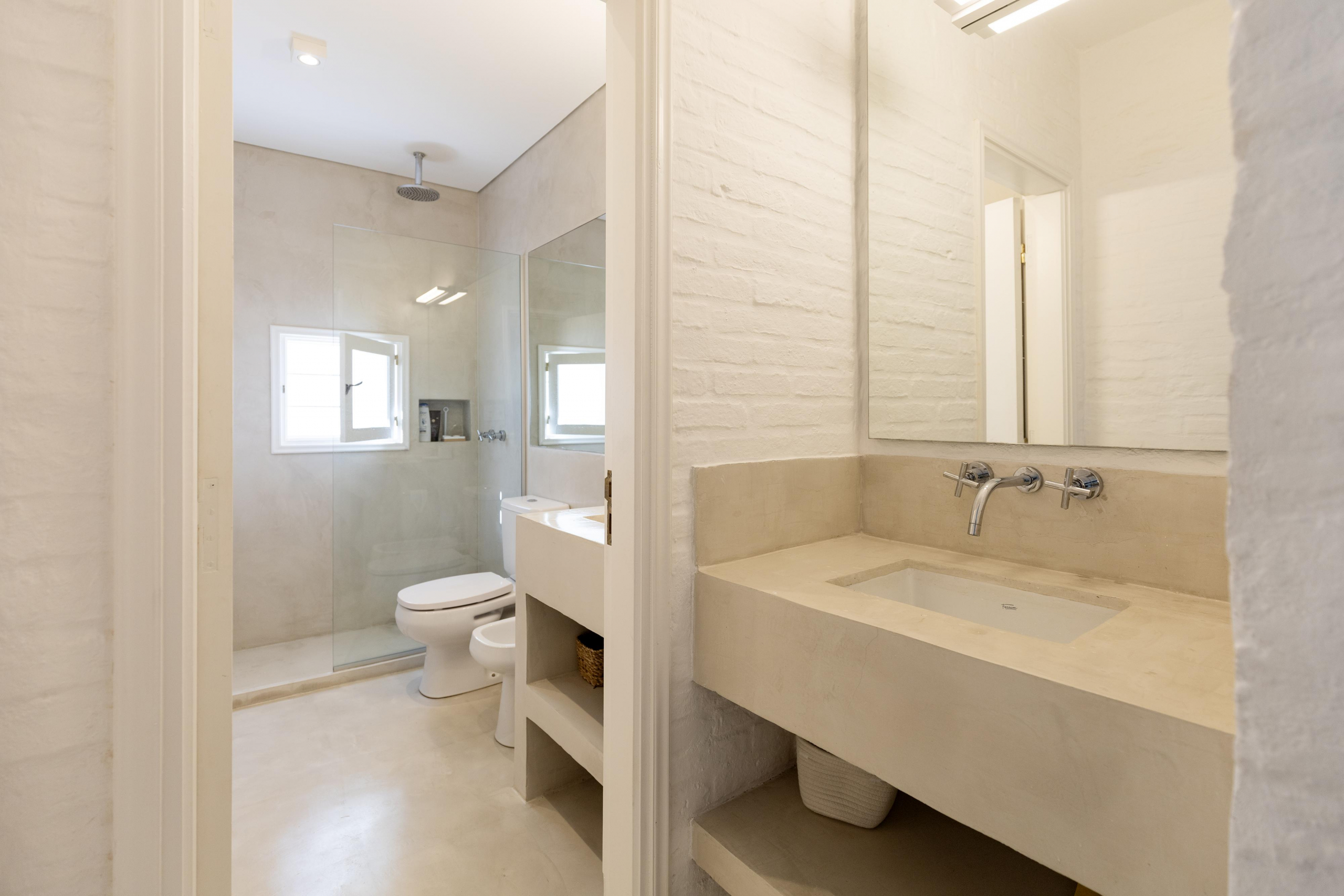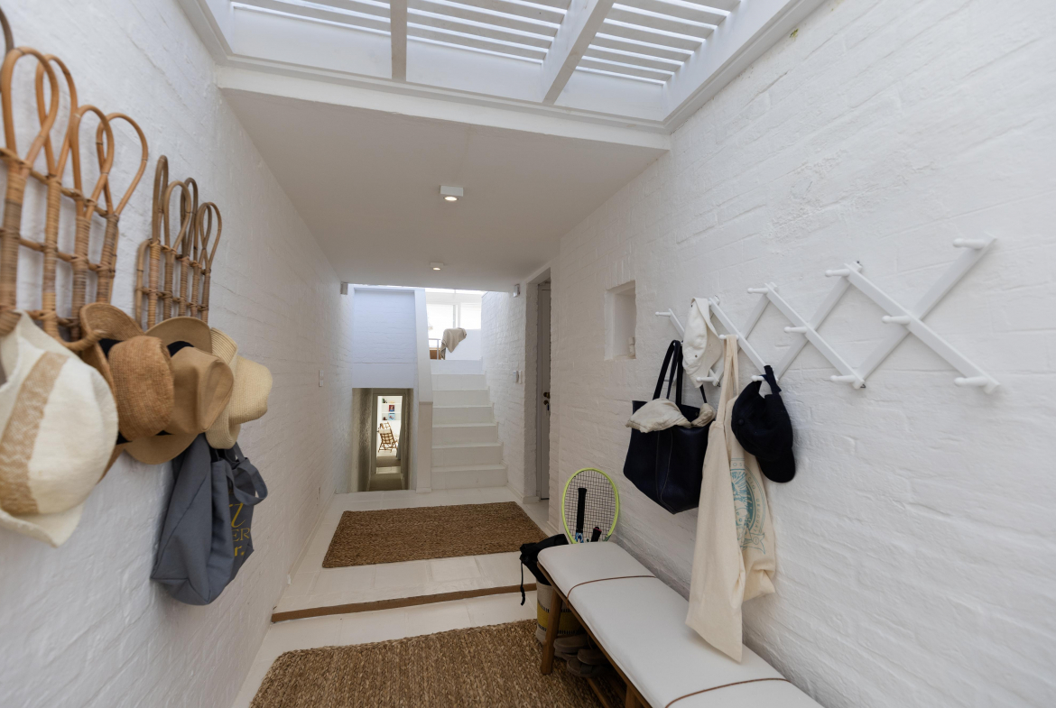 Desde el hall de ingreso desde la zona posterior, se baja un tramo de escalera segura, y alli, hay dos dormitorios en semi suite (ambas con salida al jardin que da al frente), y al final de pasillo, hacia el oeste, amplio vestidor y master suite; tambien con salida al jardin al frente de la propiedad.