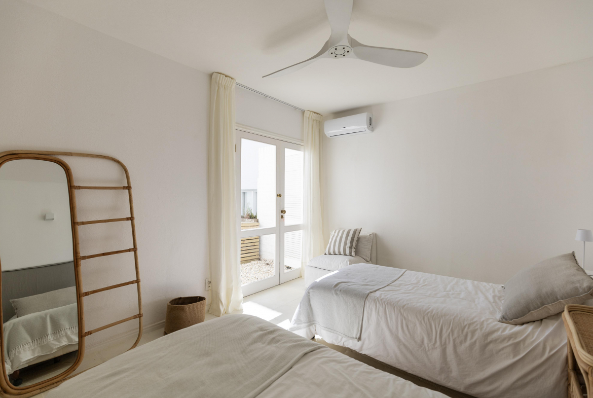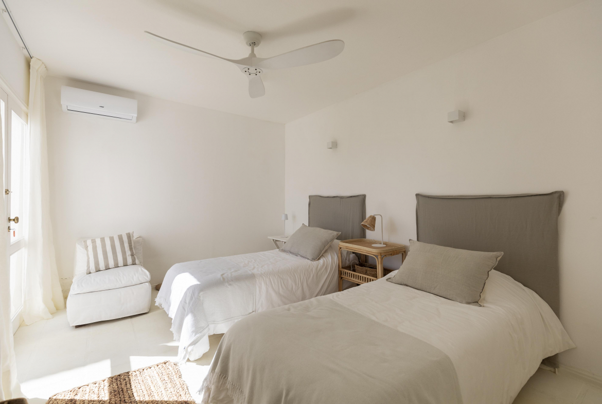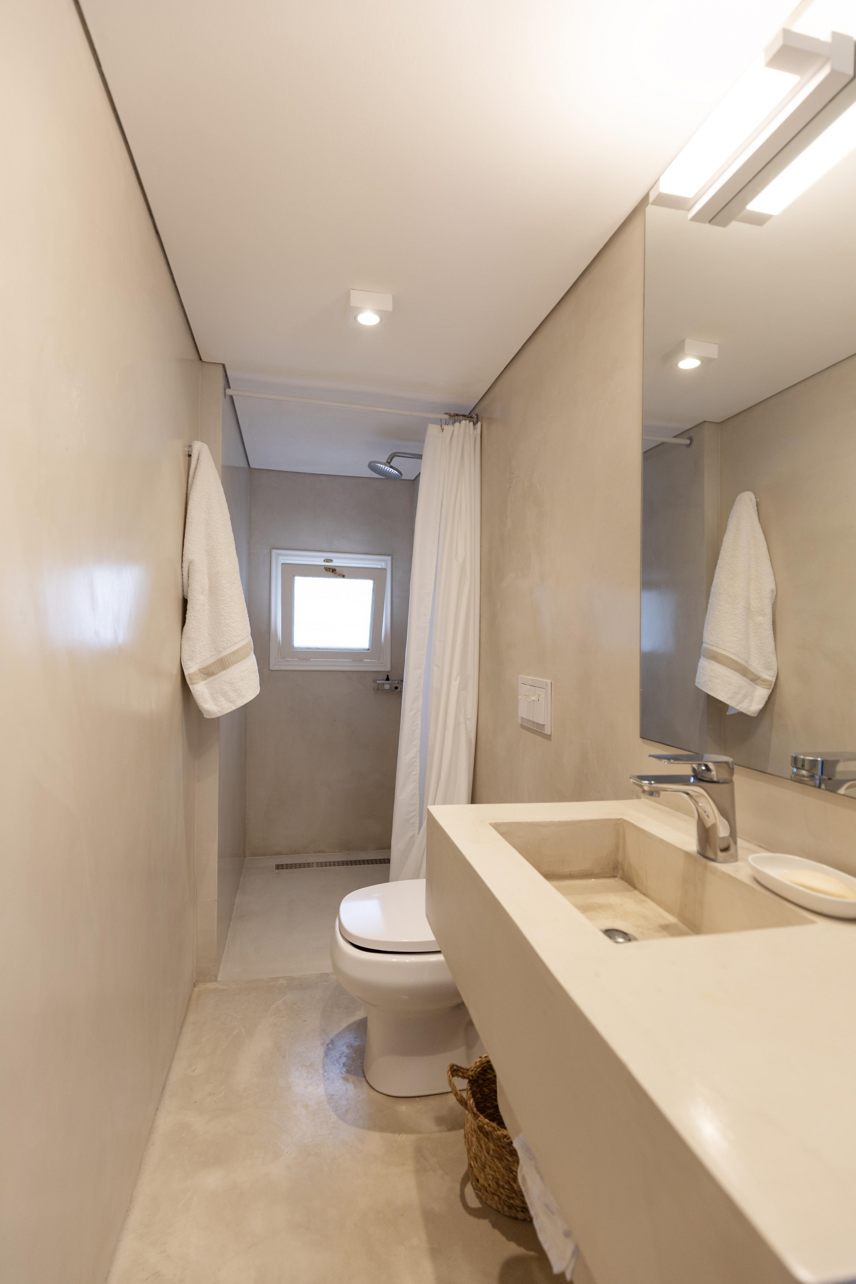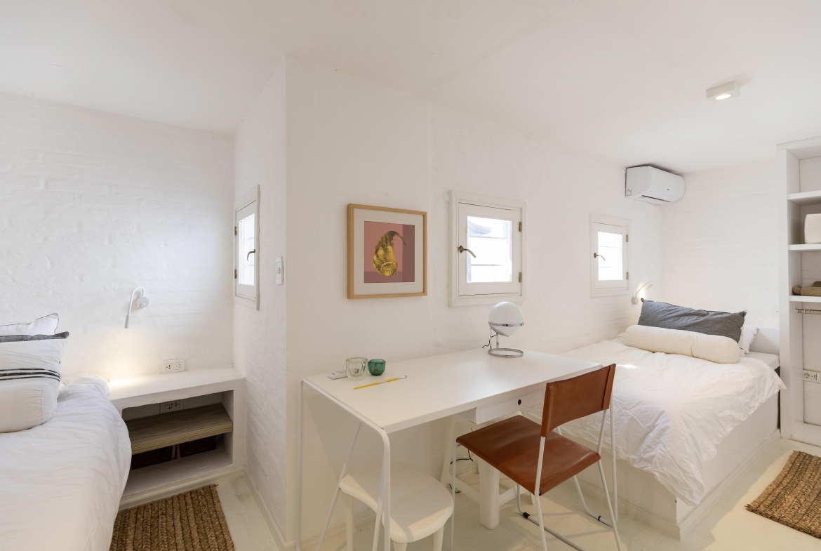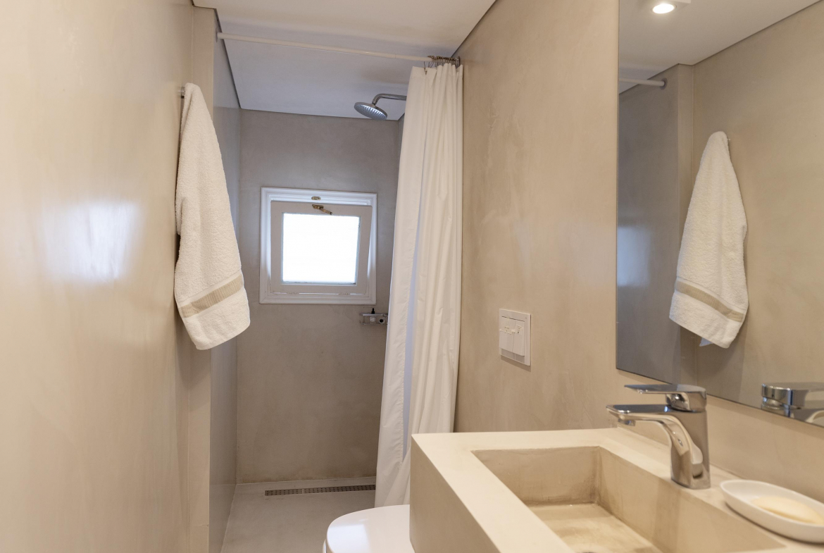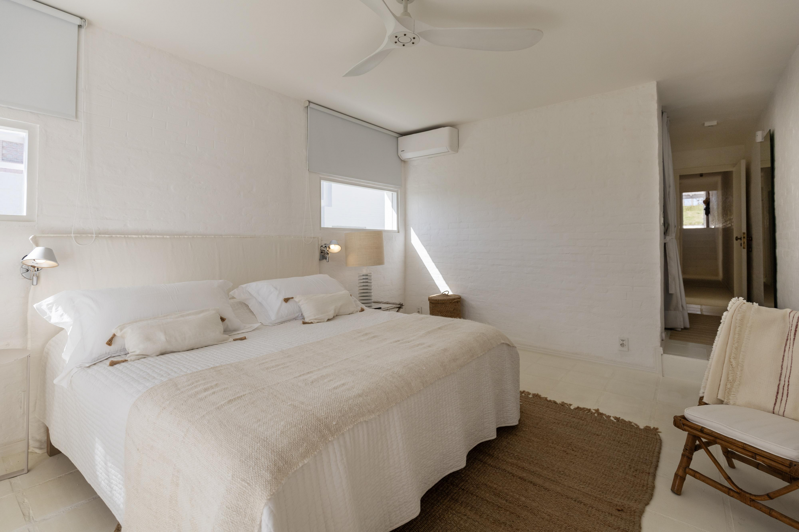 Desde el hall de ingreso desde la zona posterior, se baja un tramo de escalera segura, y alli, hay dos dormitorios en semi suite (ambas con salida al jardin que da al frente), y al final de pasillo, hacia el oeste, amplio vestidor y master suite; tambien con salida al jardin al frente de la propiedad.