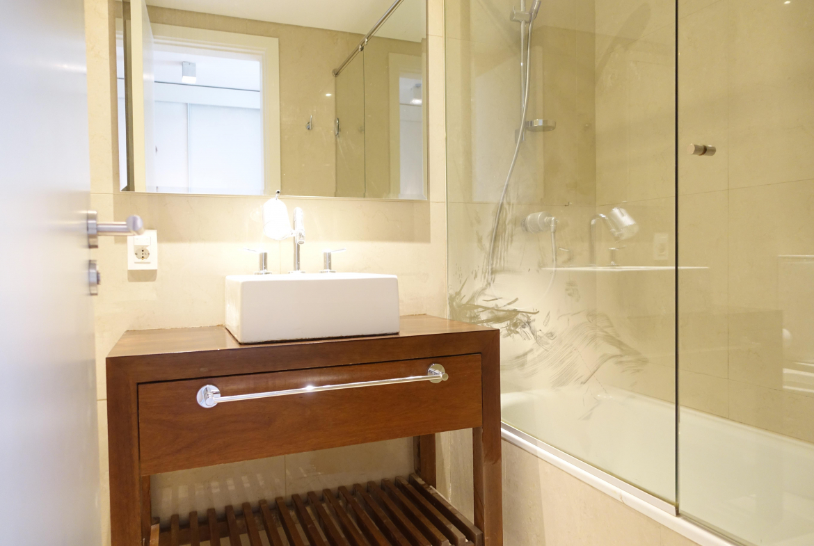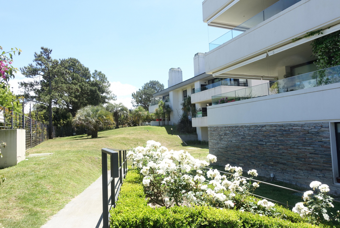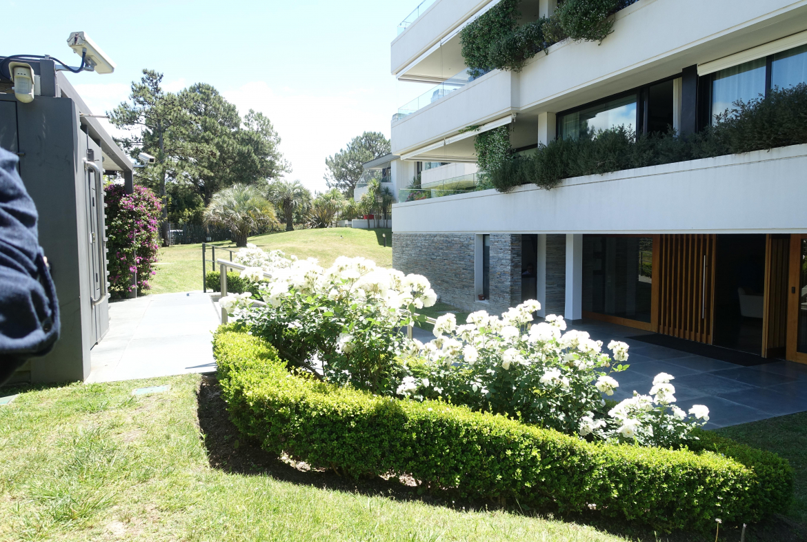 Apartamento en Vila Carrasco, sobre la calle French, desarrollado en living comedor con estufa de leña salida a terraza con parrillero, pisos de lapacho, buenas terminaciones, dos dormitorios en suite, cocina definida con muy buenos placares aéreos y bajo mesada, terraza lavadero y dependencia de servicio. Dos garages individuales, seguridad 24h, box